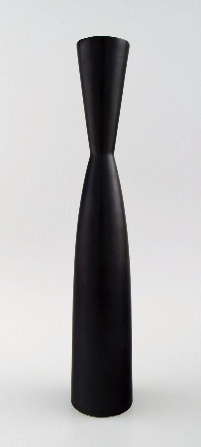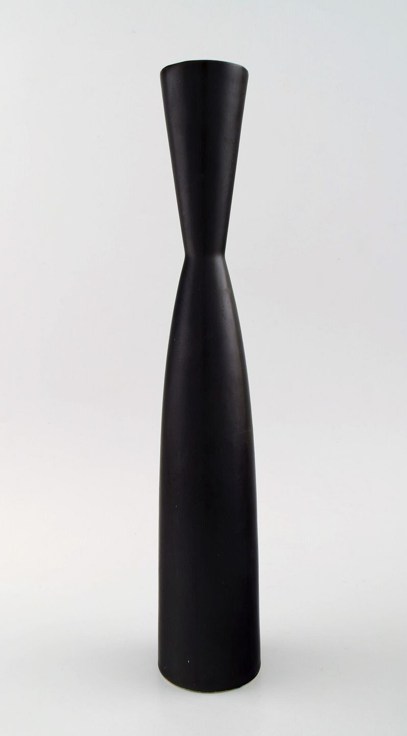 Carl-Harry Staalhane for Rorstrand, large art pottery vase. Black glaze. Measures 30 x 7 cm. In perfect condition.