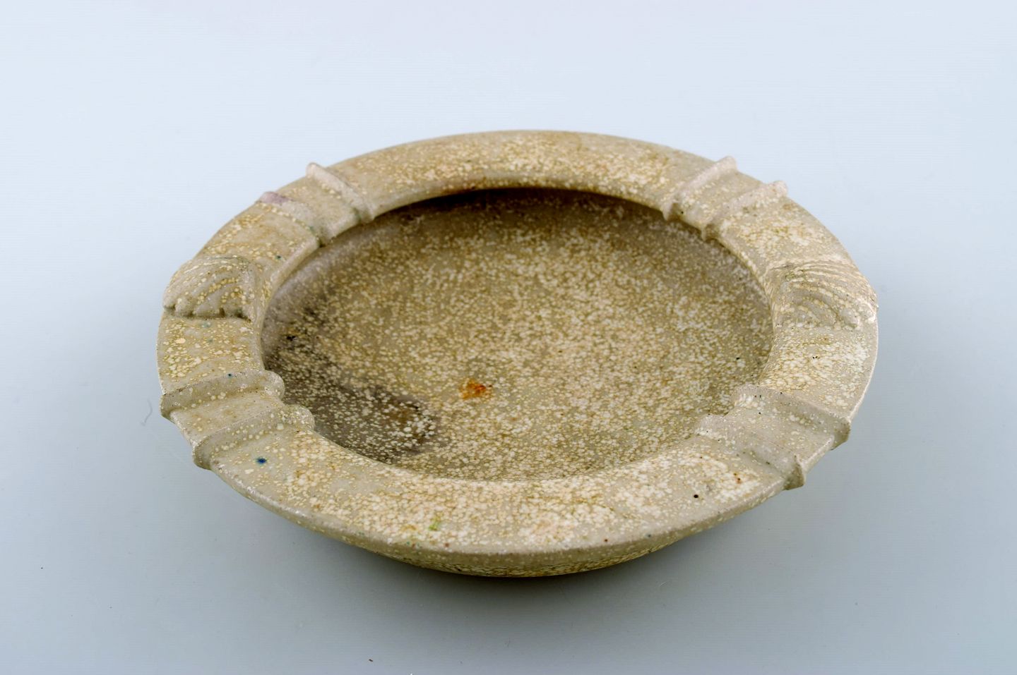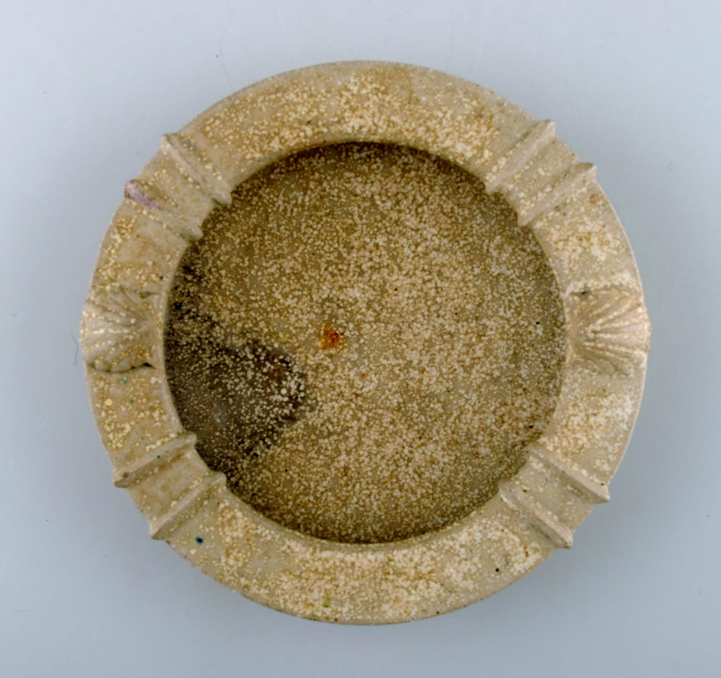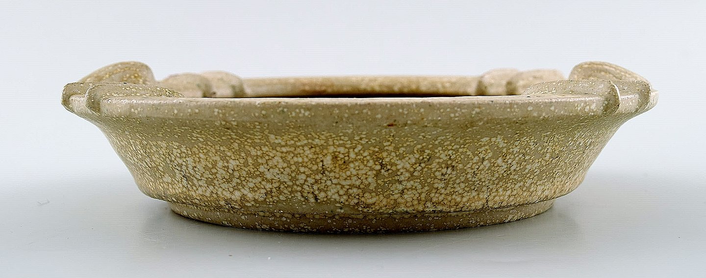 Arne Bang keramikskål. Stemplet AB. Glasur i grå og sandfarvede nuancer. I perfekt stand. Måler: 17,5 x 3.5 cm.