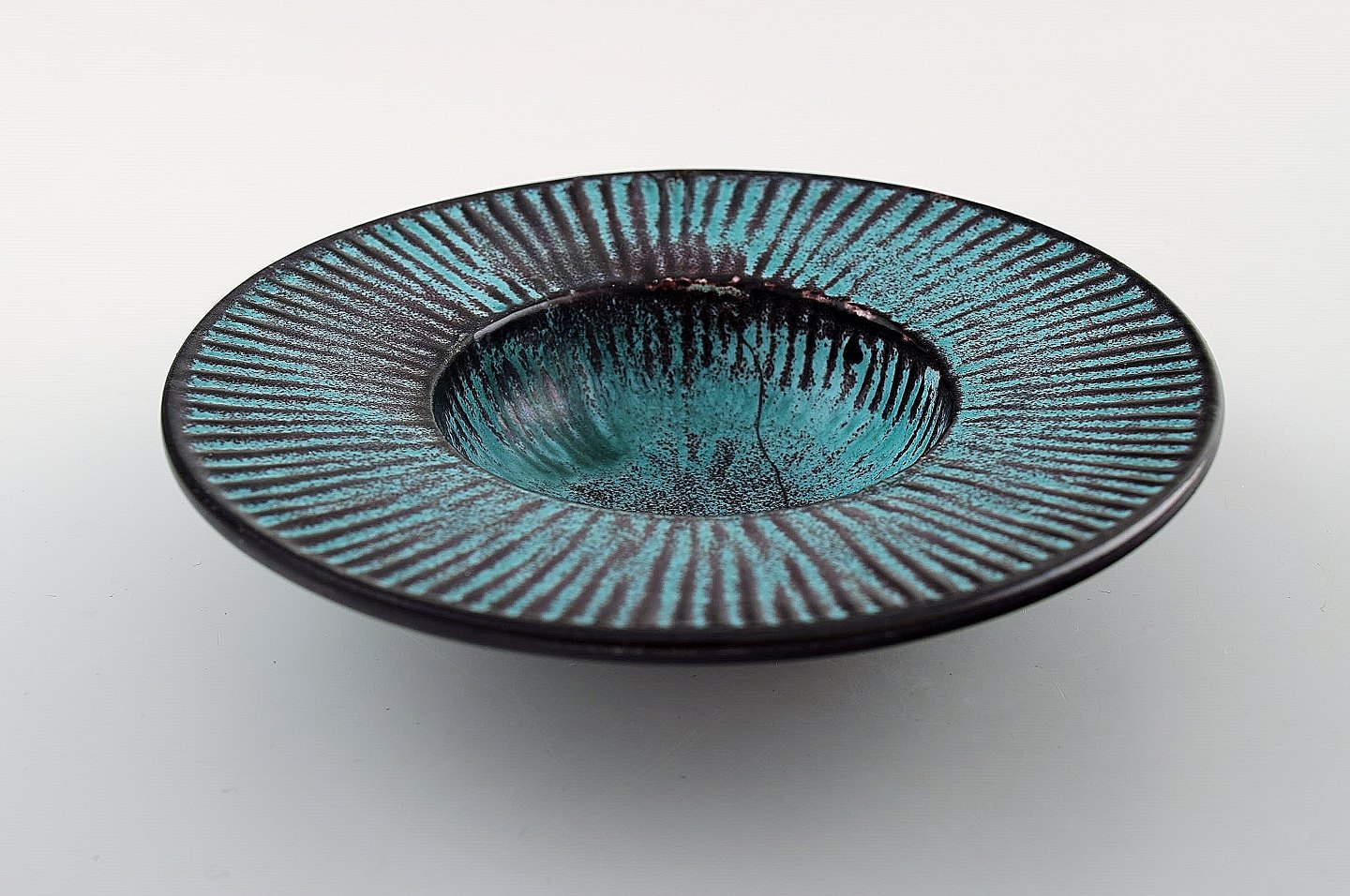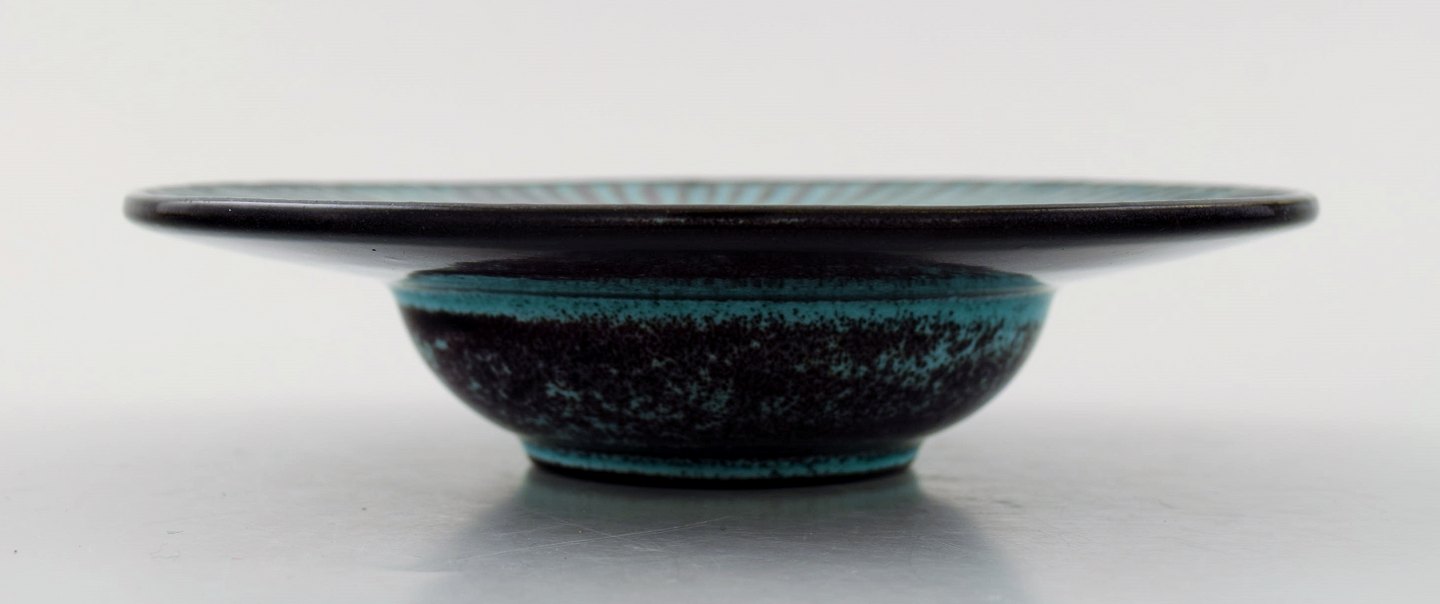 Kähler, Denmark, glazed bowl, 1930 s. Designed by Svend Hammershoi. Glaze in black and green. Measures 15.5 x 4 cm. Marked. In perfect condition.