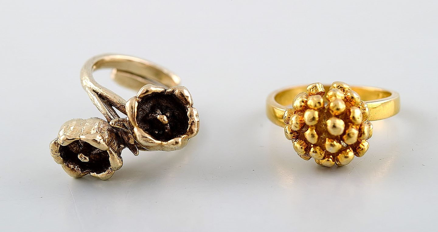 Flora Danica Jewellery. 2 ringe af sterlingsølv, forgyldt. Stemplet. I perfekt stand. Måler : 17 mm.