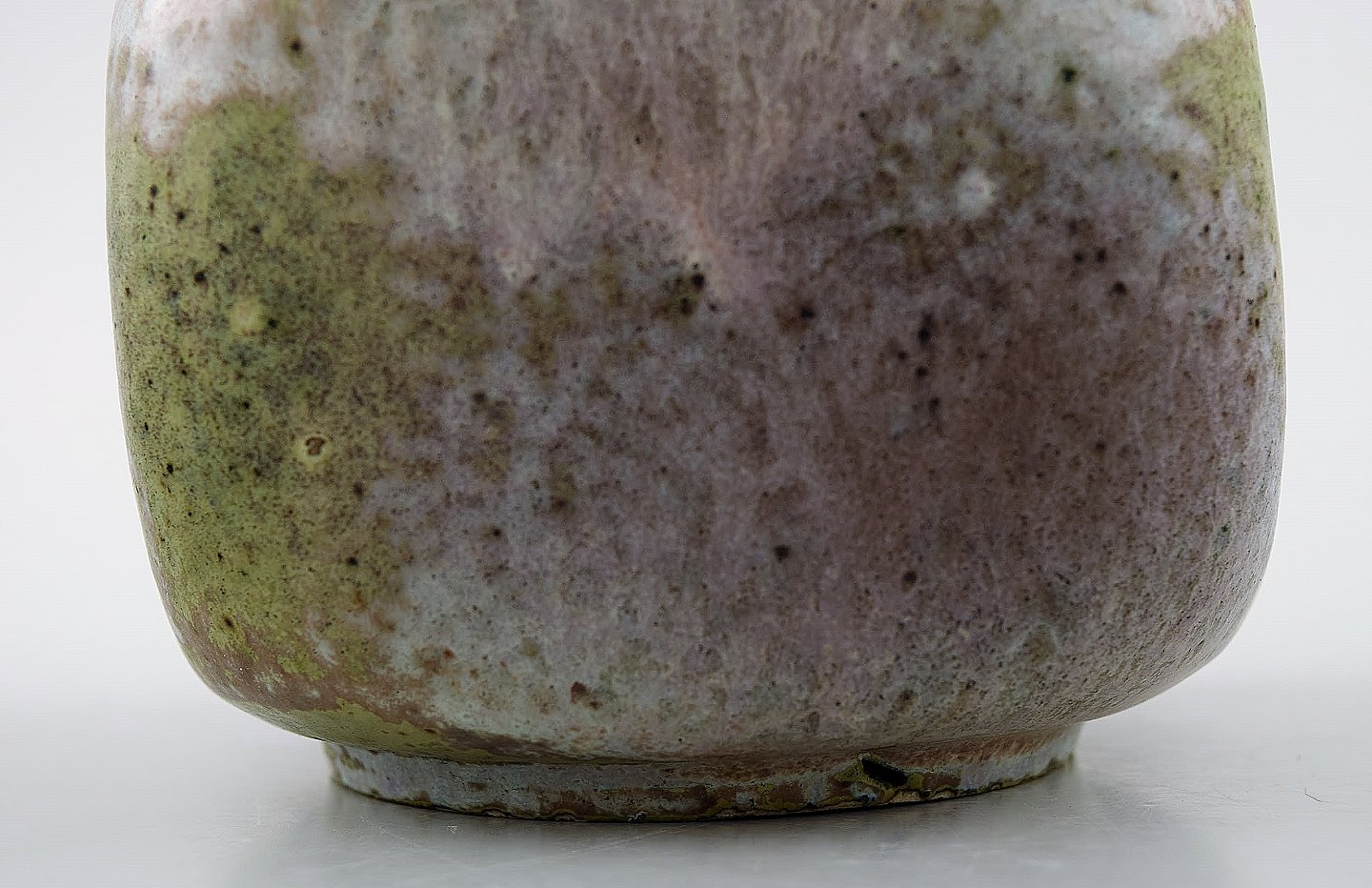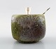Unique jam jar of blue-green glazed stoneware, decorated with lid