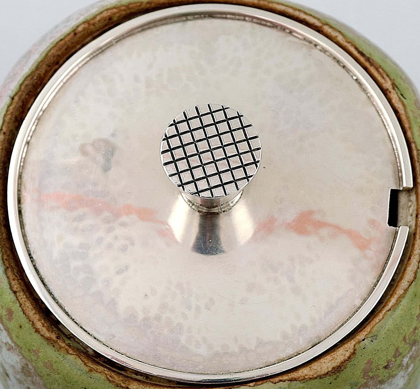 Jam jar signed "BW" and dated 1939 and lid done 1940.