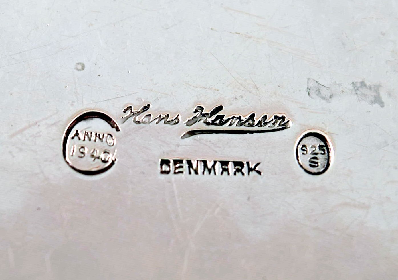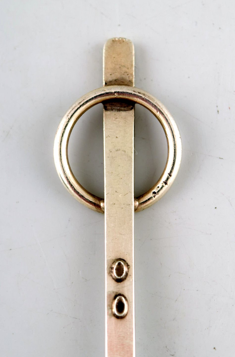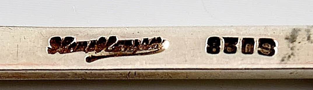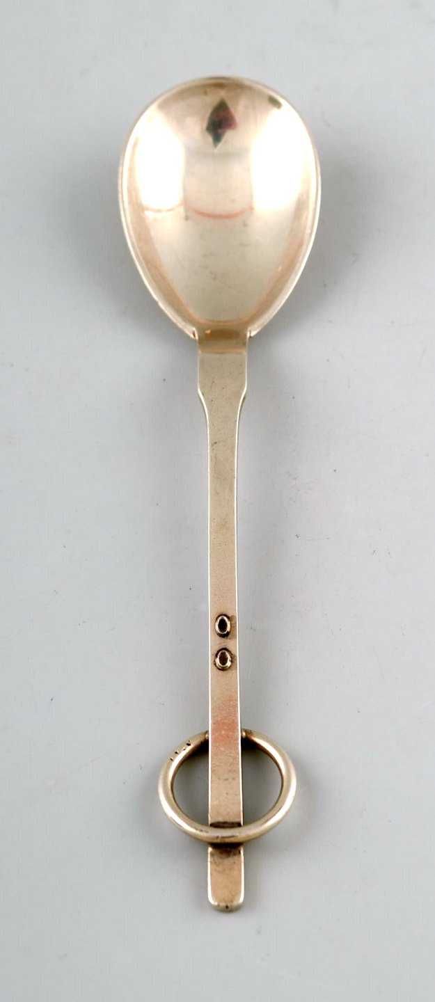 and Hans Hansen jam spoon in hammered sterling silver finial decorated with checkered pattern.
