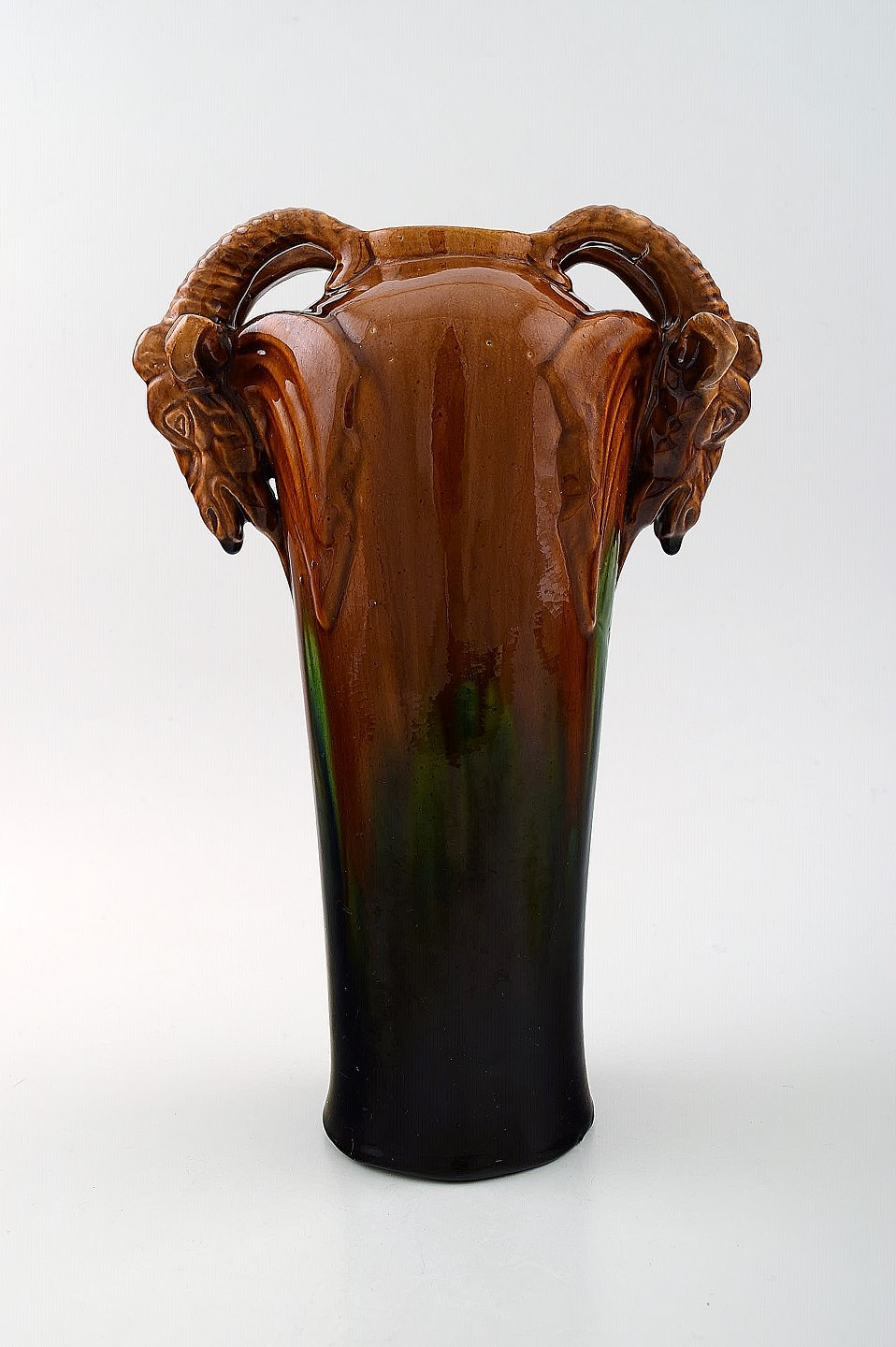Michael Andersen. A pair of vases in ceramics with Rams. Luster glaze. Stamped indistinctly. Early model. Height 24 cm. Diameter 17 cm. In perfect condition.