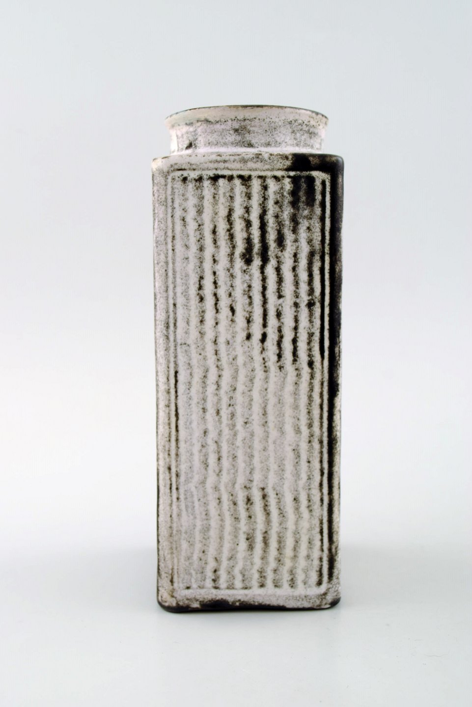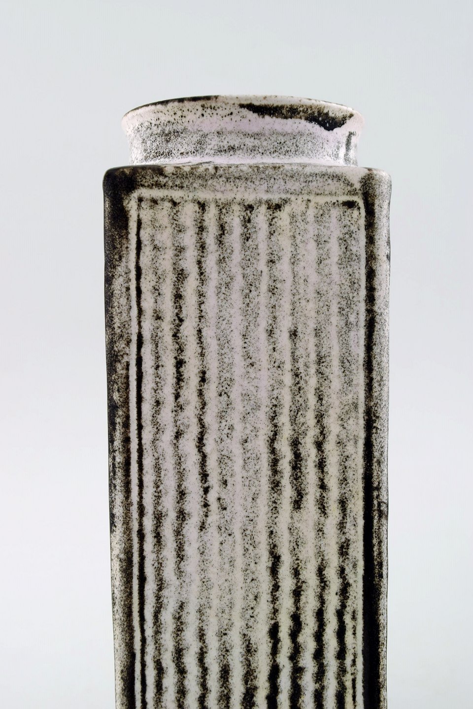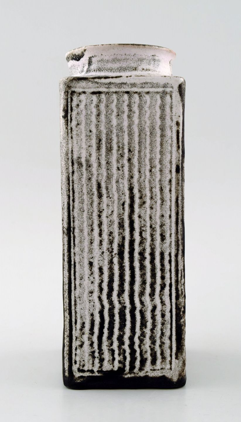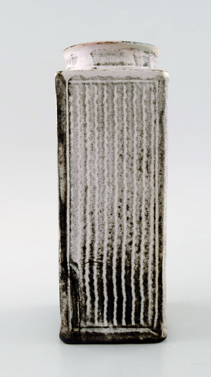 Large Kähler, Denmark, glazed earthenware vase, 1930s. Designed by Svend Hammershoi. Double Glaze in black and gray. Measures 17 cm. x 6 cm. Marked. In perfect condition.