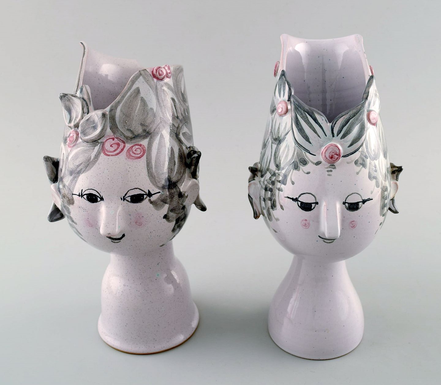 Bjorn Wiinblad 1918-2006: A pair of vases of polychrome ceramic, signed at the bottom with monogram V 18, 70 and 83 (1970 and 1983), Denmark. Height 20.5 cm. In perfect condition.