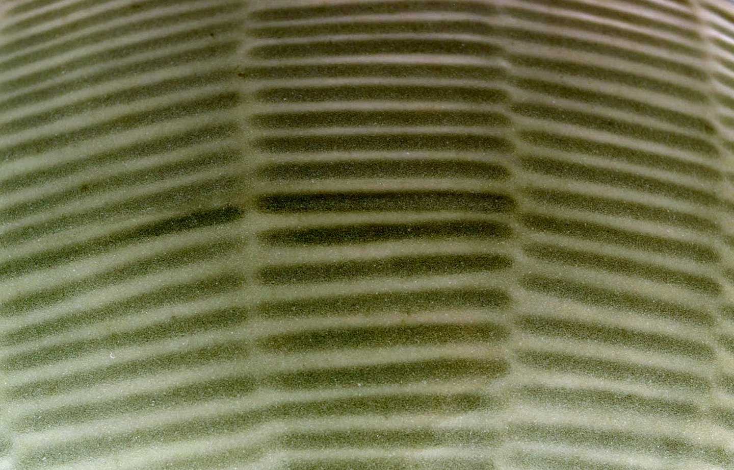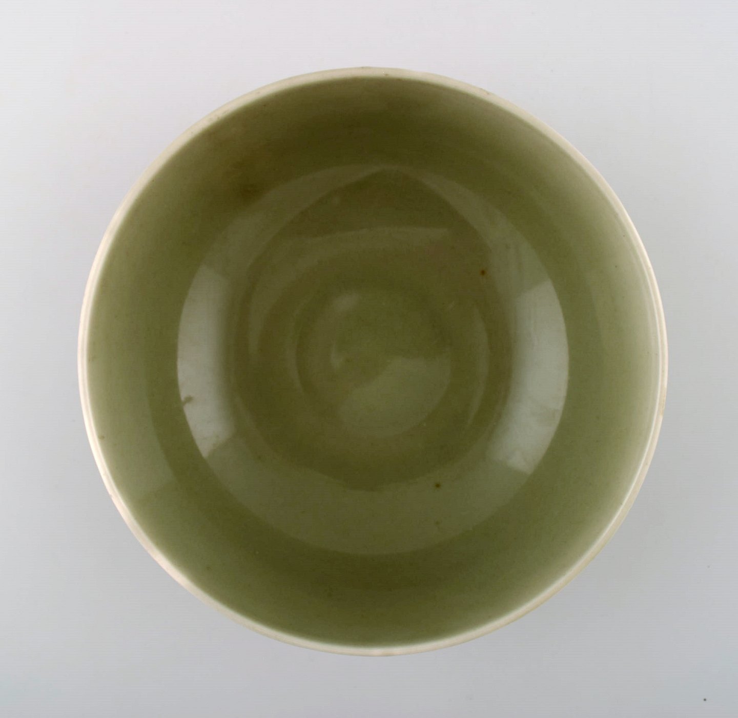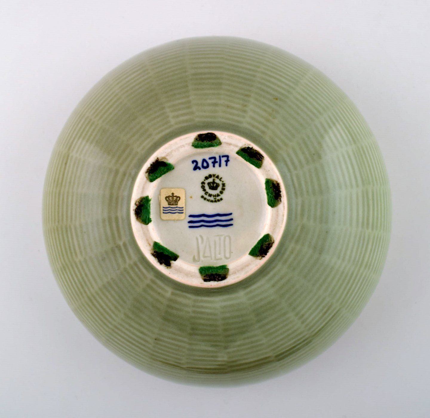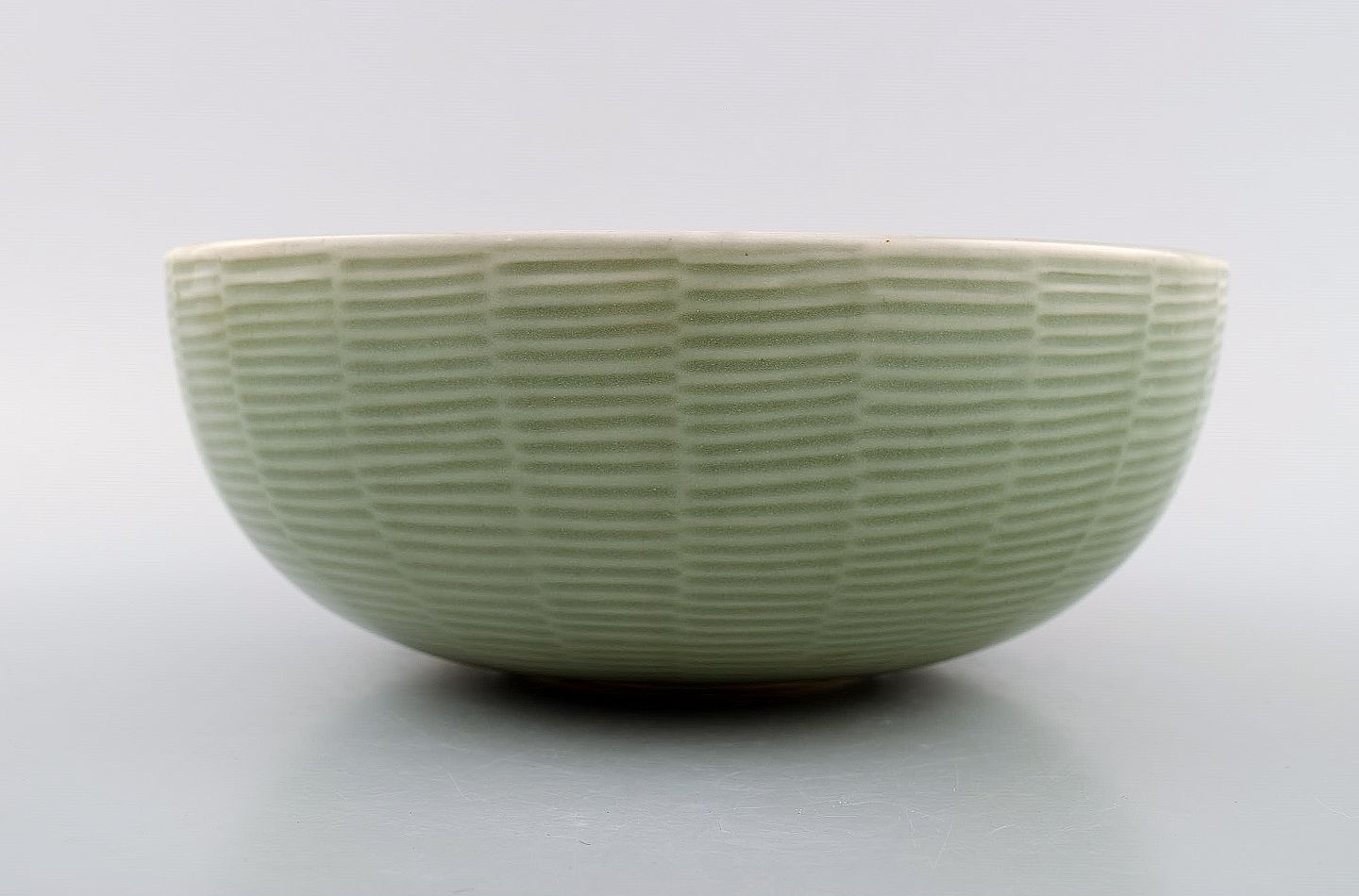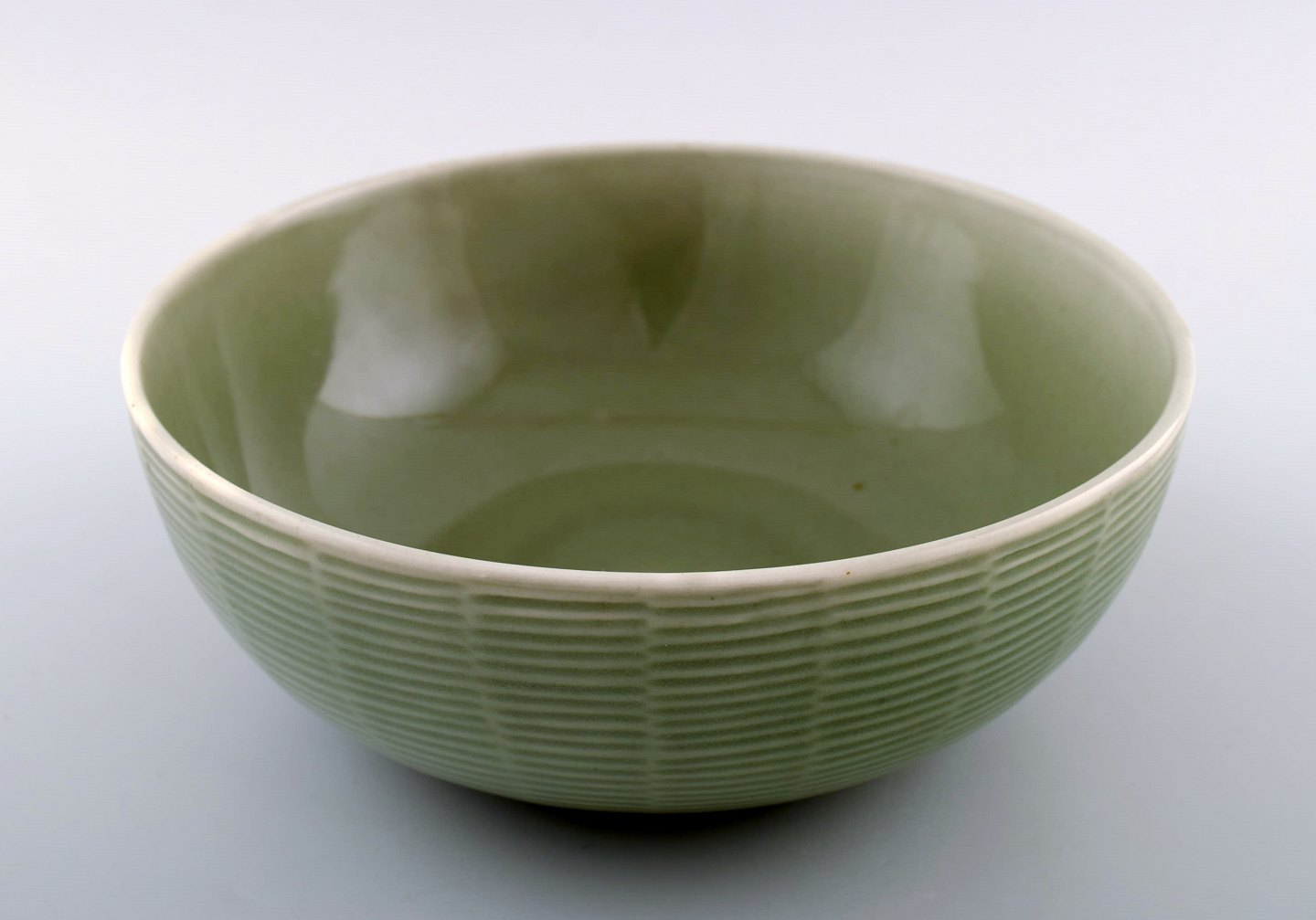 Axel Salto: A Royal Copenhagen stoneware bowl decorated with fluted pattern with celadon glaze. Signed Salto, number 20717. Diameter 19.5 cm. Height 8 cm. In very good condition, 1st. factory quality.