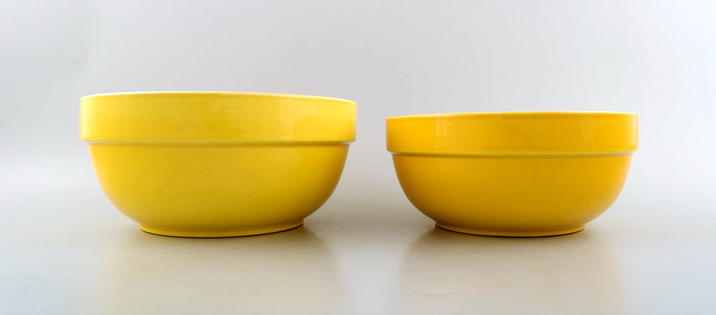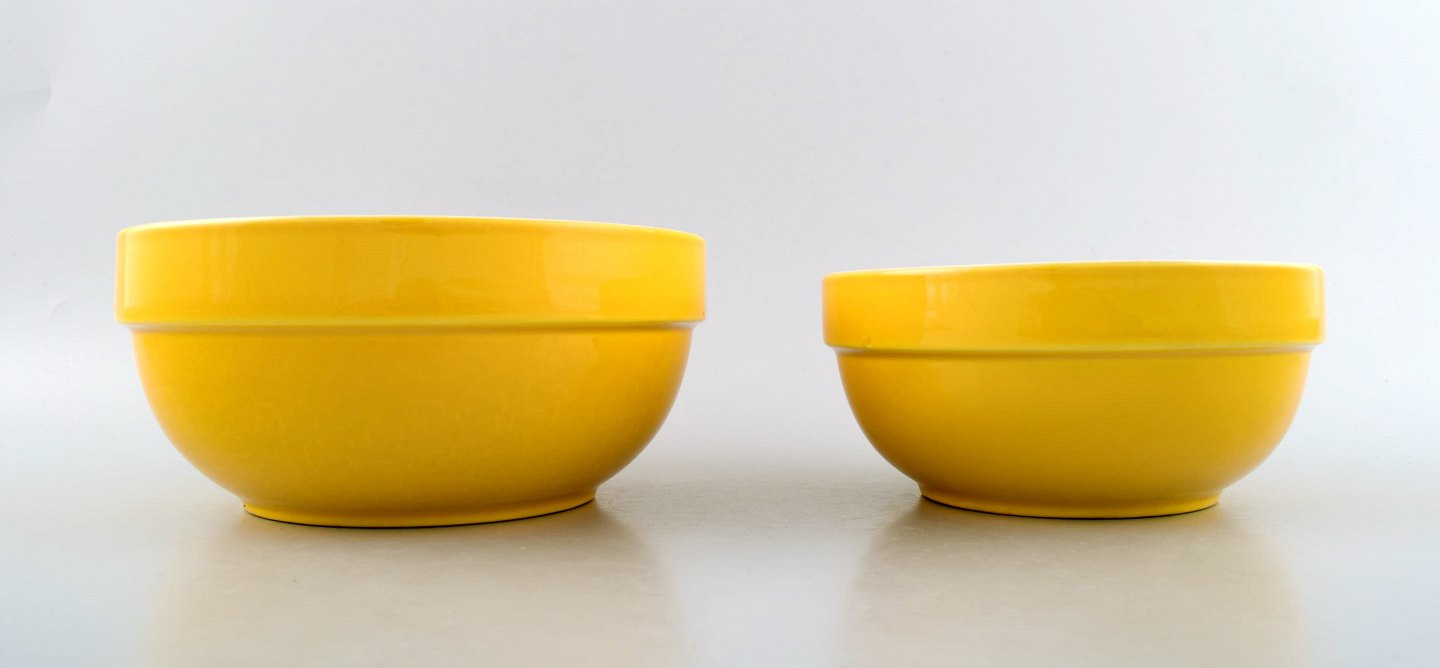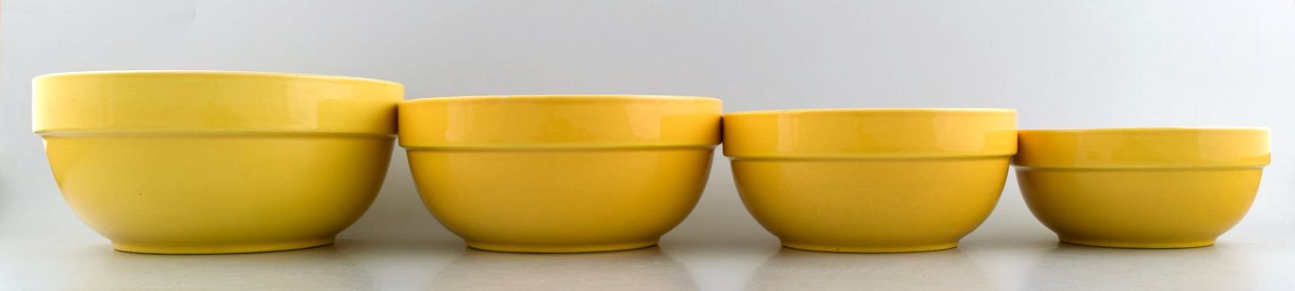 4 skåle, Susanne Gul Confetti Royal Copenhagen/ Aluminia fajance. Måler: Største : 22 cm. x 10 cm. Mindste 15 x 7 cm. I flot stand. 1. sortering.