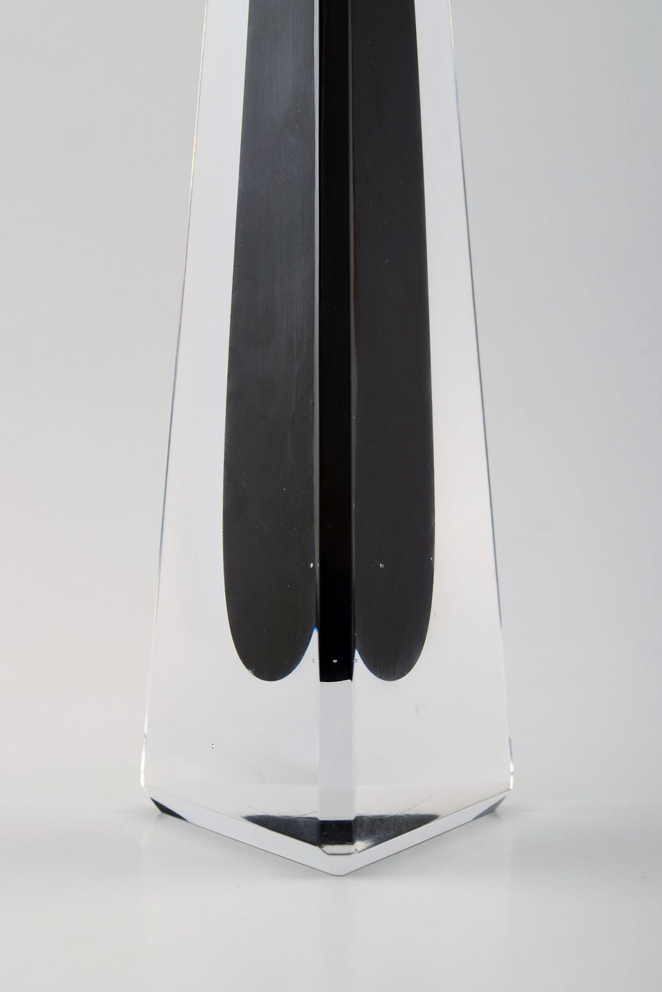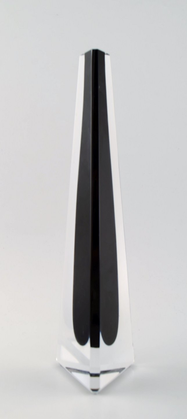 Large Vicke Lindstrand for Kosta Boda art glass vase. Clear glass with black decoration. Marked. Measures 29 cm. x 7.5 cm. In perfect condition.