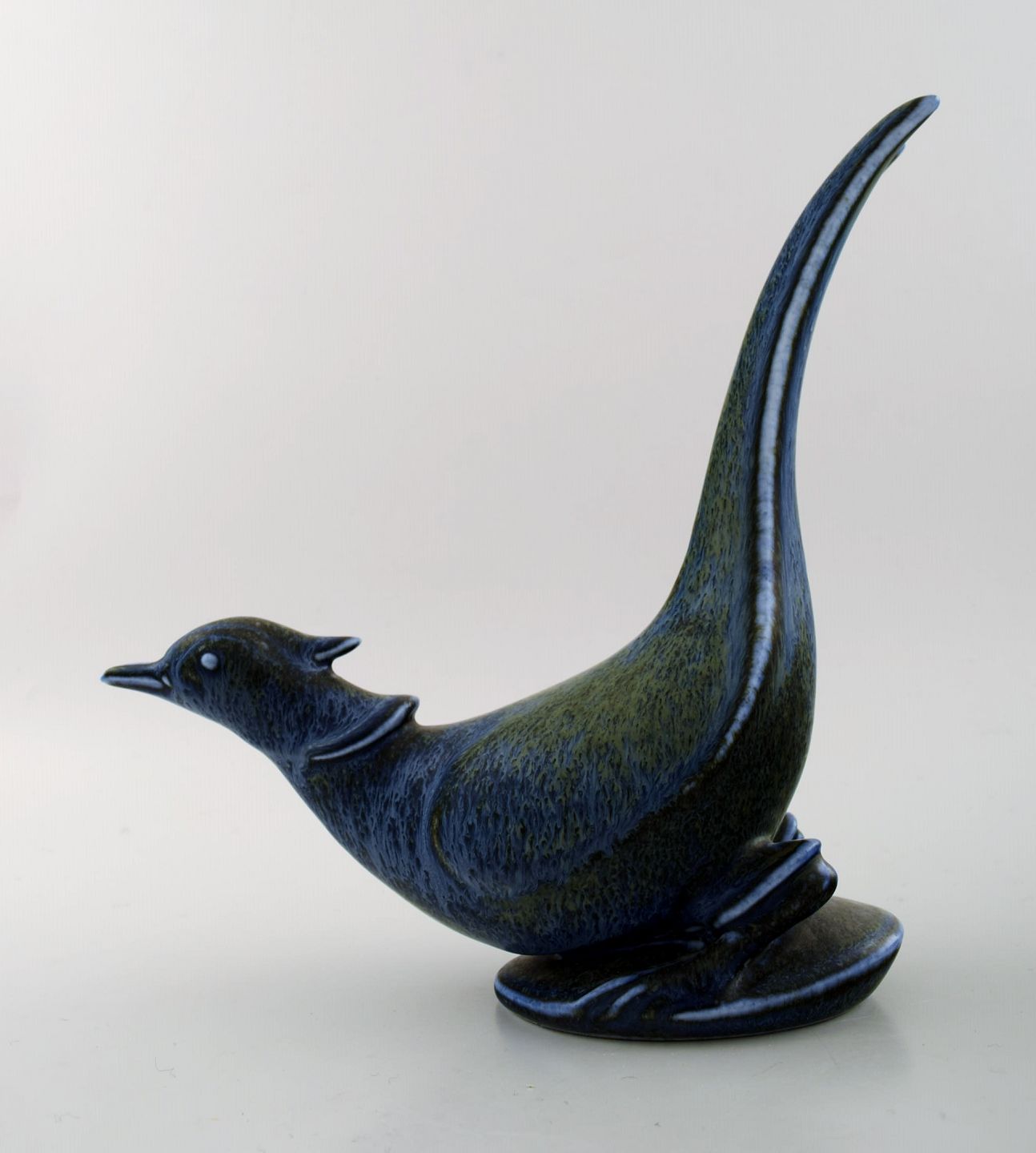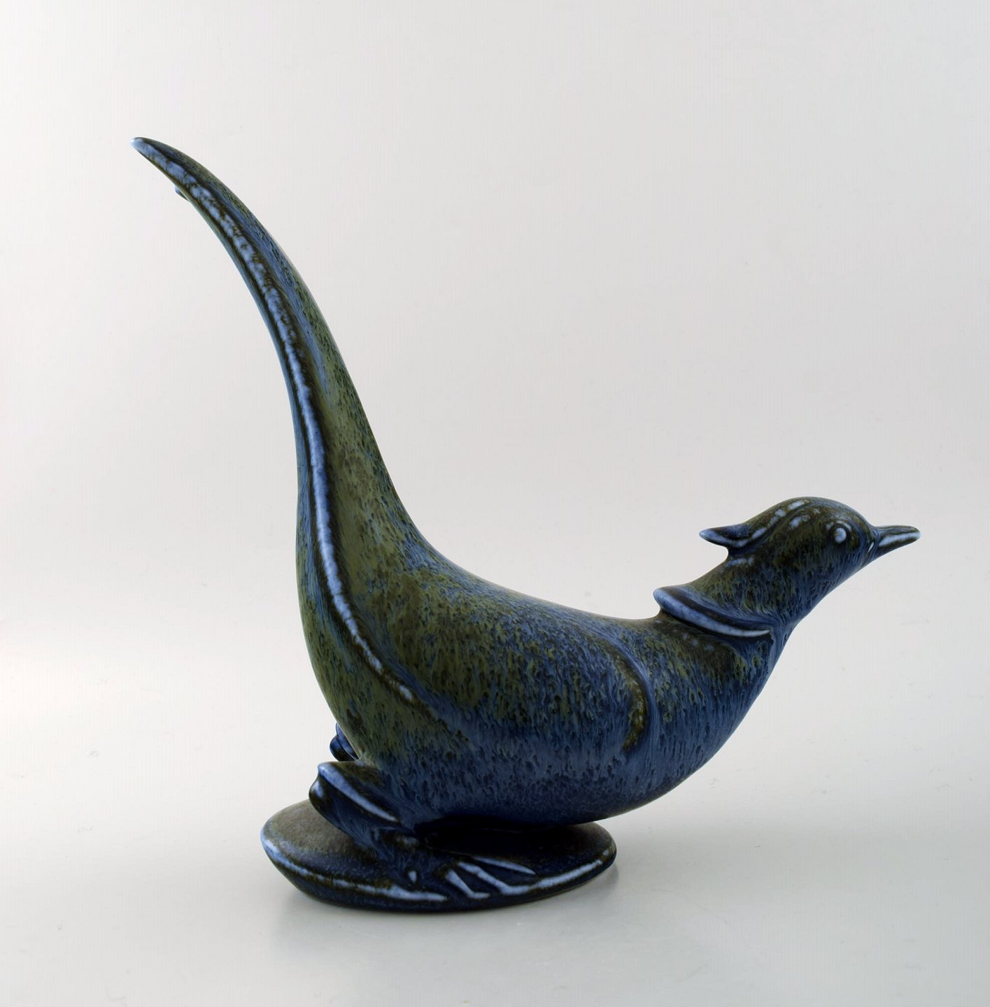 Gunnar Nylund fasan i glaseret stentøj, 1950'erne. Måler : længde 27 cm, bredde 8,5 cm. Stemplet Rørstrand GN Sverige. I god stand, 1. sortering.