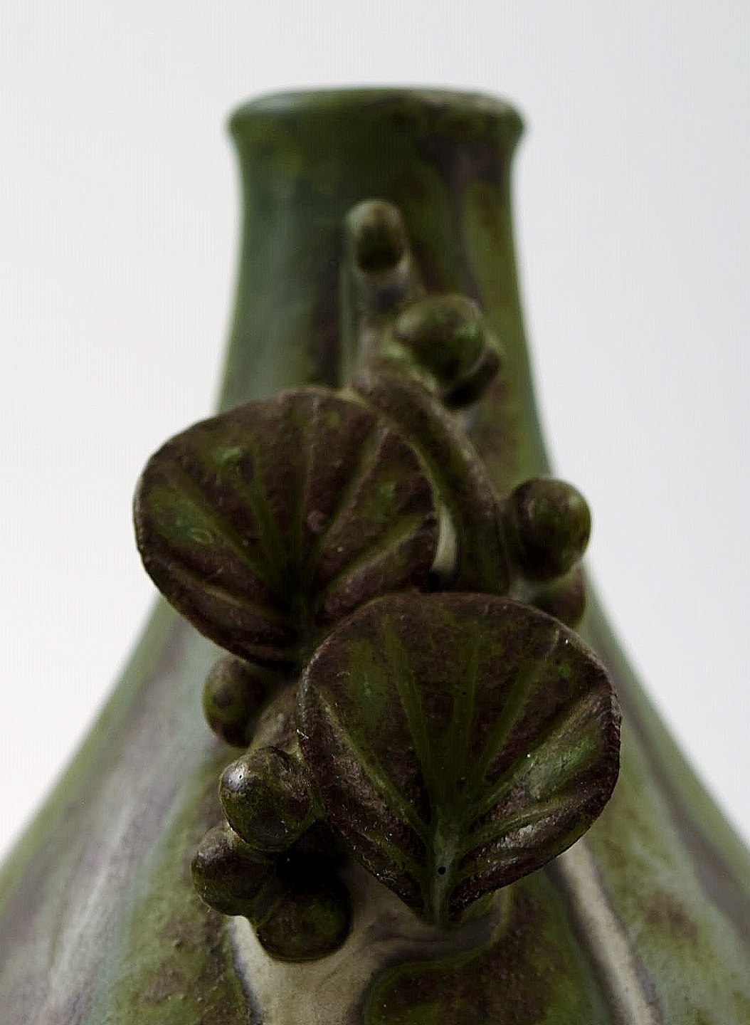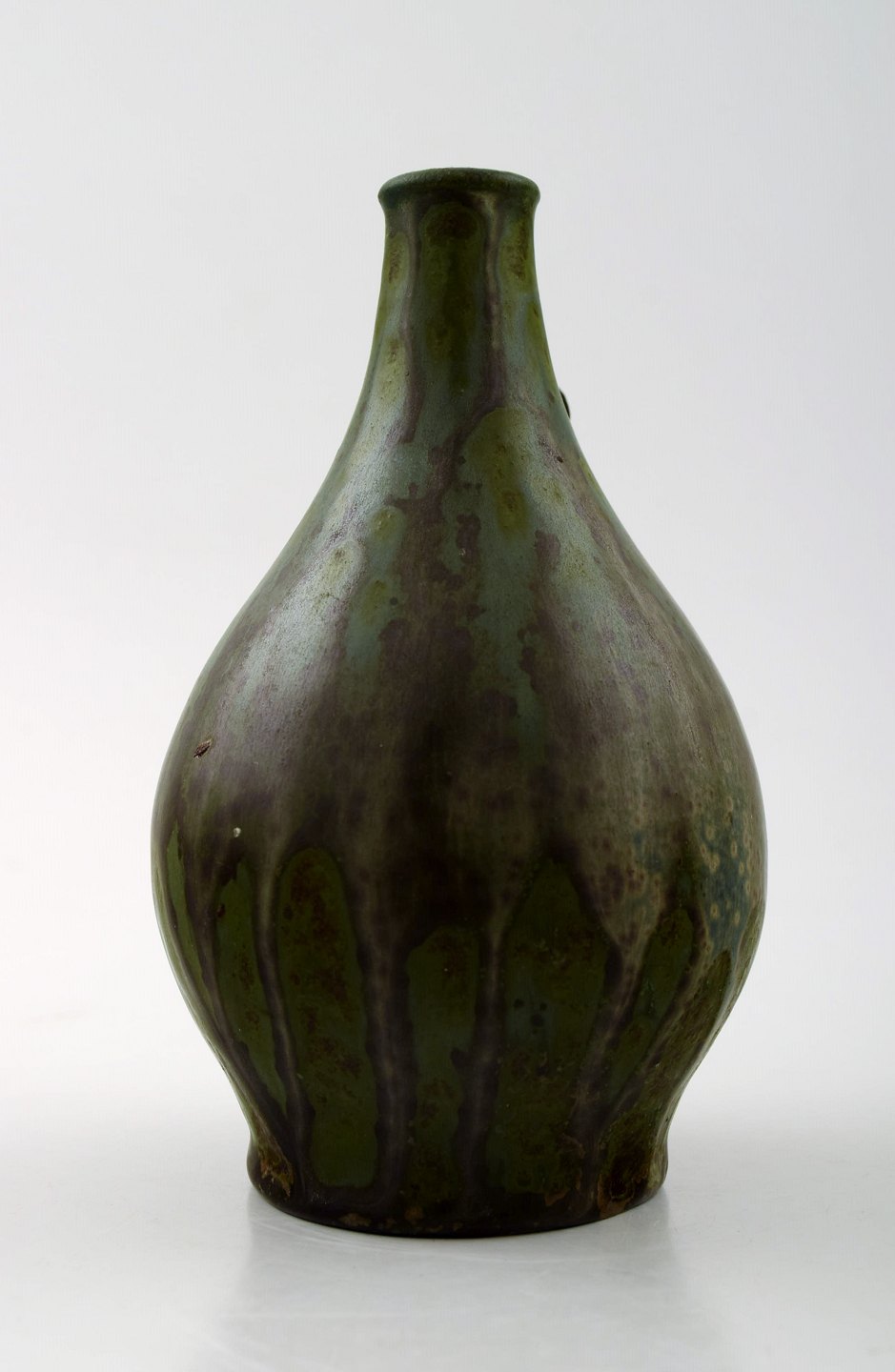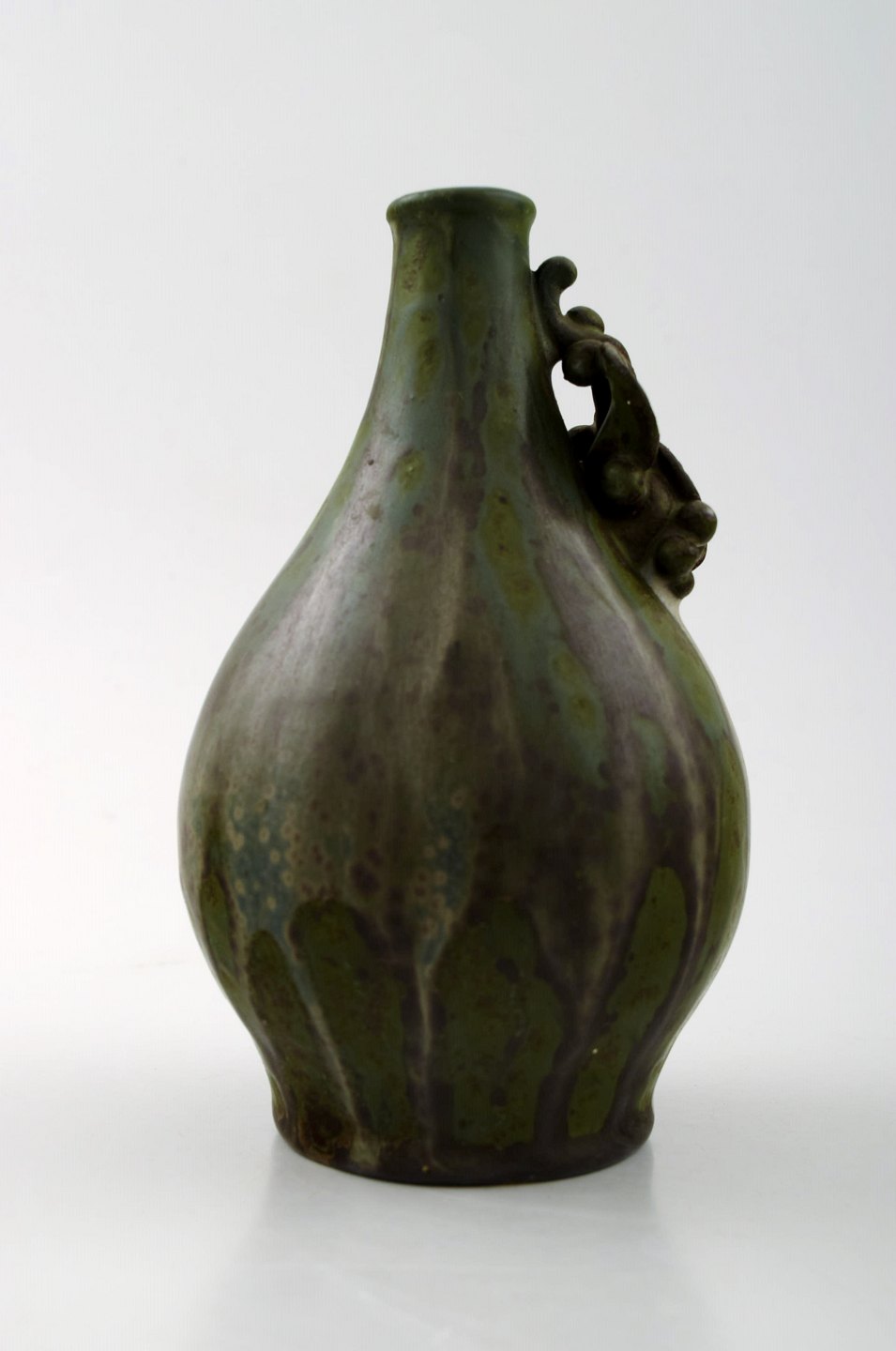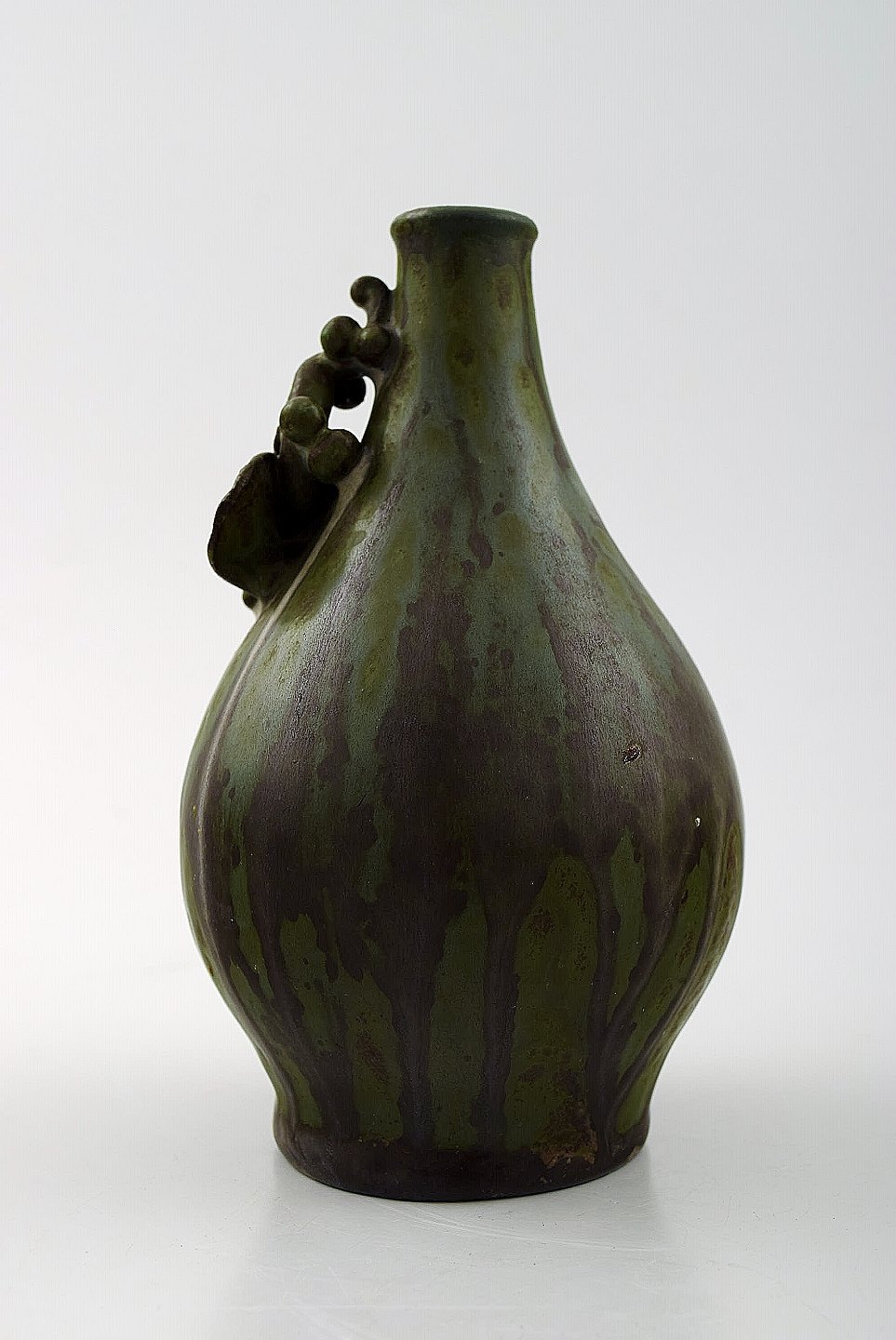 Arne Bang. Ceramic vase with foliage. Beautiful glaze in greenish brown tones. In perfect condition. Measures: 14.5 cm. X 8.5 cm. Stamped. AB 18.
