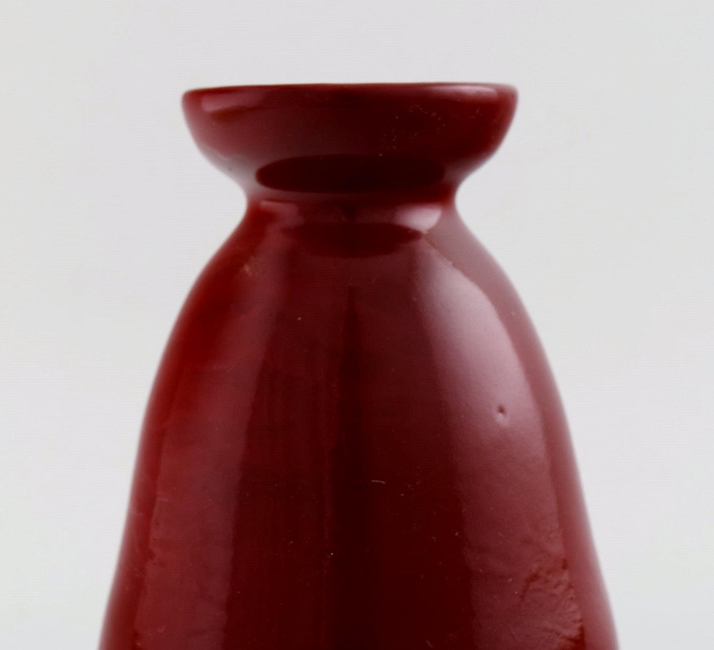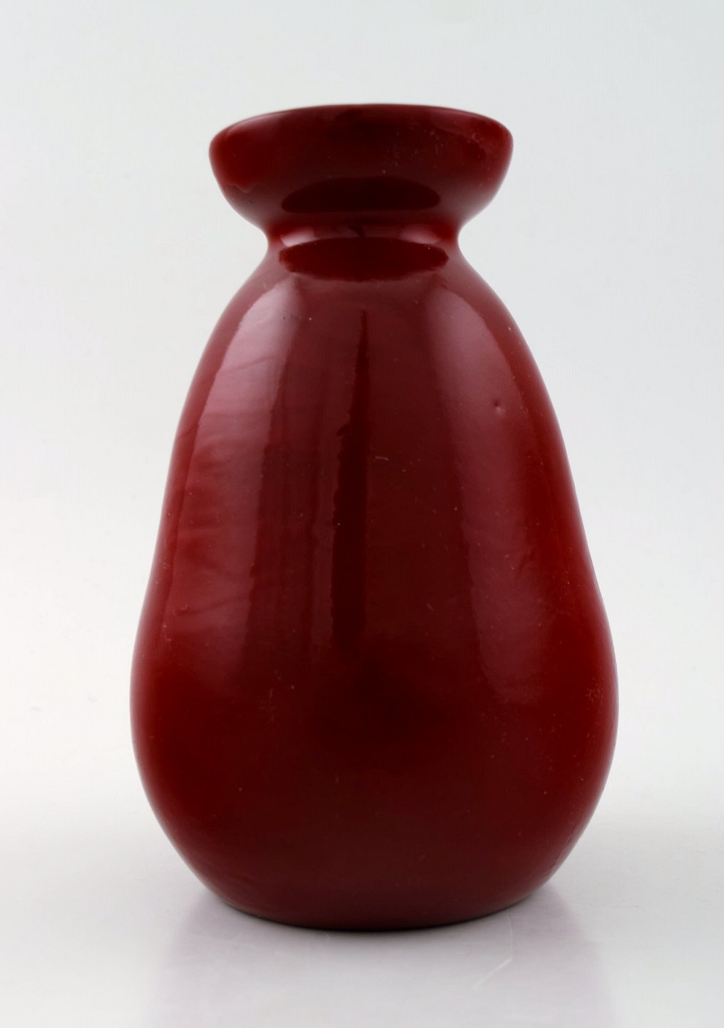 Kähler, Denmark, glazed stoneware vase red / burgundy glaze. Approximately 1910s. In perfect condition. Stamped. "HAK" Measures 17 x 11.5 cm.