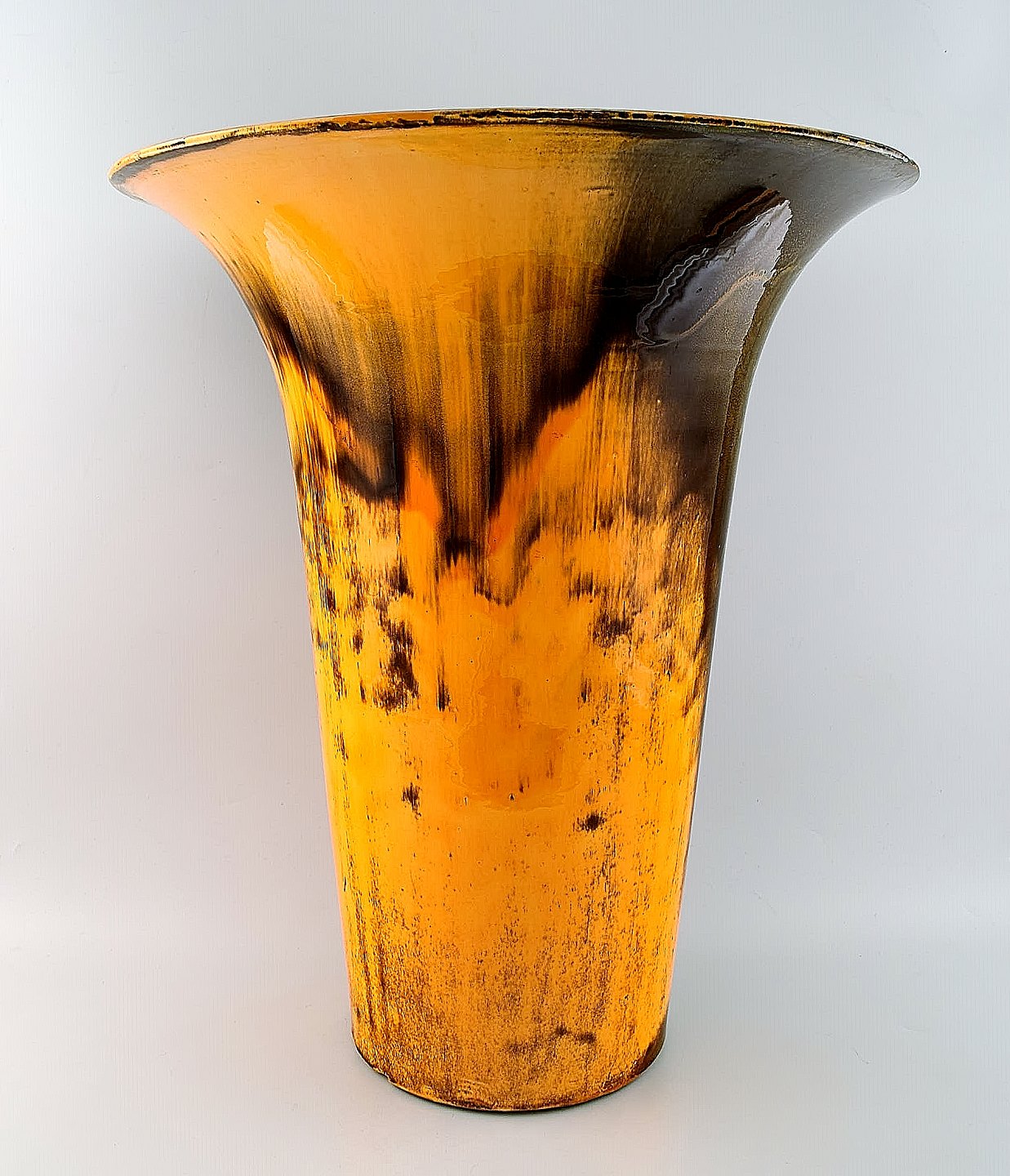 Stor Kähler, HAK, Svend Hammershøi, glaseret stentøjsgulvvase. I perfekt stand. Flot urangul glasur. Stemplet. Måler 51 x 43 cm.