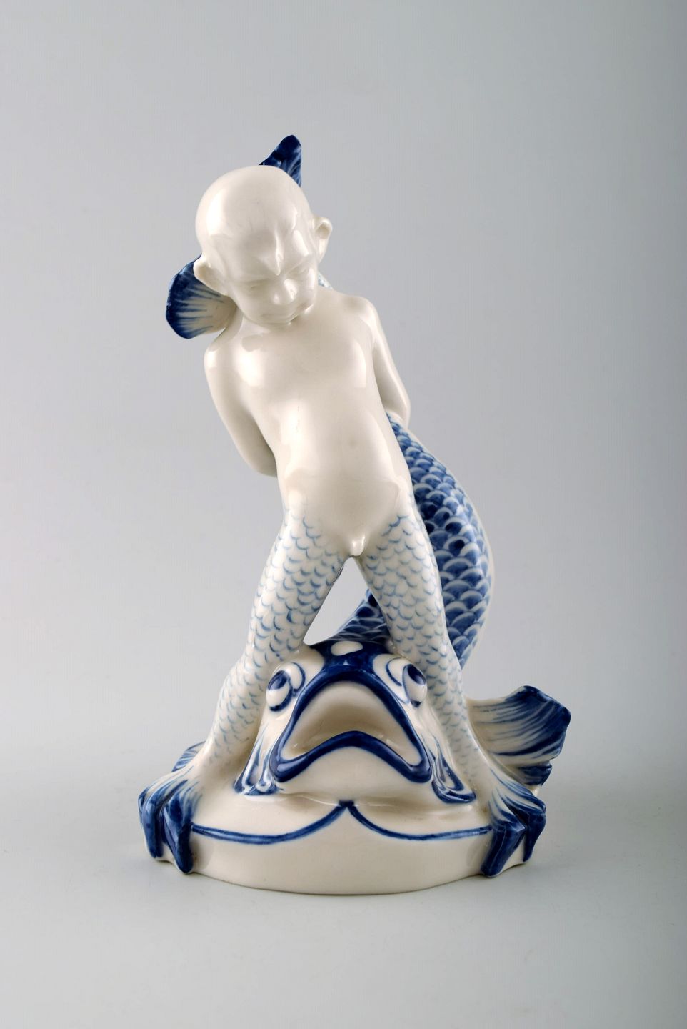 Sjælden Rörstrand porcelænsfigur, havdreng og fisk.