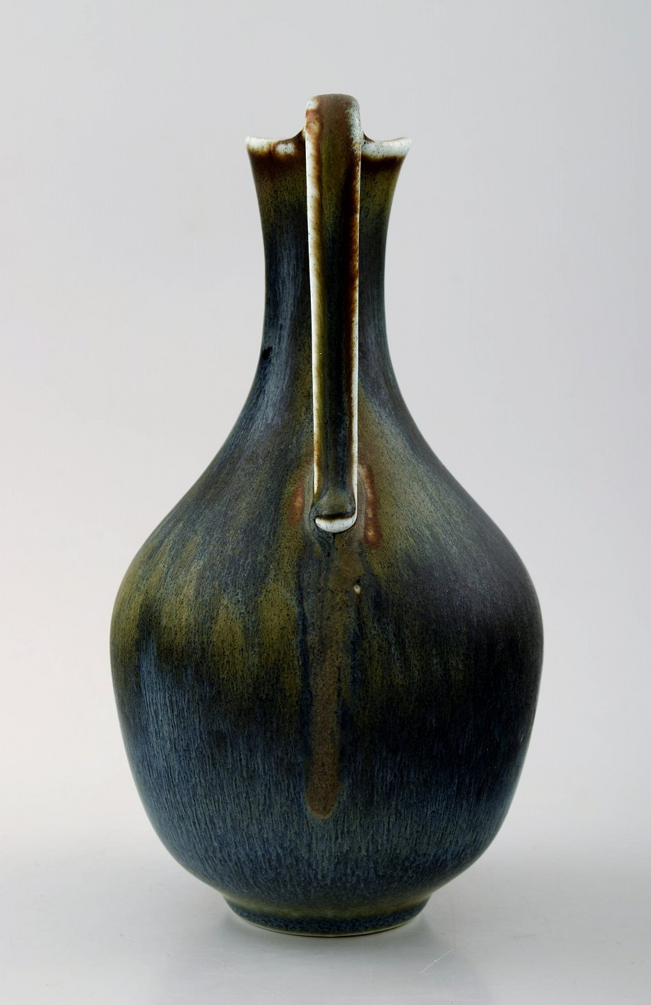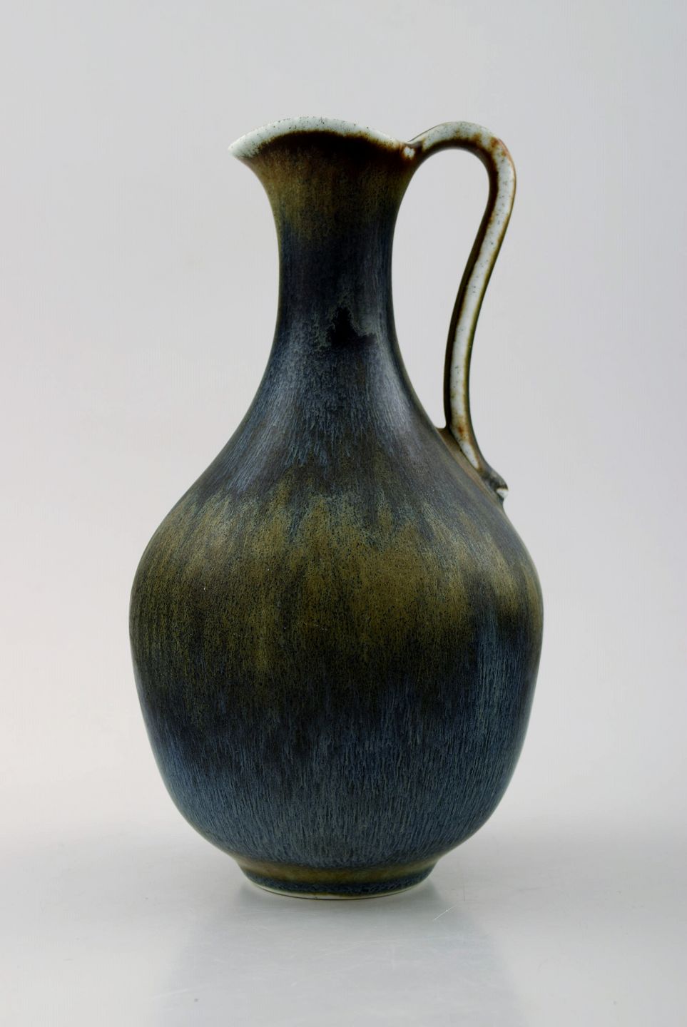 Gunnar Nylund, Rörstrand kande i keramik. Smuk glasur i blågrønne nuancer. I perfekt stand. Måler : 17,5 cm. x 10 cm. Stemplet.