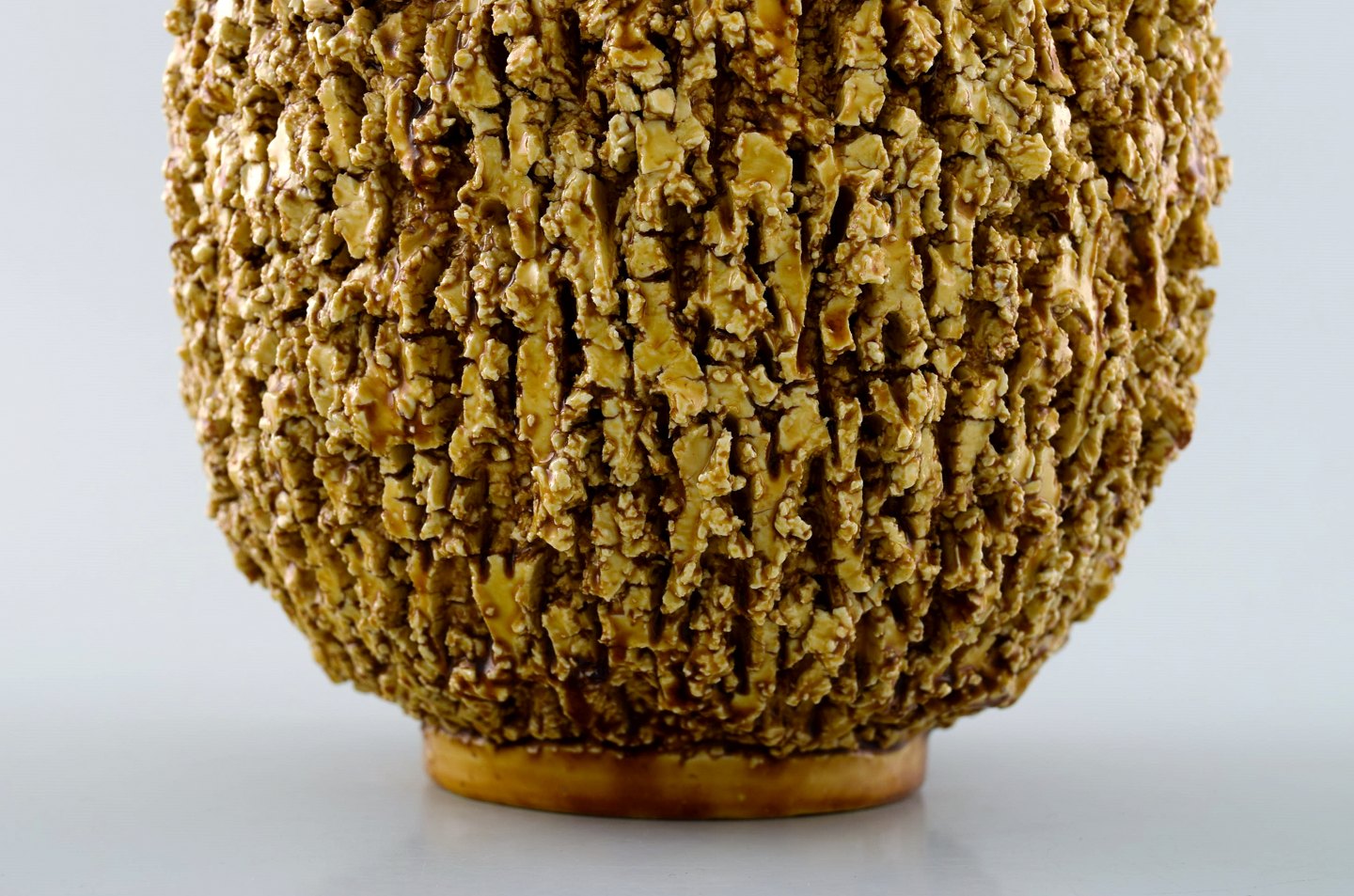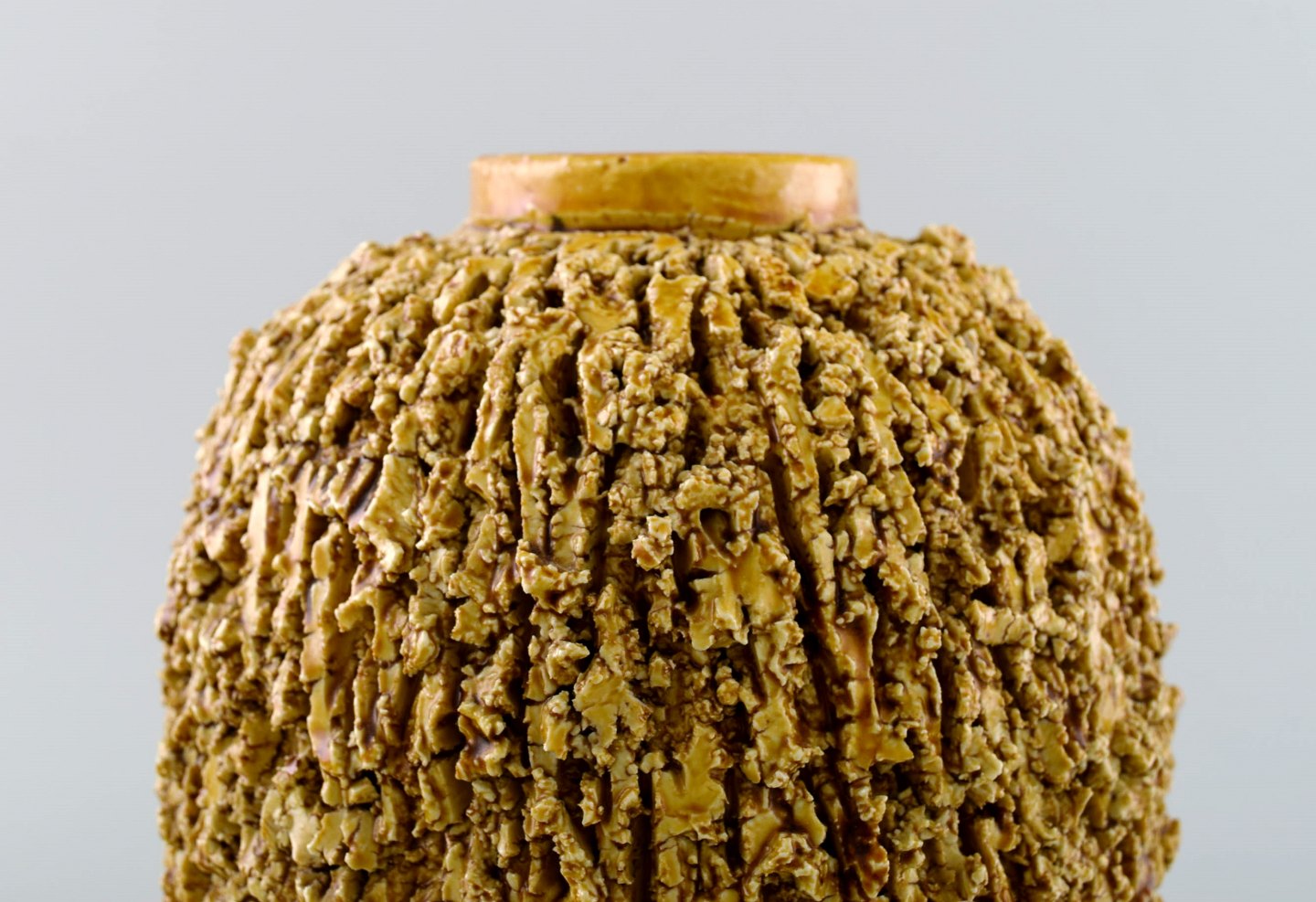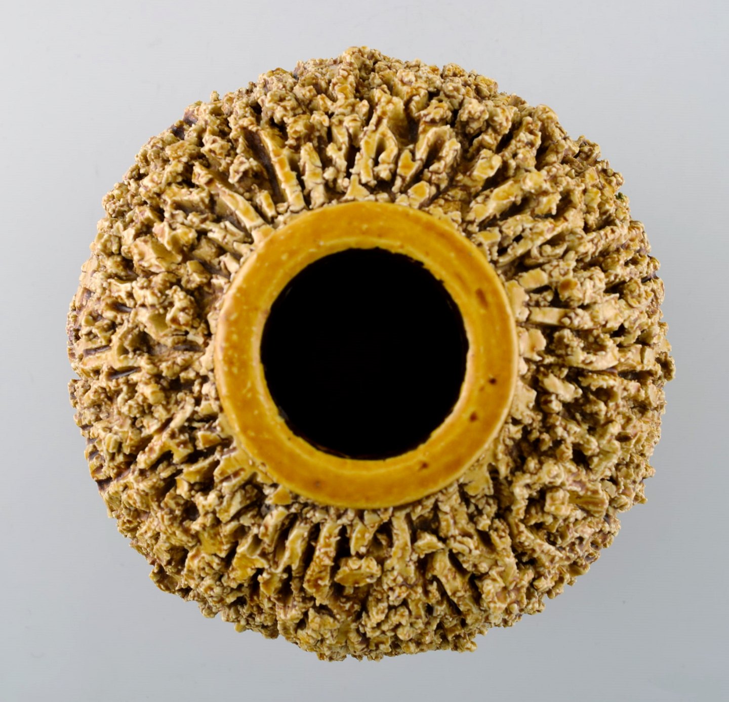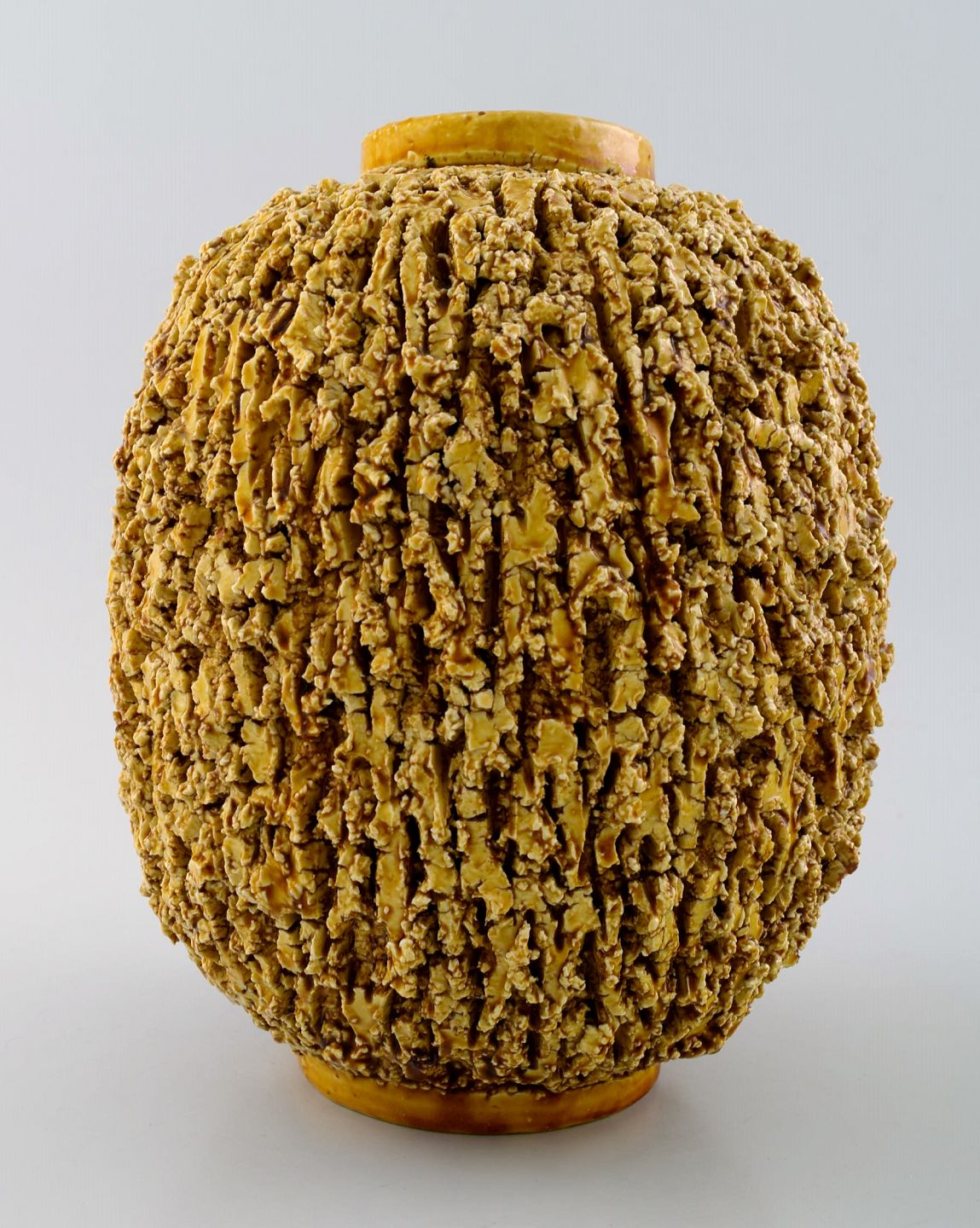 Rörstrand / Rørstrand Gunnar Nylund "Chamotte" vase. "Hedgehog Vase". Measures: 21 x 16 cm. Largest model. Mustard glaze. Stamped. In perfect condition.