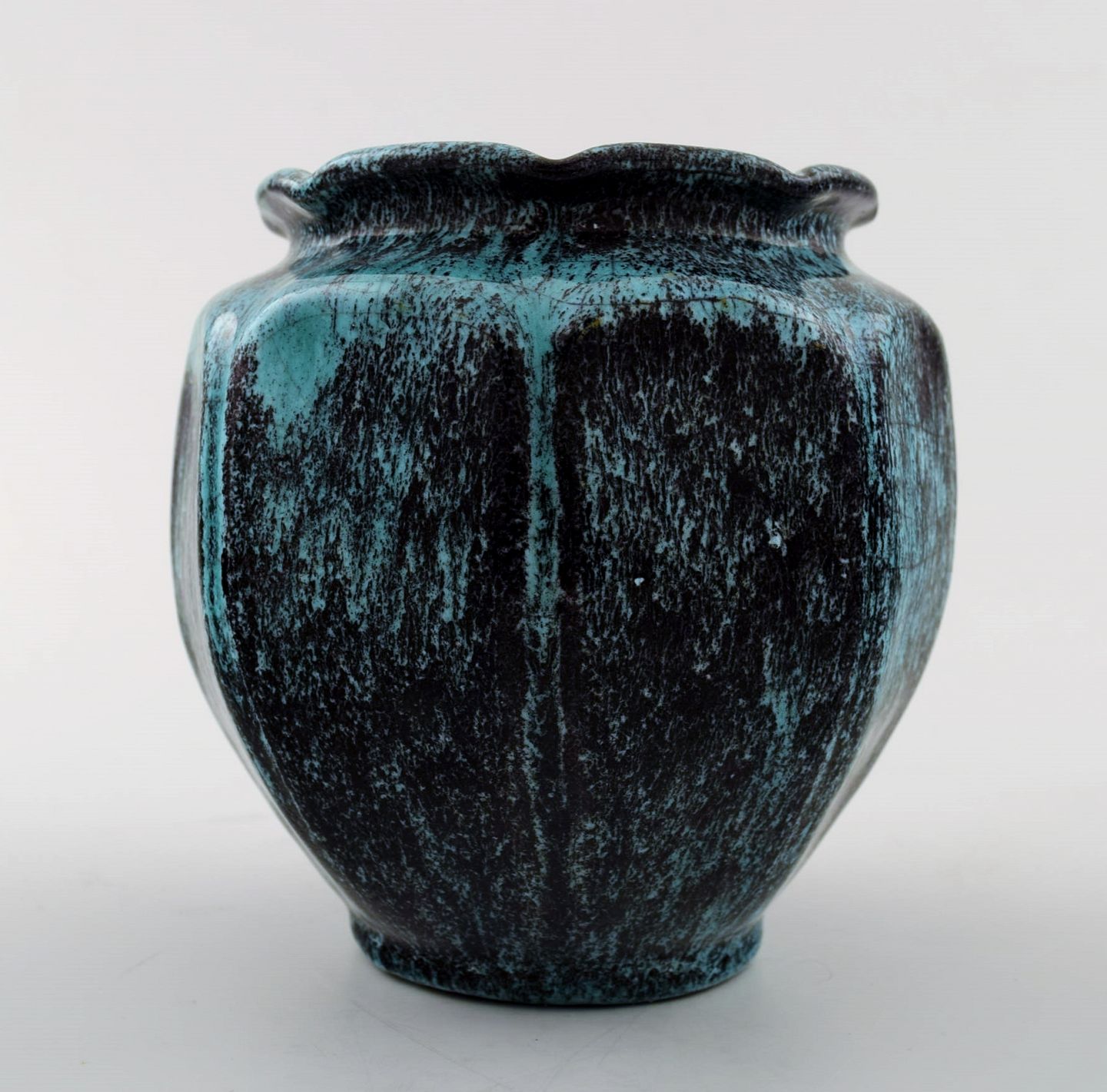 Svend Hammershoi for Kähler, Denmark, glazed stoneware art pottery vase, 1930s. Designed by Svend Hammershøi. Turquoise Green double glaze. Measures 10 x 11 cm. Marked. In perfect condition.