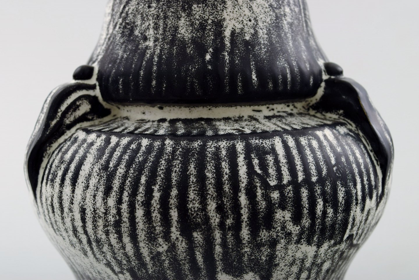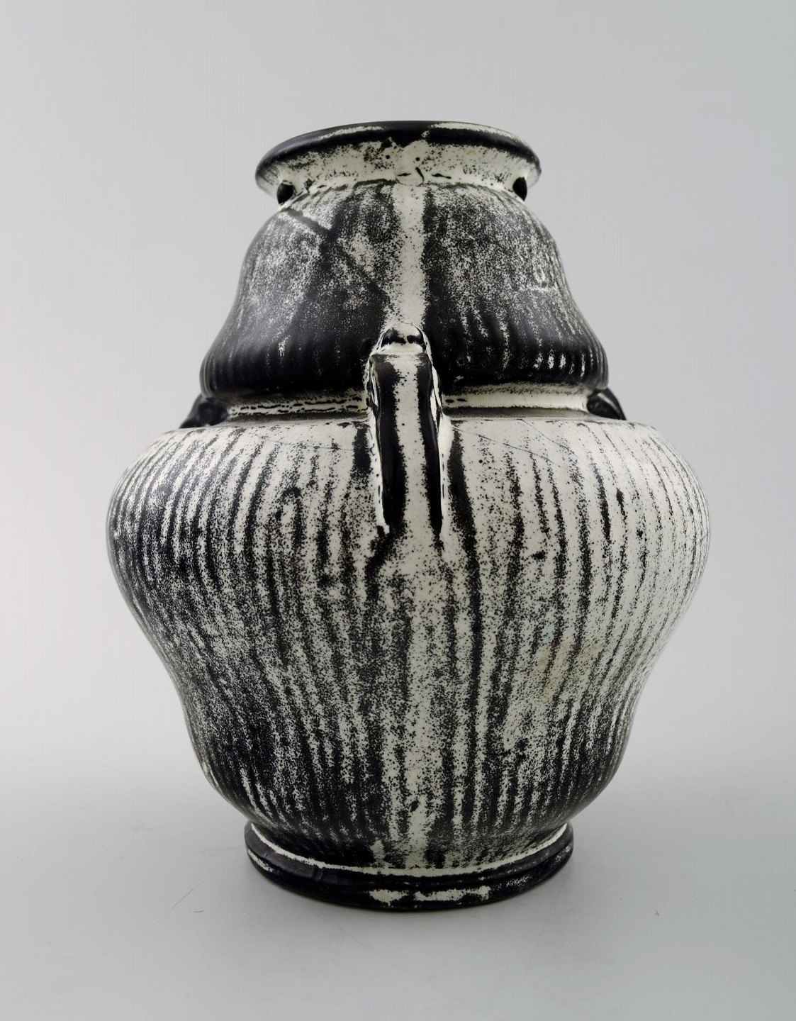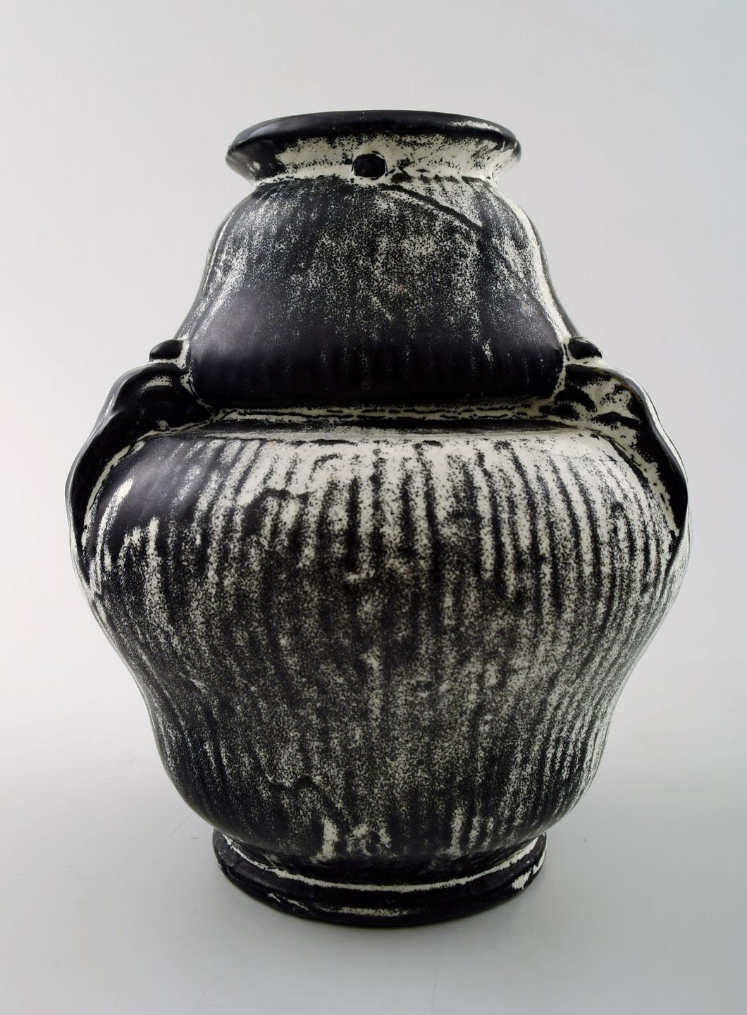 Kähler, Denmark, glazed ceramic vase, 1930 s. Designed by Svend Hammershoi. Glaze in black and gray. Measures 16 x 14 cm. Marked. In perfect condition.