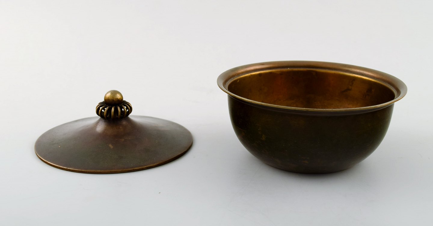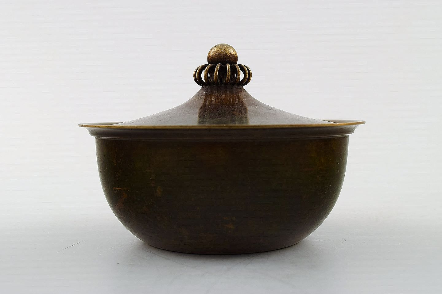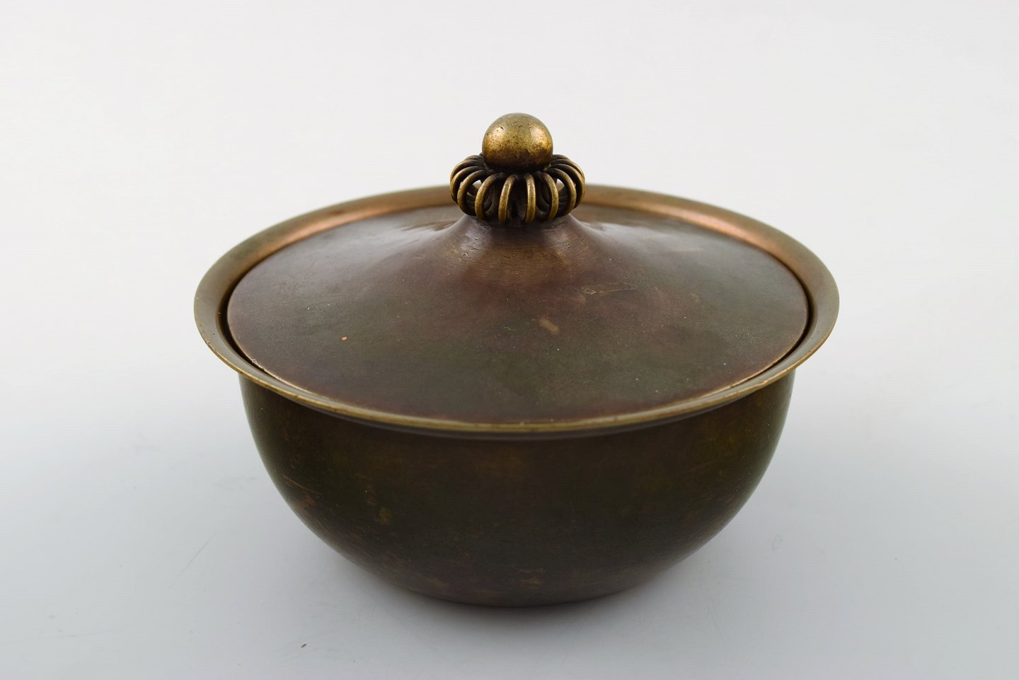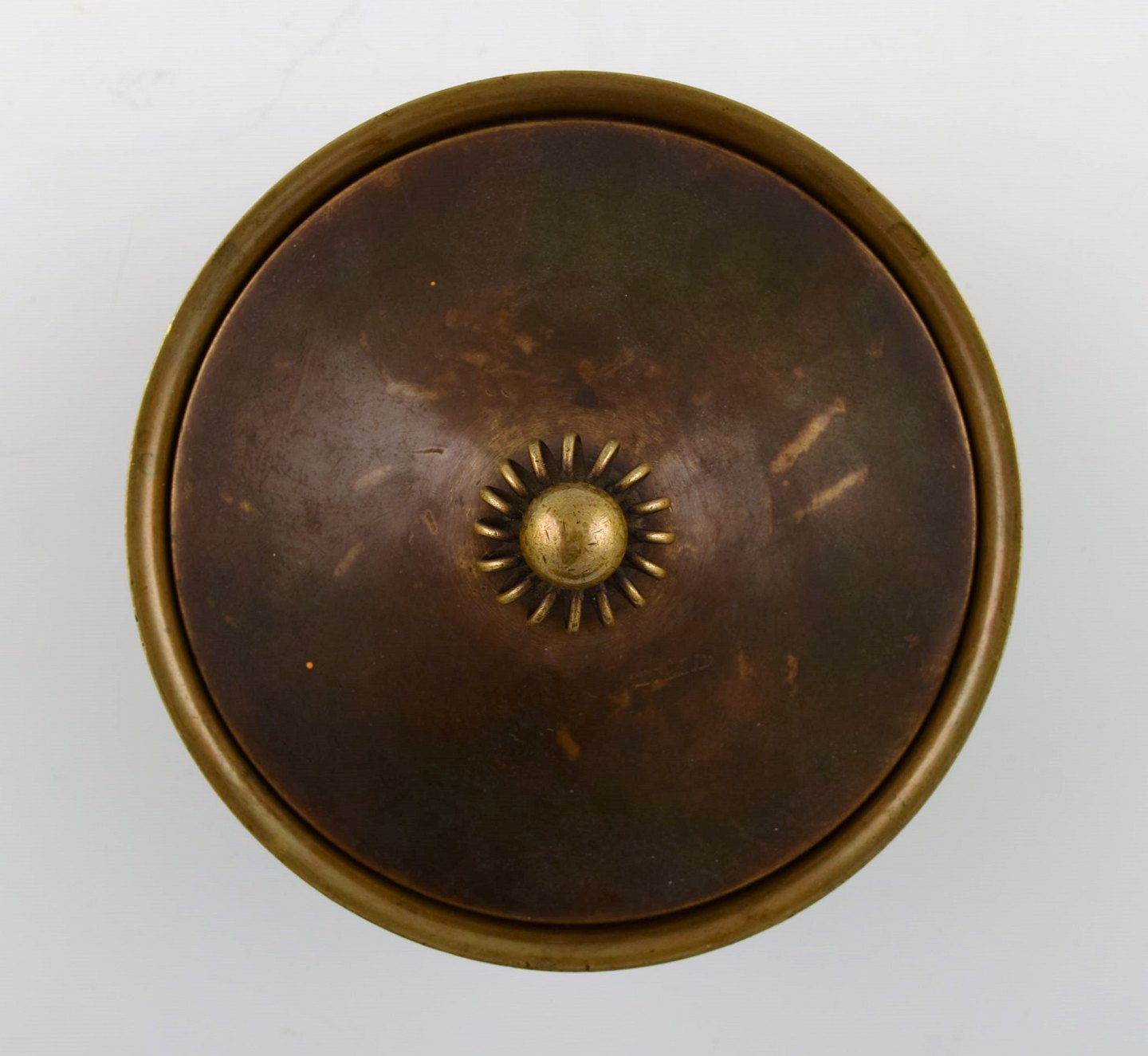 Just Andersen art deco box / jewelry box in light bronze. Stamped : LB 1615. Denmark 1940s. In very good condition, fine patina. Measures 10 cm. X 8.5 cm.