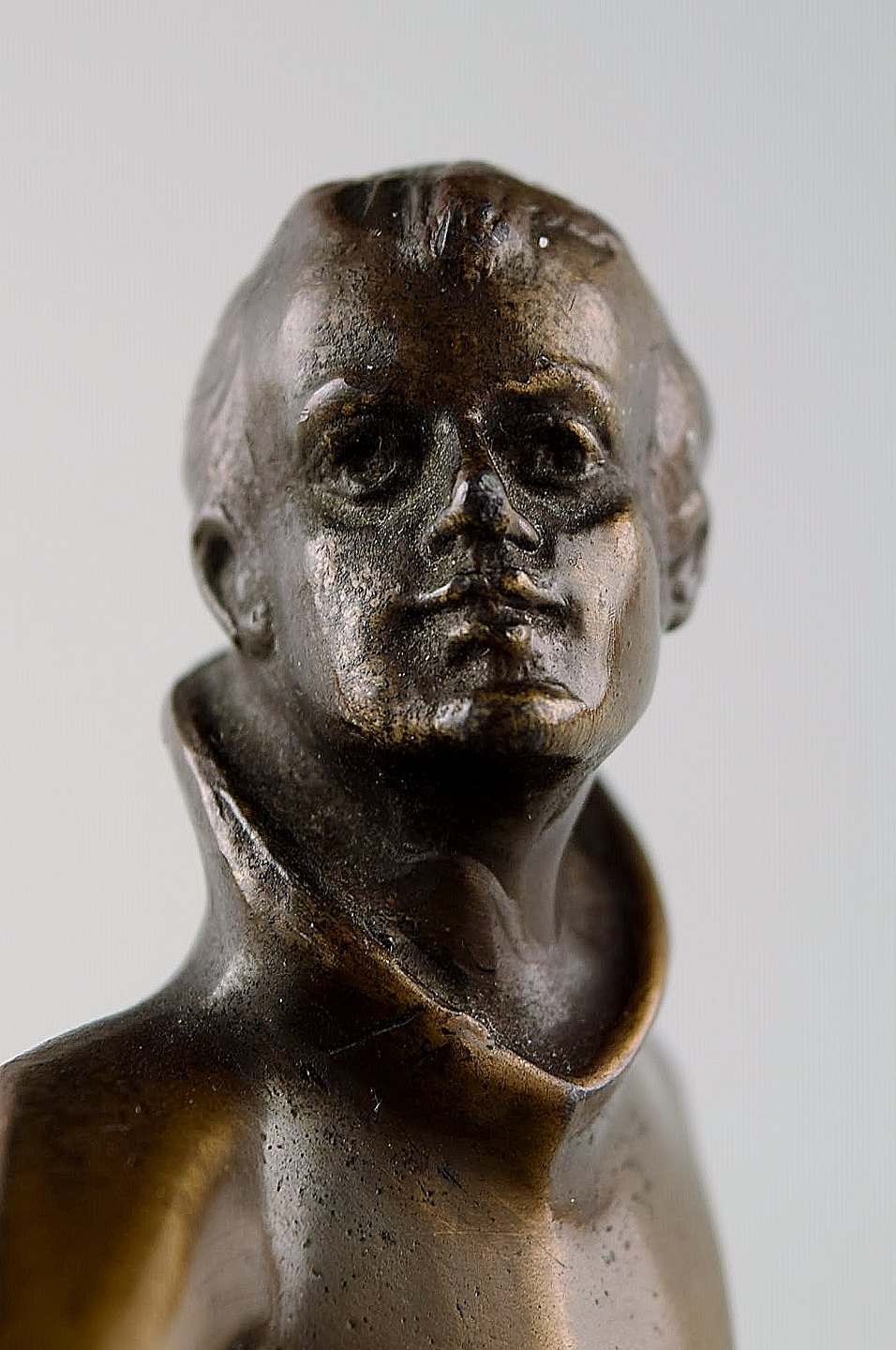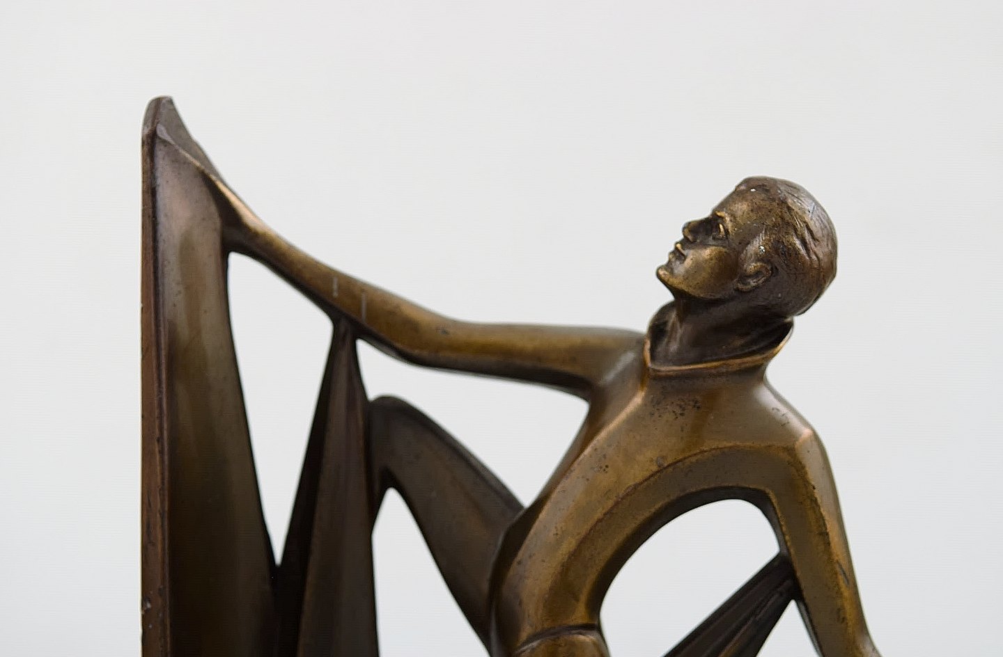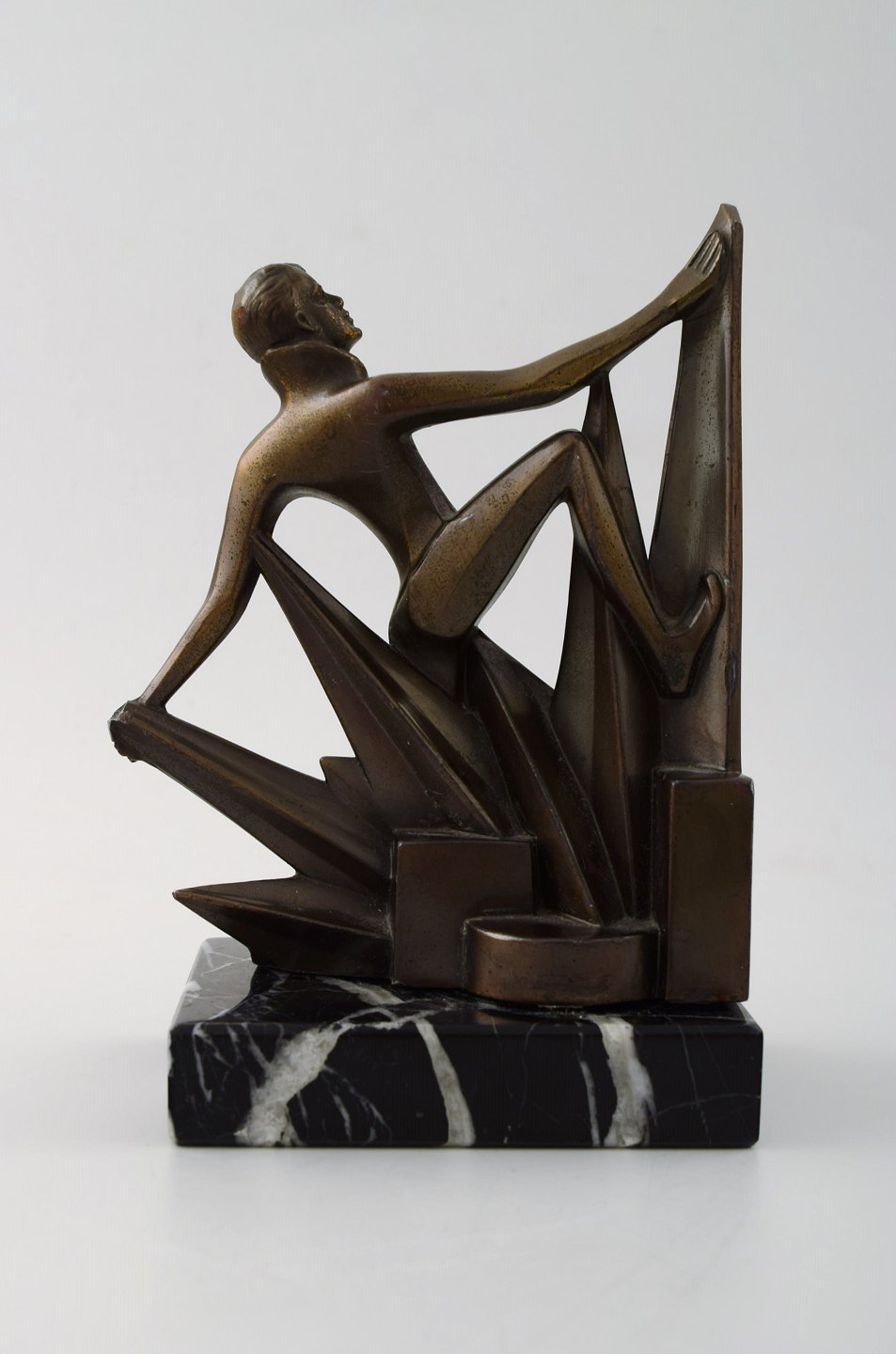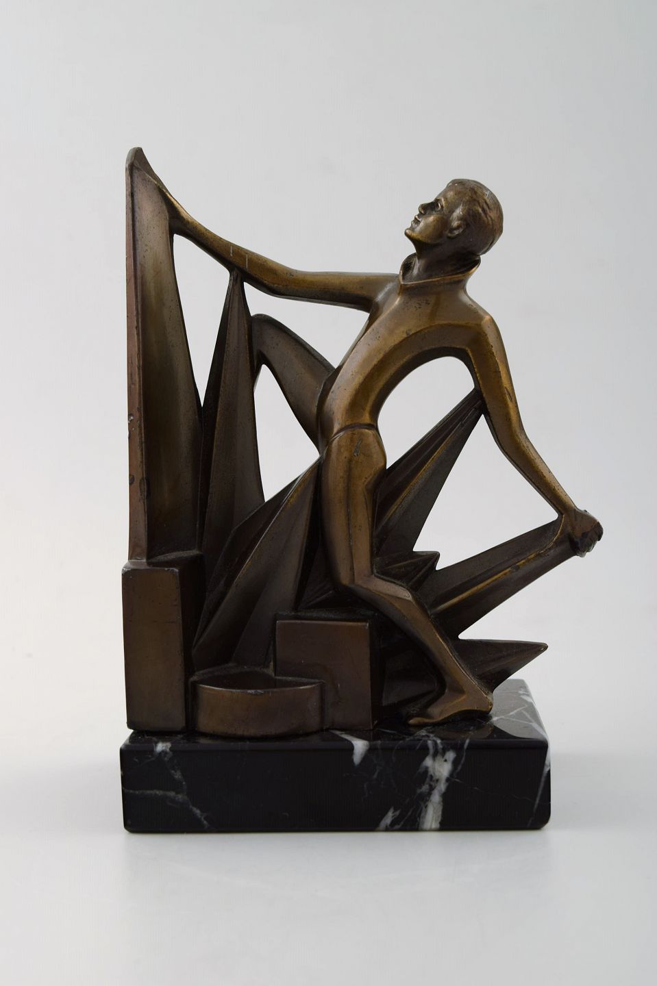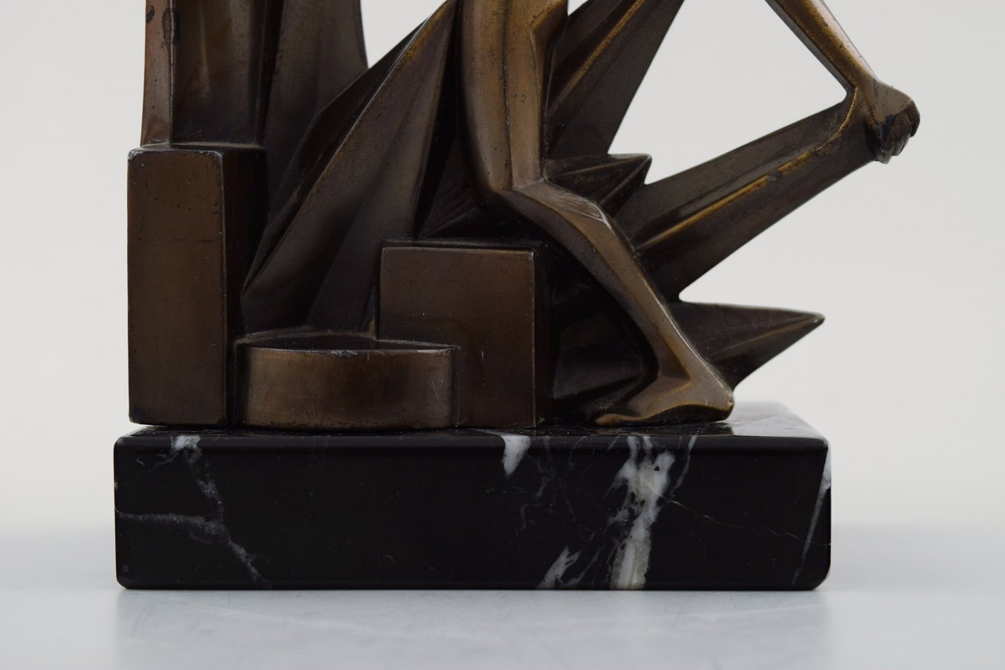 Art deco bookend in bronze on marble base. 1920/30s. Measures: 16 cm. X 12 cm. Unstamped. In excellent condition with good patina.