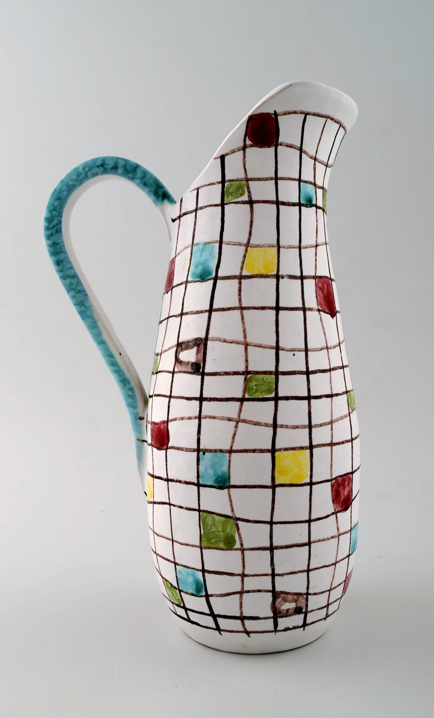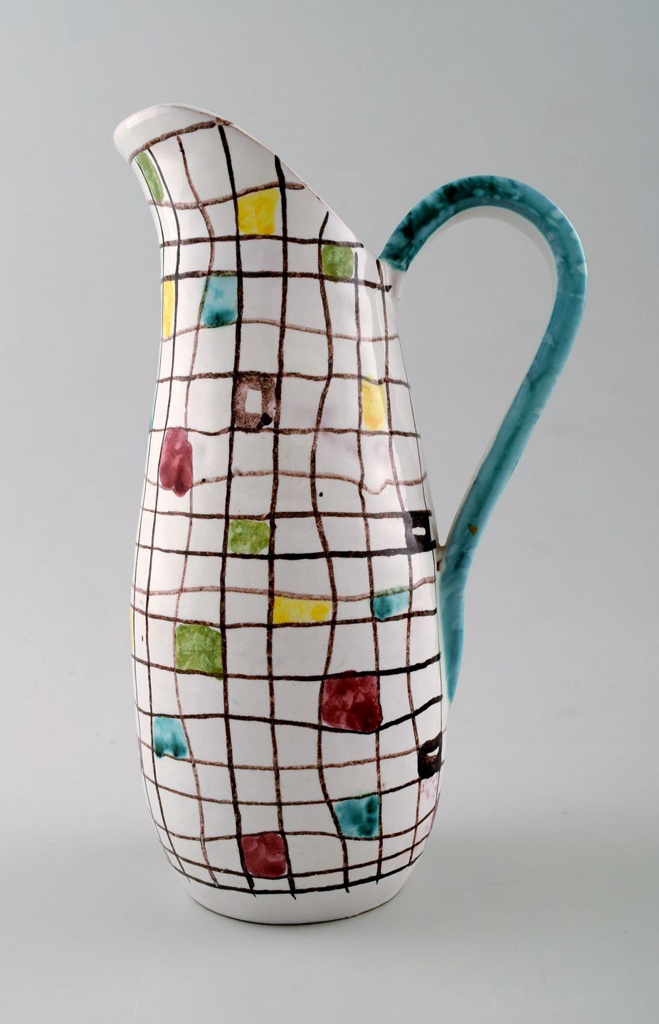 Italian design, ceramic jug with geometric pattern, 1950 / 60s. Stamped, Made in Italy. Measures: 21 cm. X 13 cm. In perfect condition.