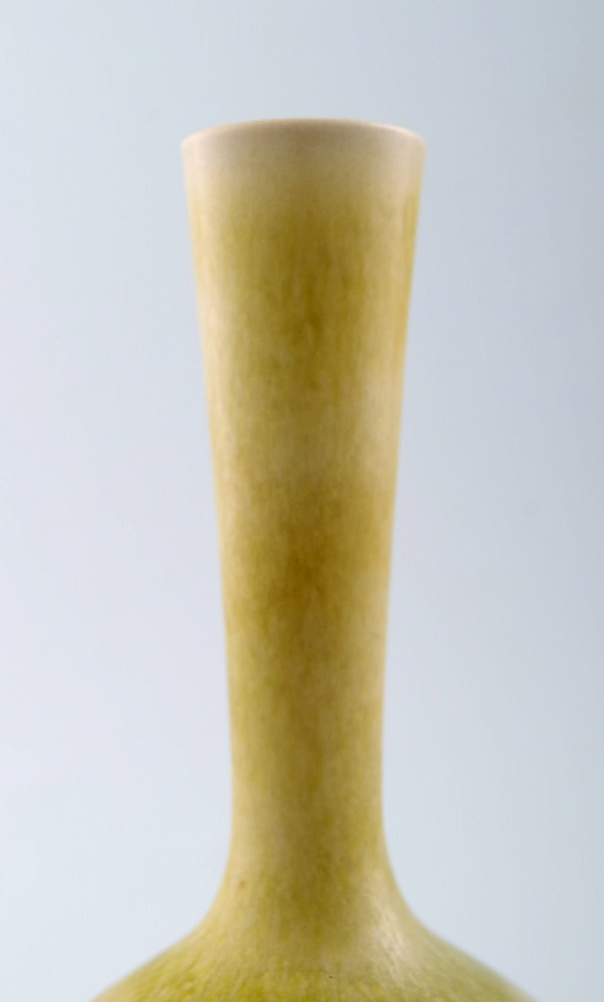 Berndt Friberg Studio keramikvase. Moderne svensk design. Unika, håndlavet. Fantastisk glasur i gule nuancer. Perfekt stand. 1. sortering. Måler: 16 x 7 cm.