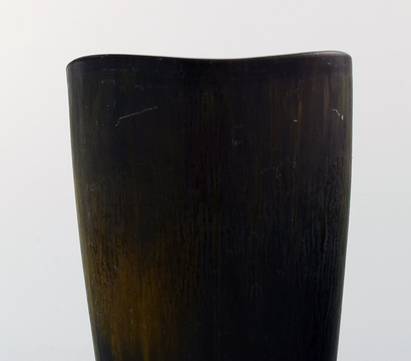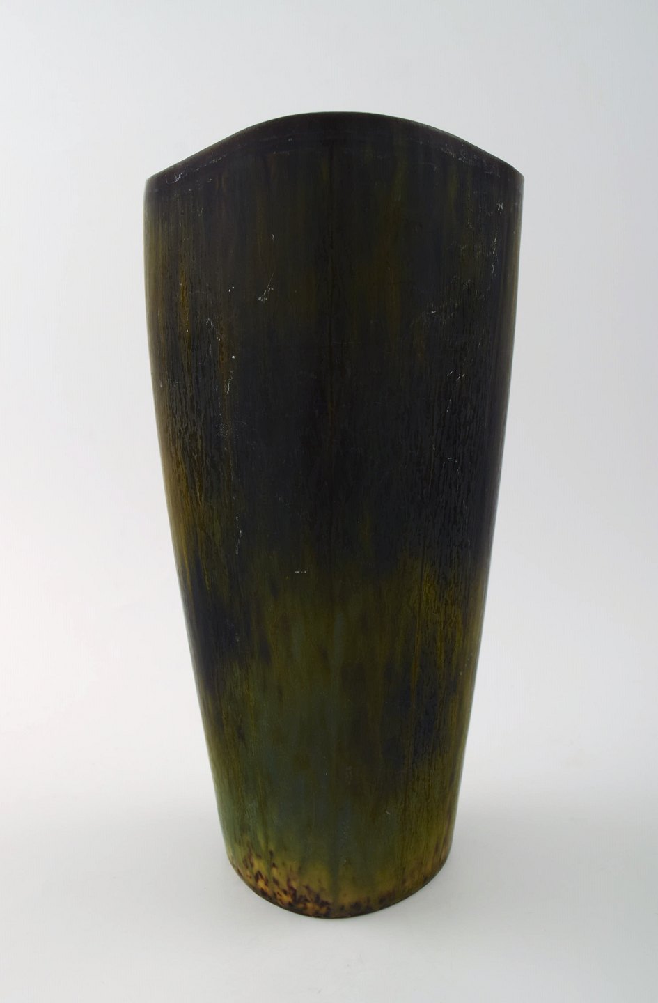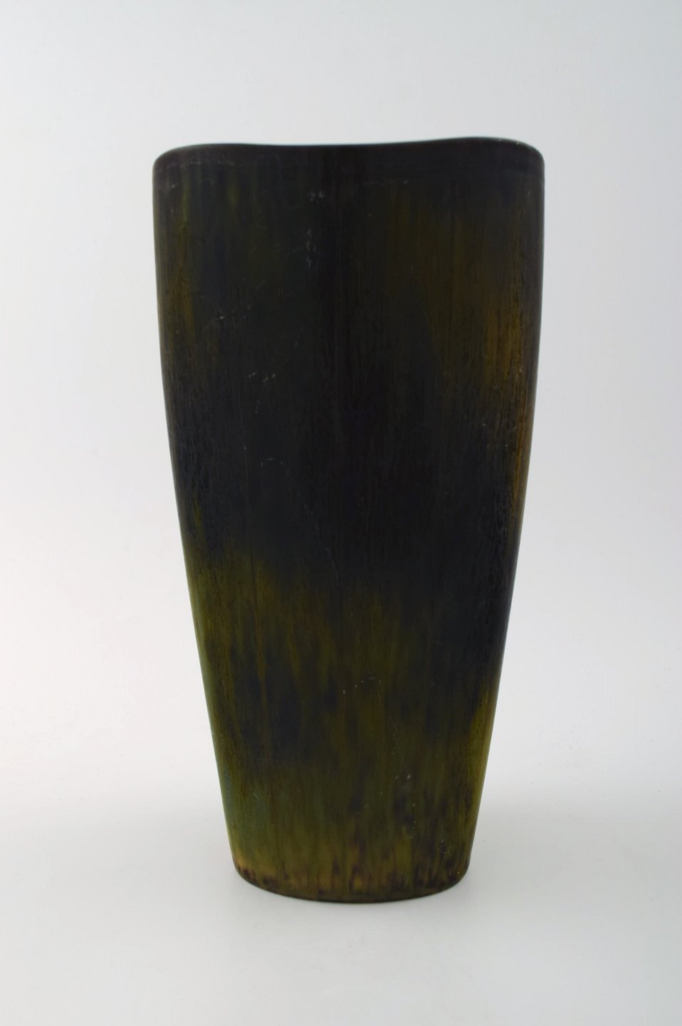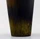 Stor Rörstrand stentøjsvase af Gunnar Nylund. 20 cm. høj. Diameter 11 cm. I perfekt stand. Flot glasur i brunegrønne nuancer. 1. sortering. Stemplet.