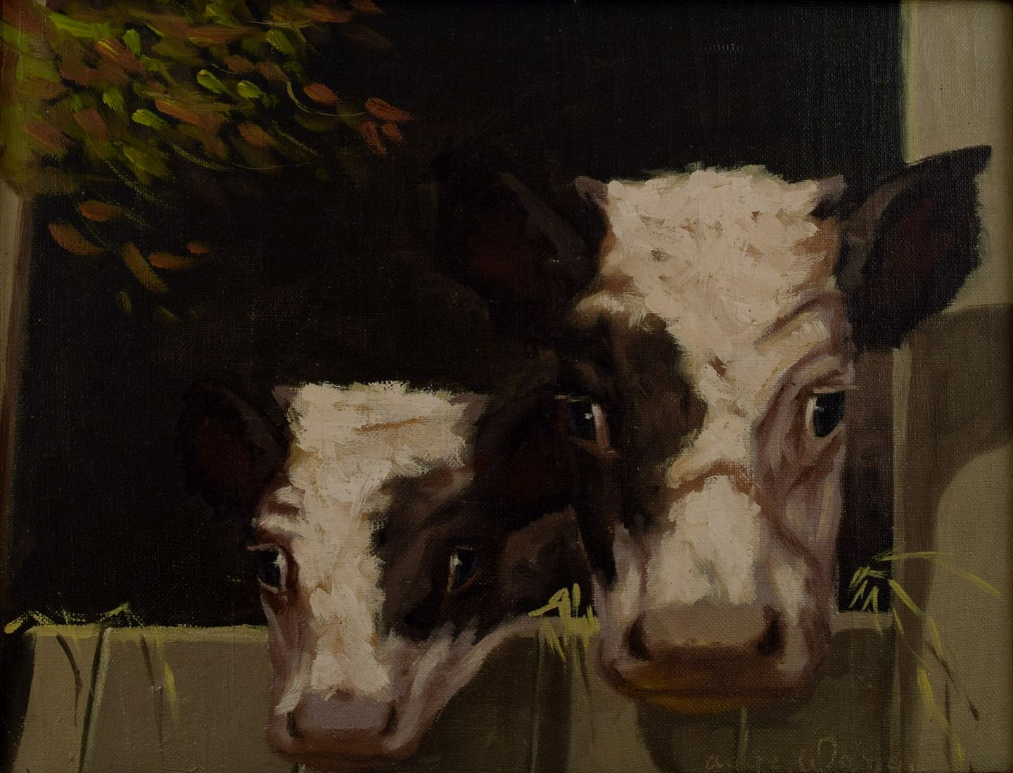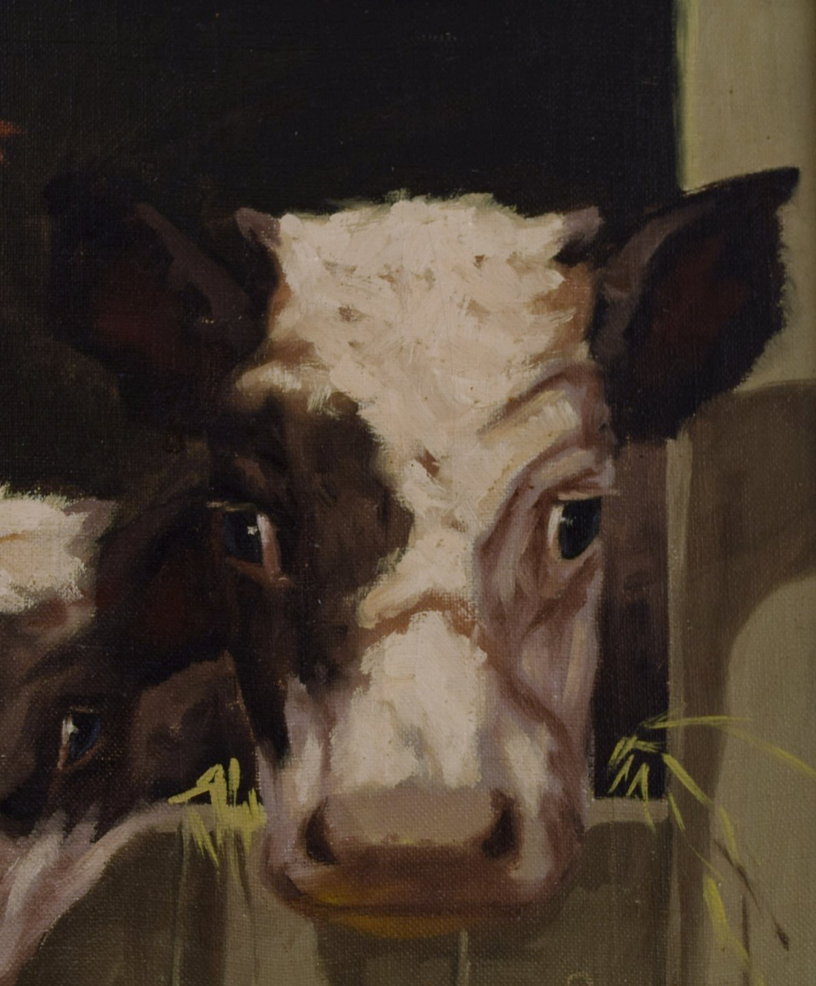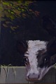 AAGE WANG. (pseudonym for Mark Osmand Curtis). Oil on canvas. Motif with cows in stable door. Signed Aage Wang. Height: 32 cm., Width: 24 cm. Framed (40x32) In perfect condition.