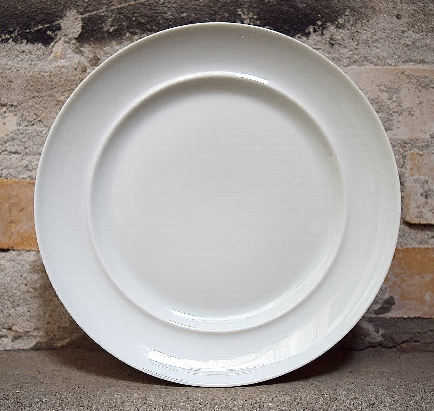 The dinner plate measures 24.5 cm. Deep plate 21.5 cm. X 3 cm.