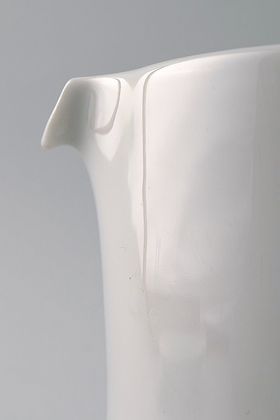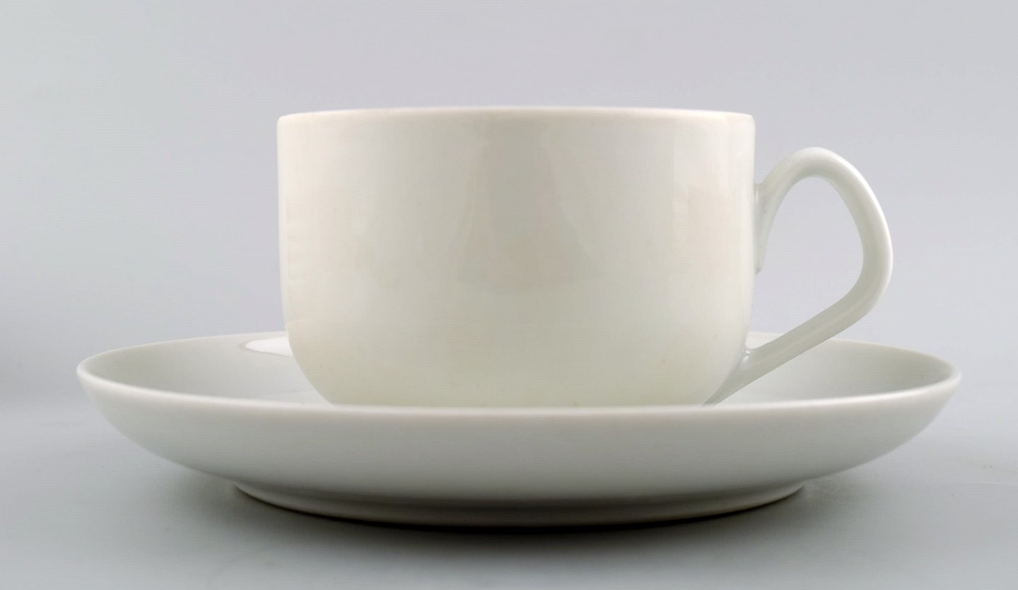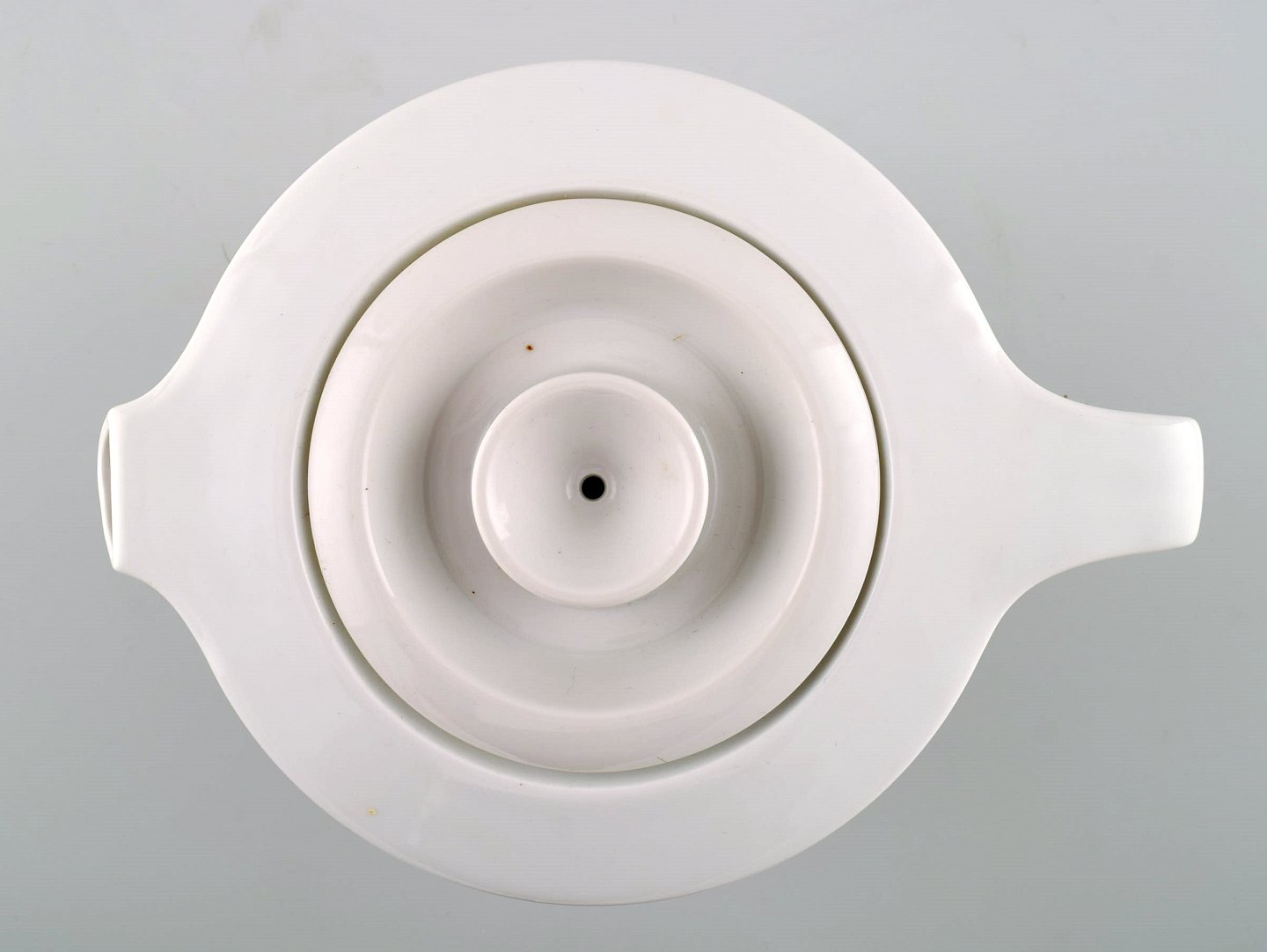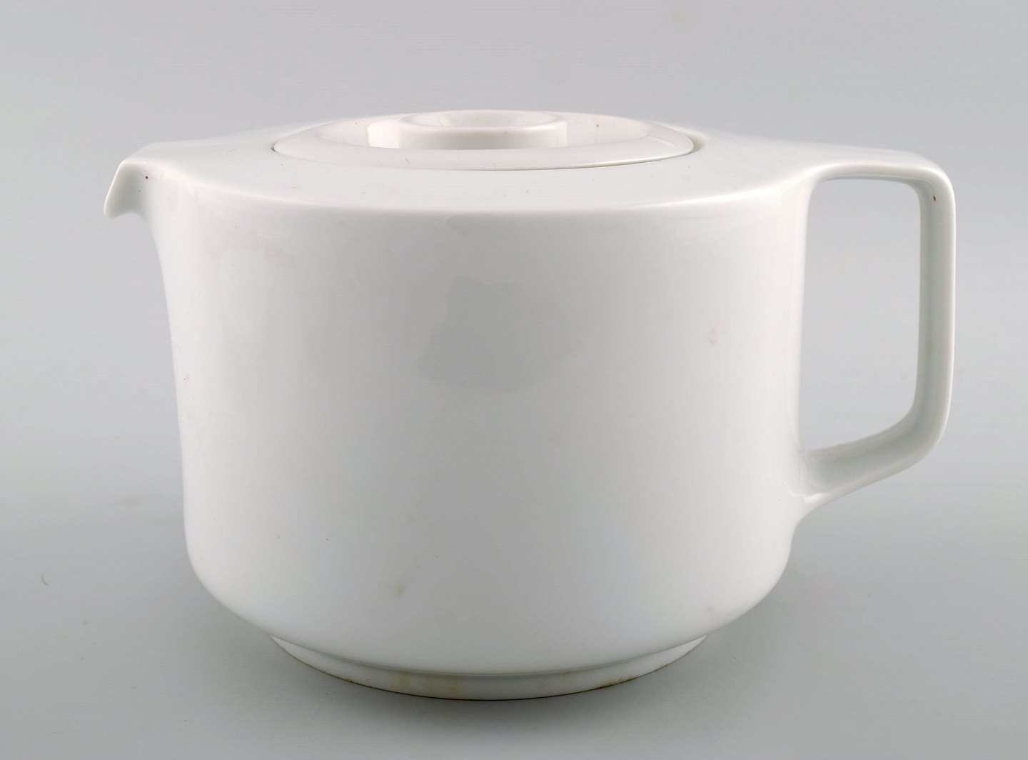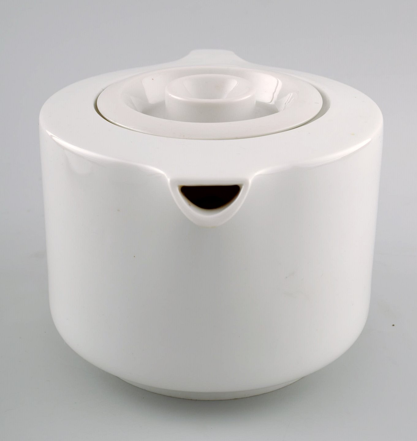 Bing & Grøndahl, B&G, Hvid Koppel, 6 p. teservice. Designet af Henning Koppel. Dekorationsnummer : tekande 475. Tekande måler 21 cm. x 12,5 cm. 1. sortering. Perfekt stand.