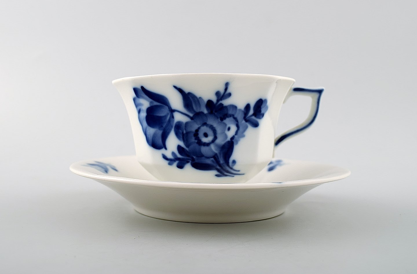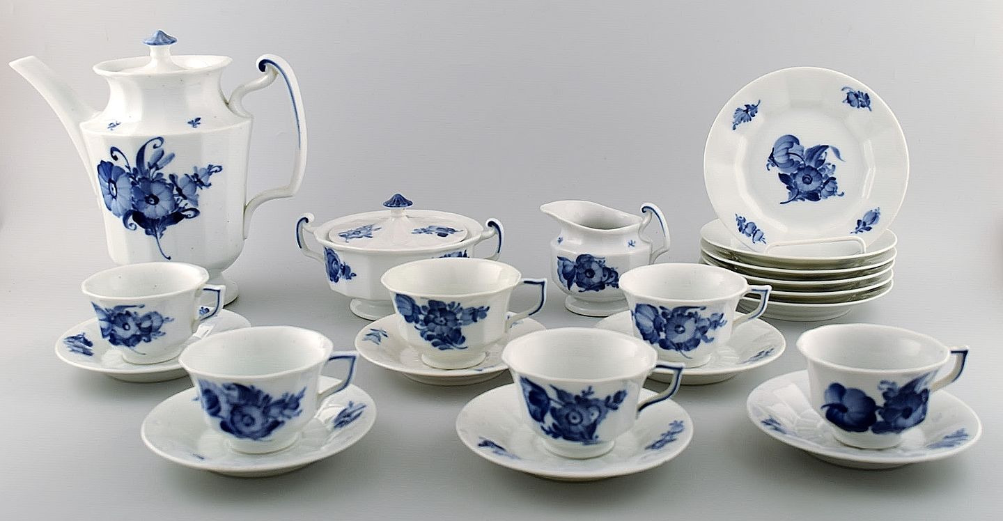 6 personers Royal Copenhagen blå blomst kantet kaffeservice :