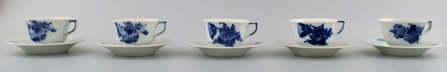5 sæt Royal Copenhagen Blå Blomst Kantet, espressokopper, (moccakopper).