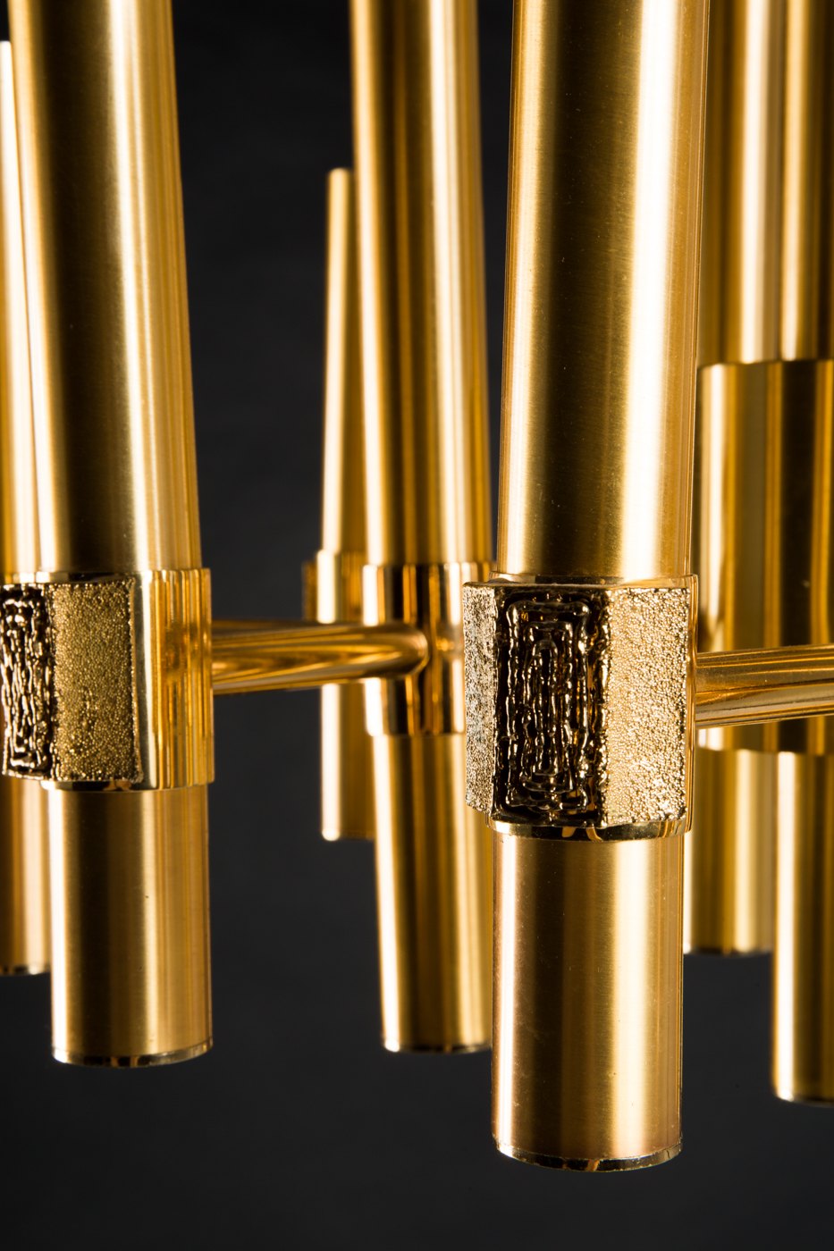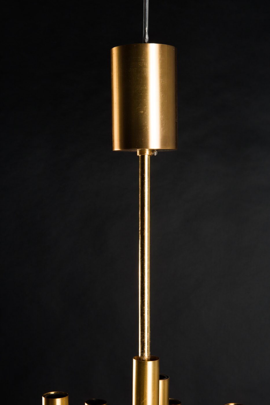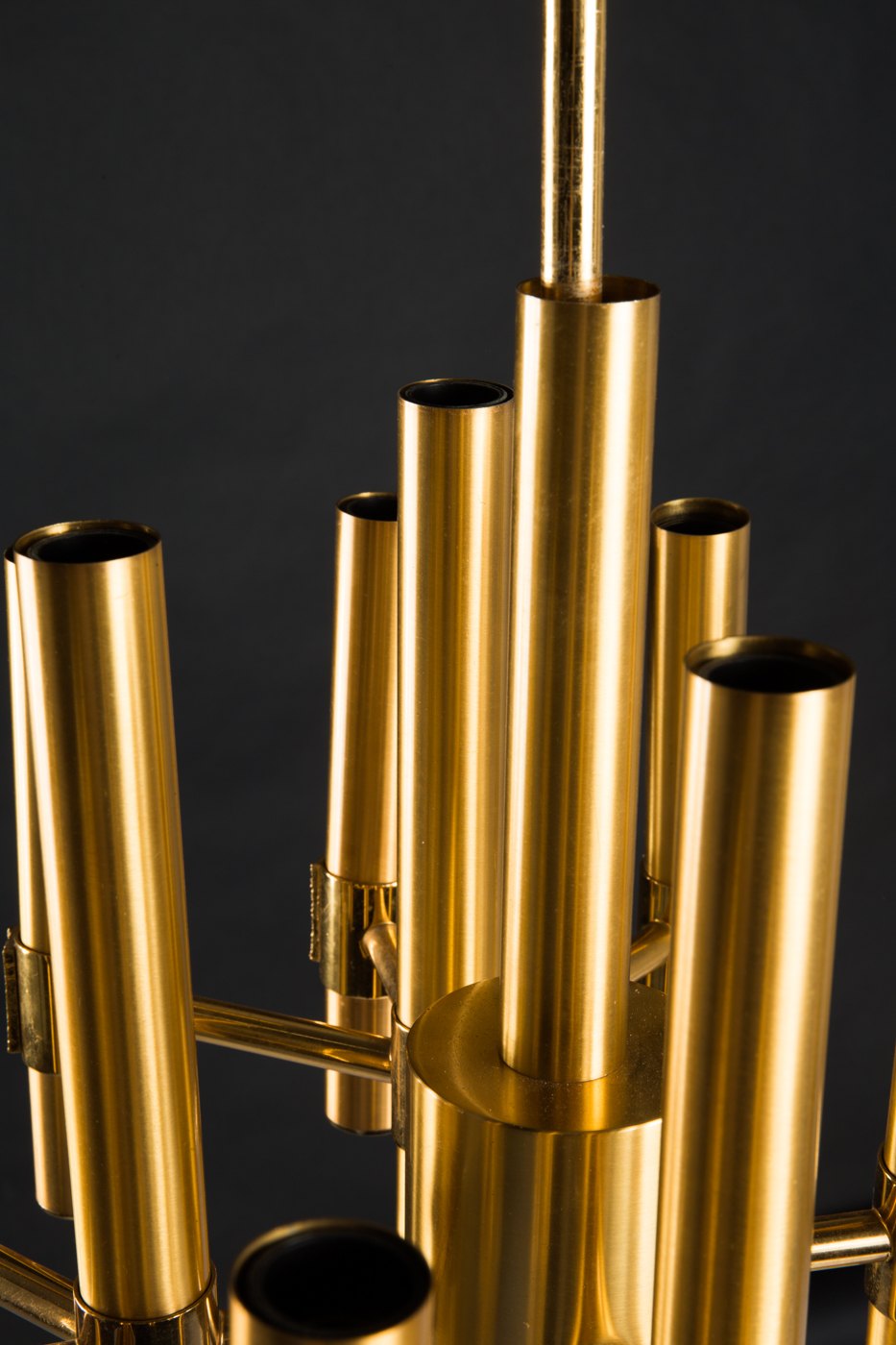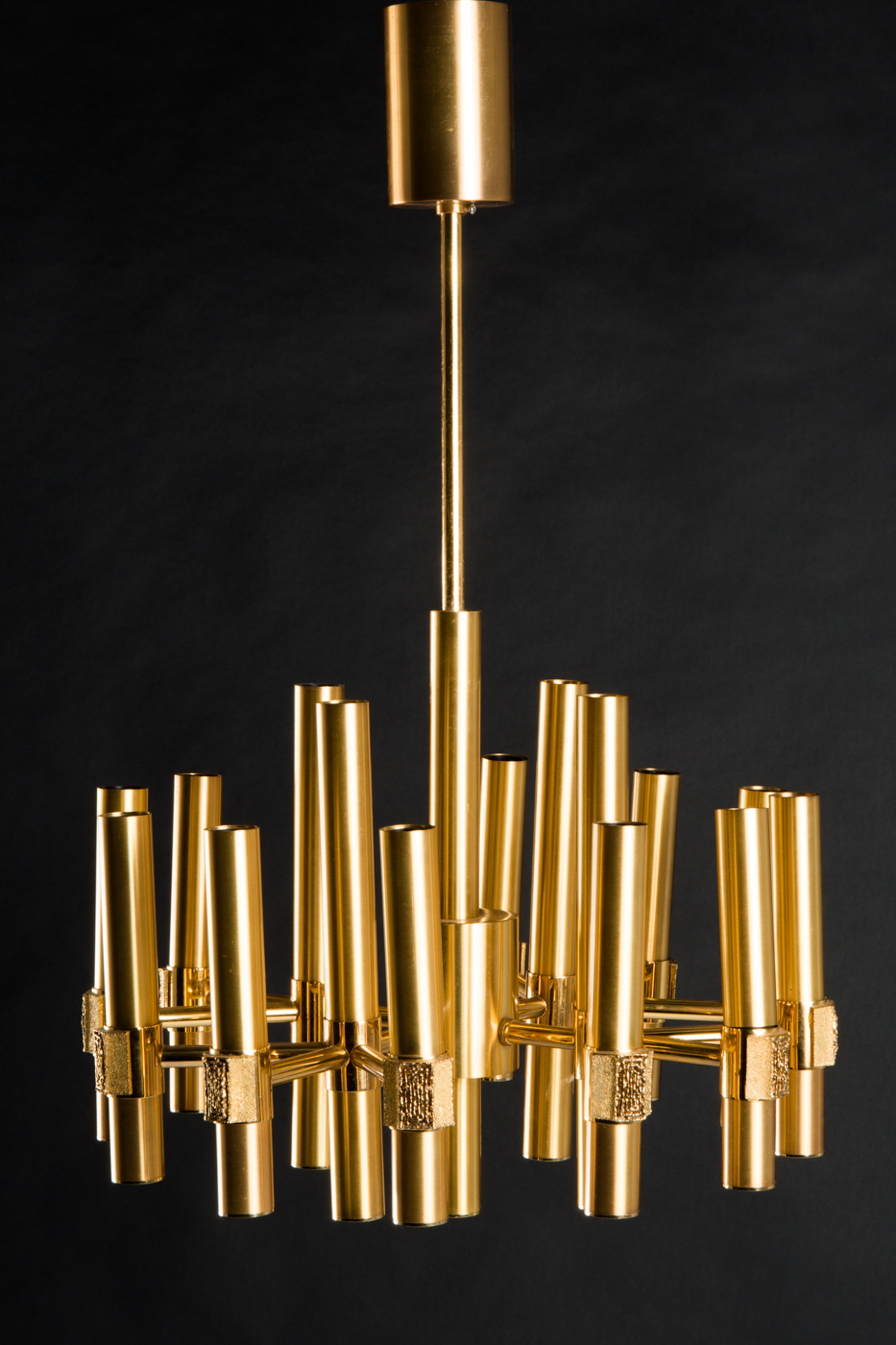 Gaetano Sciolari style: Gold plated brass ceiling lamp, Italy, 1960s / 70s. In perfect condition. Measures: 69 cm. high x 45 cm. wide.