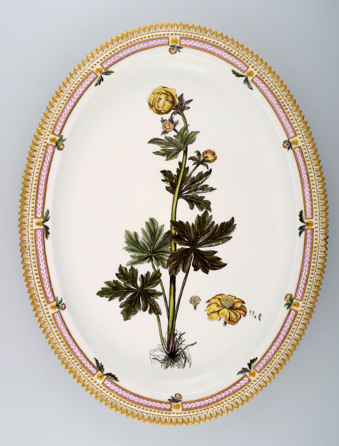 Royal Copenhagen flora danica stort ovalt serveringsfad #20/3520. Måler 47 cm. x 37 cm. 1. sortering, perfekt stand. Juliane Marie stempel, tidligt 1900 tallet.