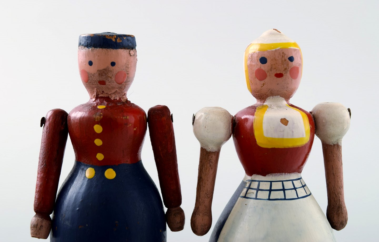 Sjældent hollænderpar, mand og kone, af Kay Bojesen (1886-1958), bemalet træ. Ustemplede. Højde 8 cm. Fremstår med lettere slitage.