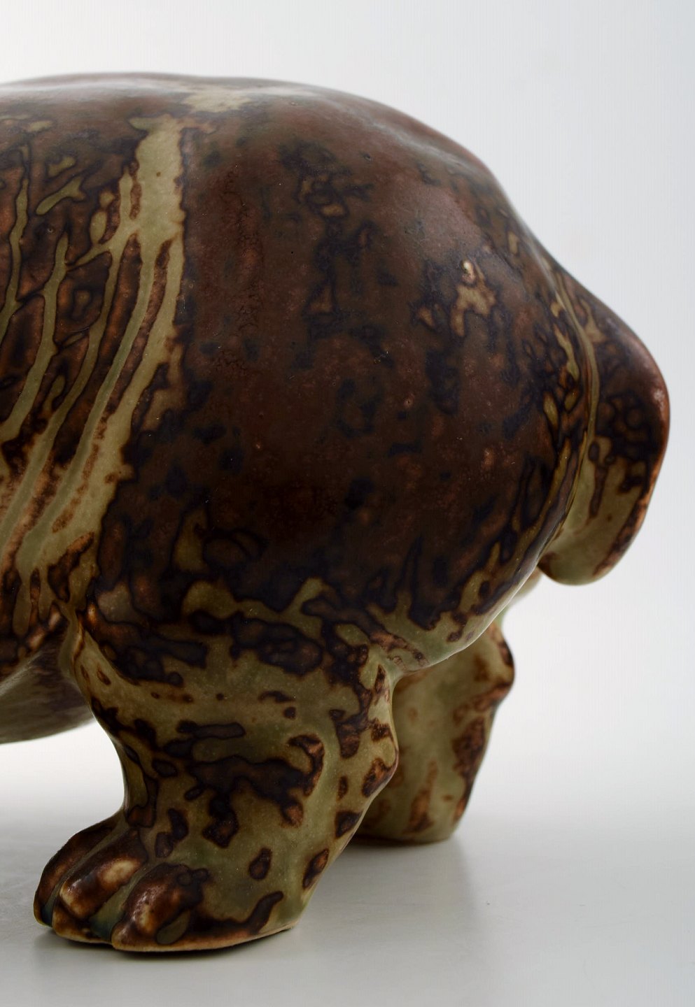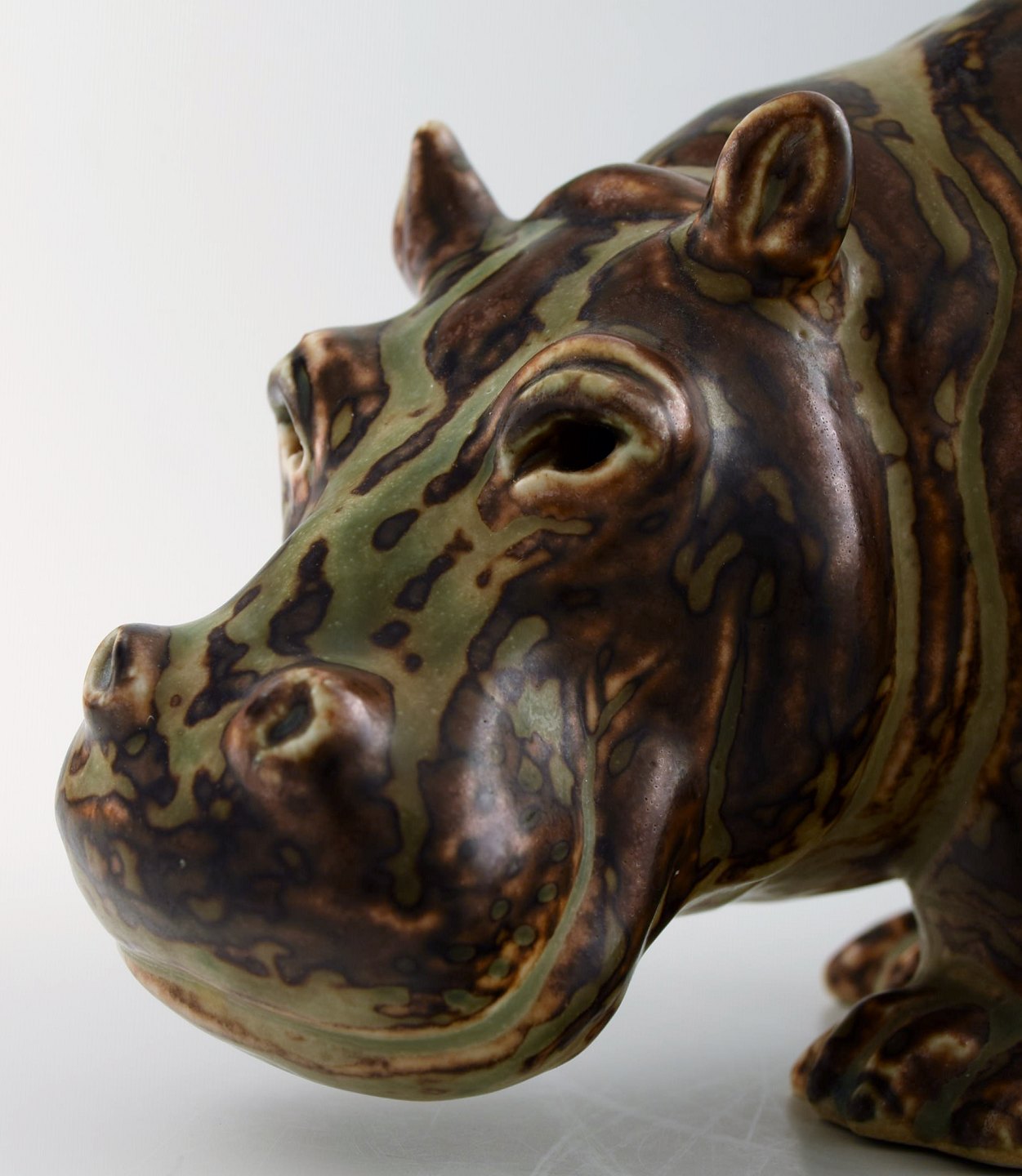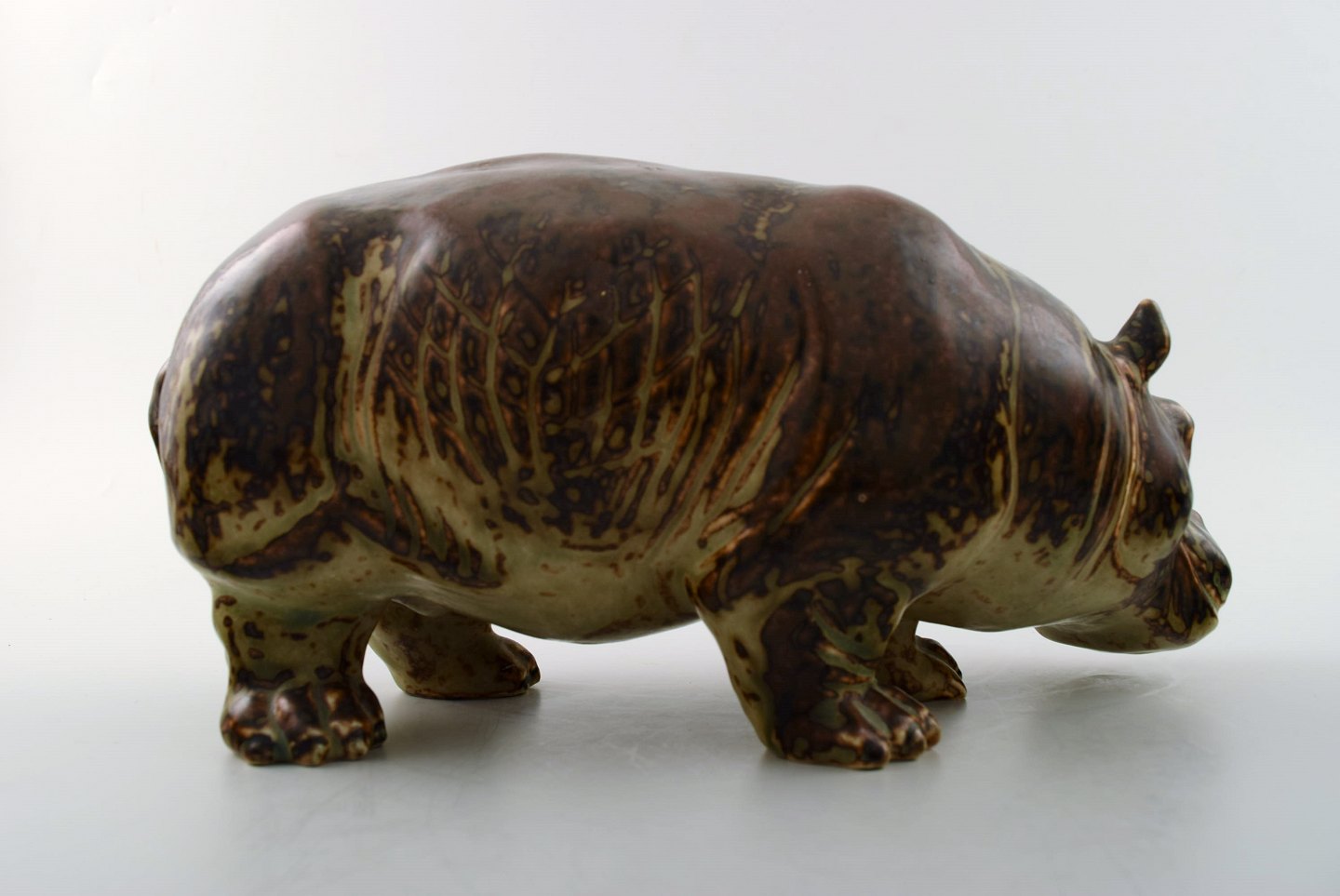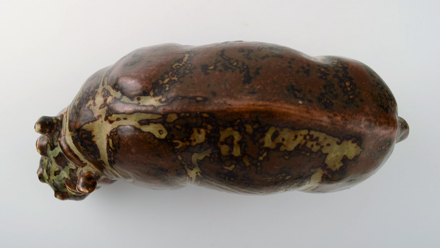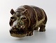 Royal Copenhagen. Knud Kyhn. Figure in stoneware in the form of a 'Hippo' No. 20182. Signed KK and with the three blue waves, model number 20182. 1st. factory quality. Length 28 cm. X 13 cm. high.
