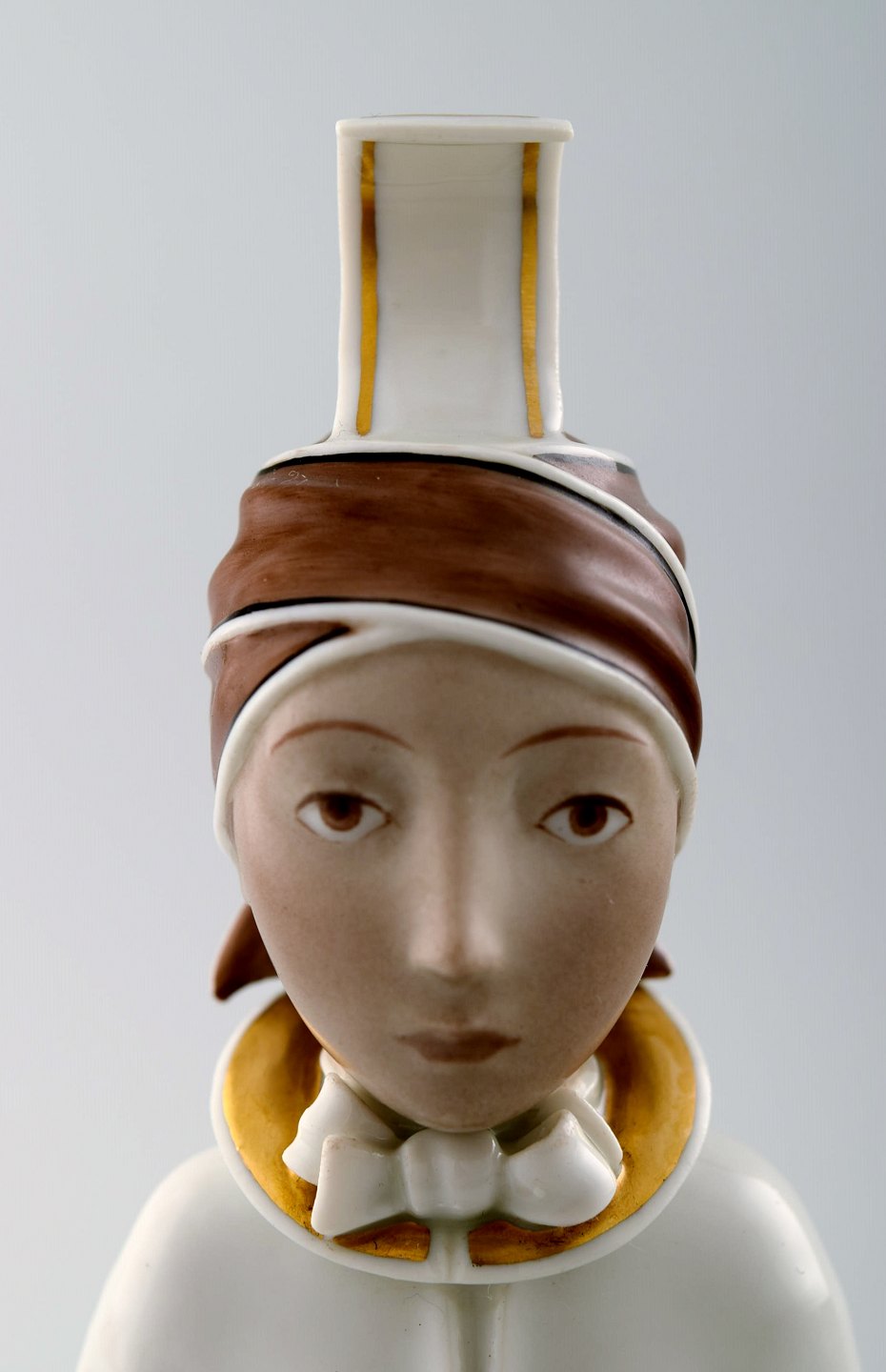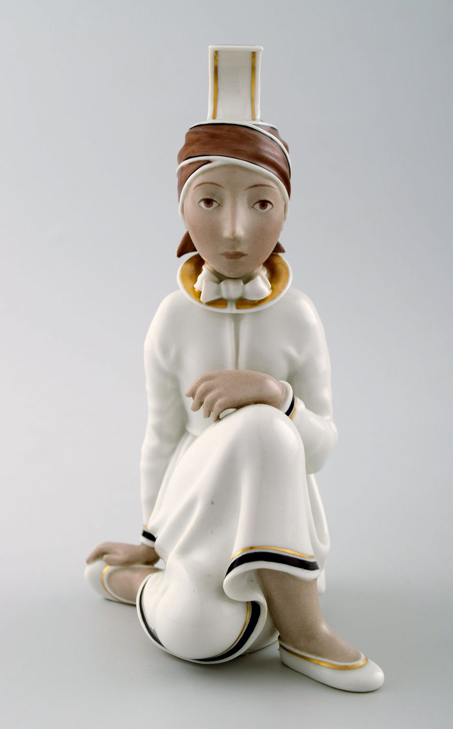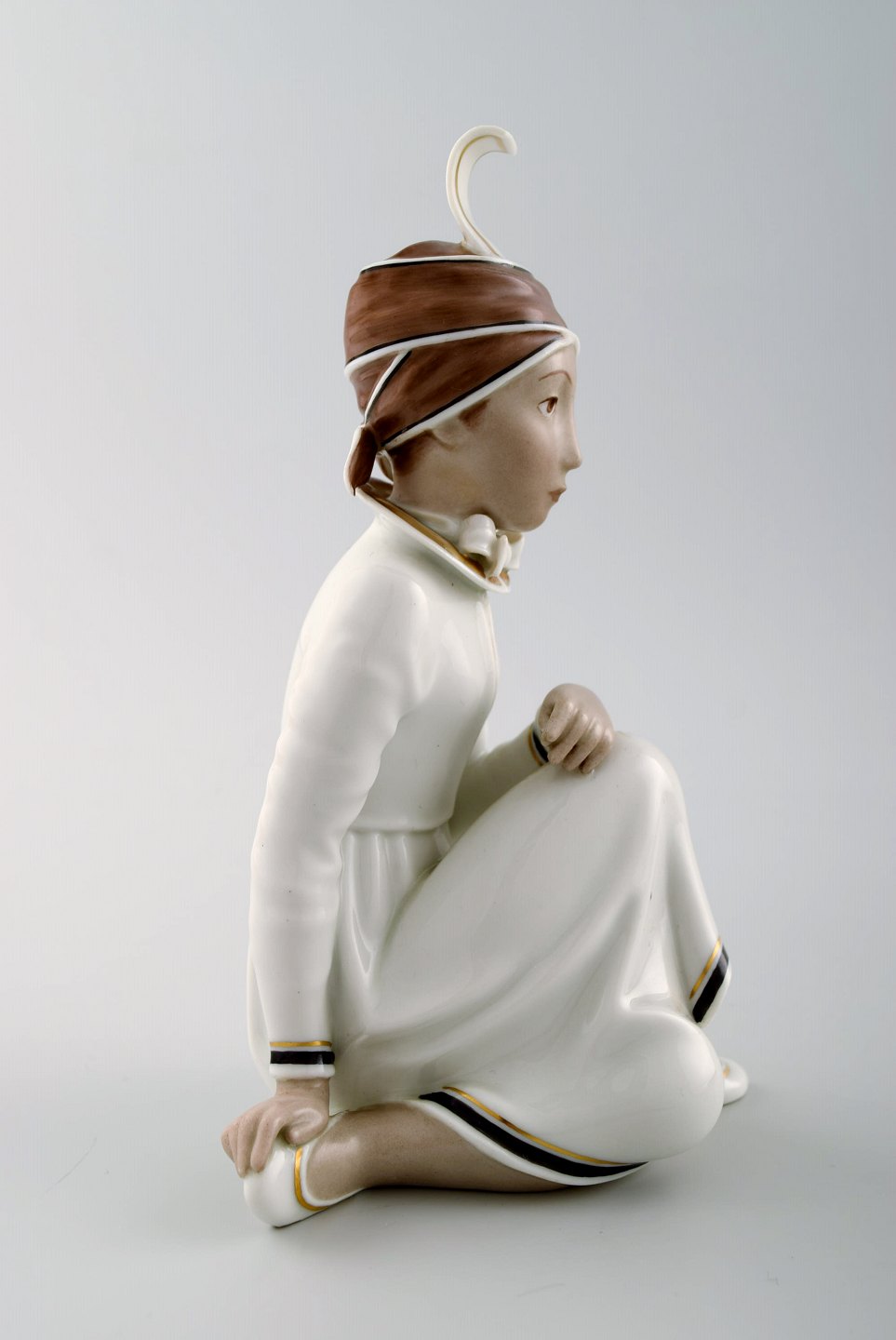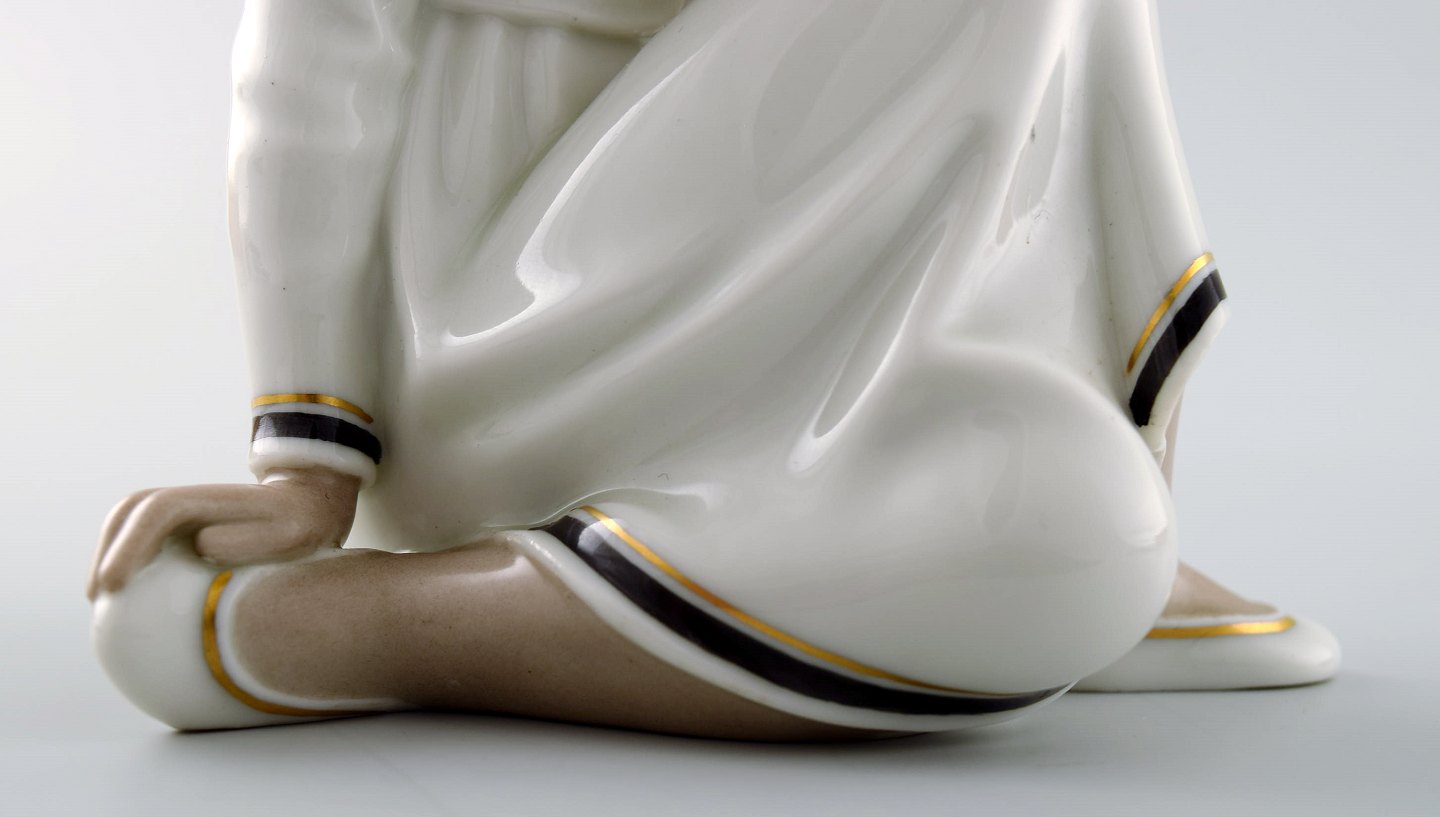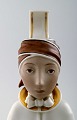 Rare Arno Malinowski for Royal Copenhagen. Seated girl with headwear. Overglaze. Number 12463. Juliane Marie stamp. Height 16 cm. 1st. factory quality. In perfect condition.