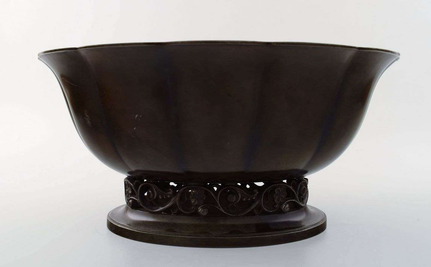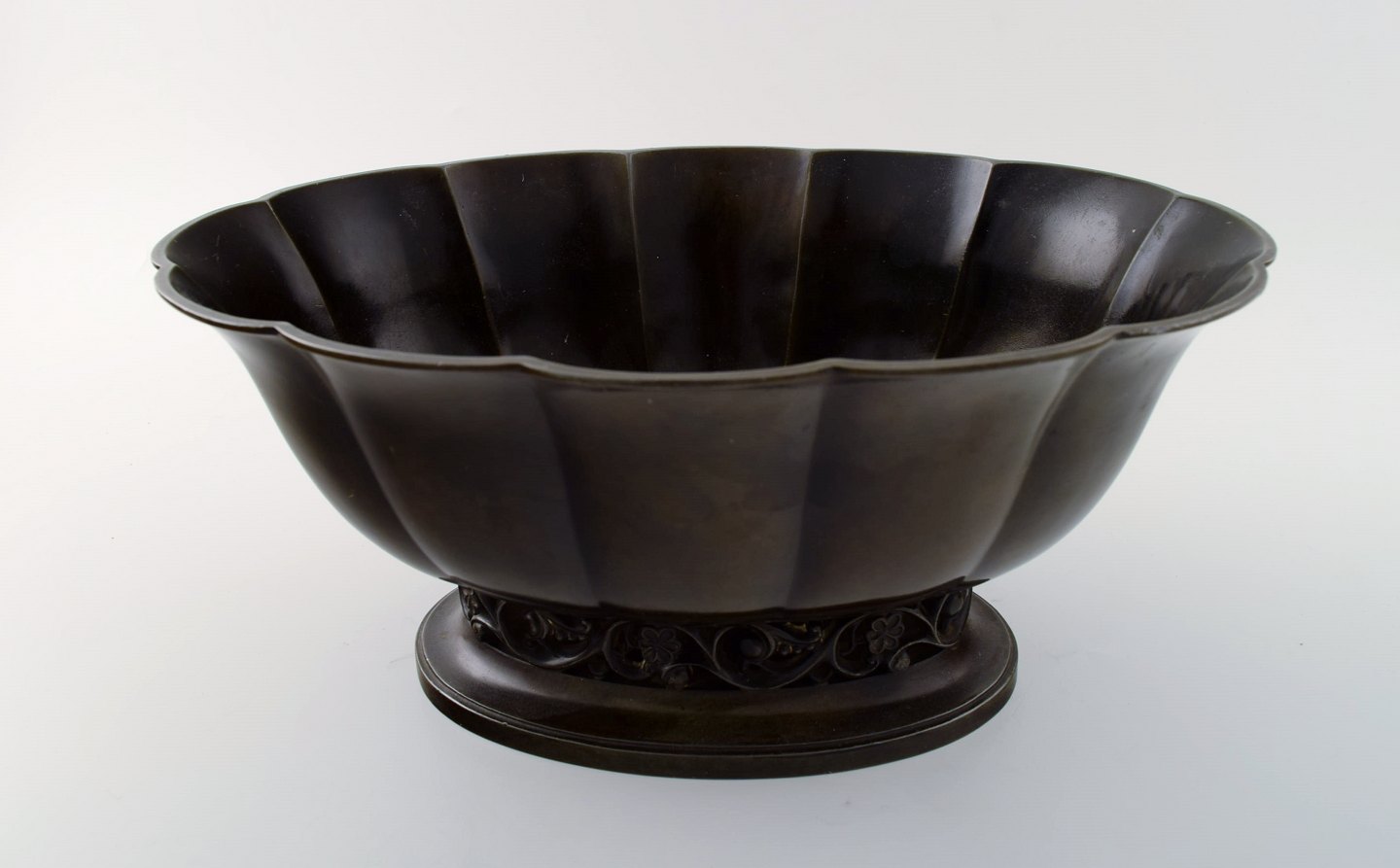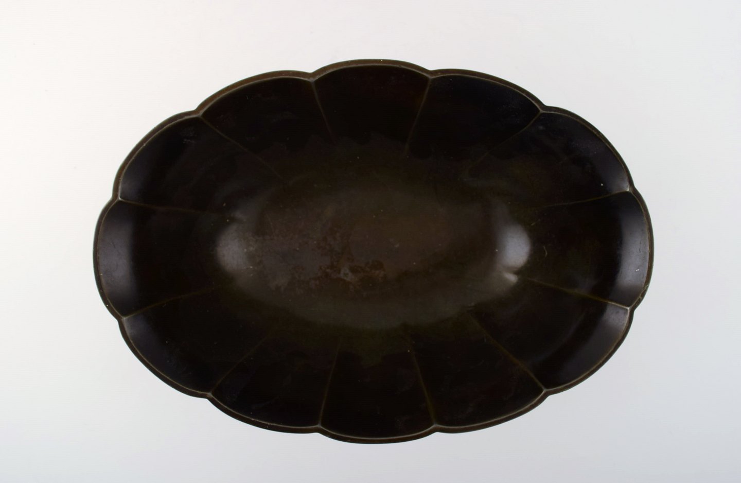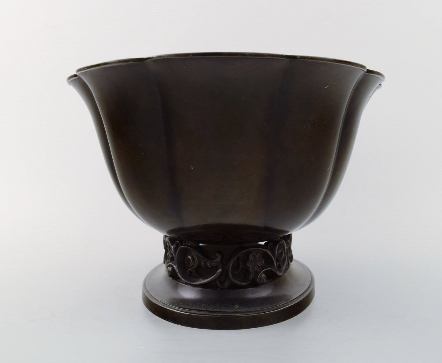Just Andersen art deco diskometal jardiniere/opsats, nummer 164. Stemplet. I flot stand. Måler 32 x 15 cm.