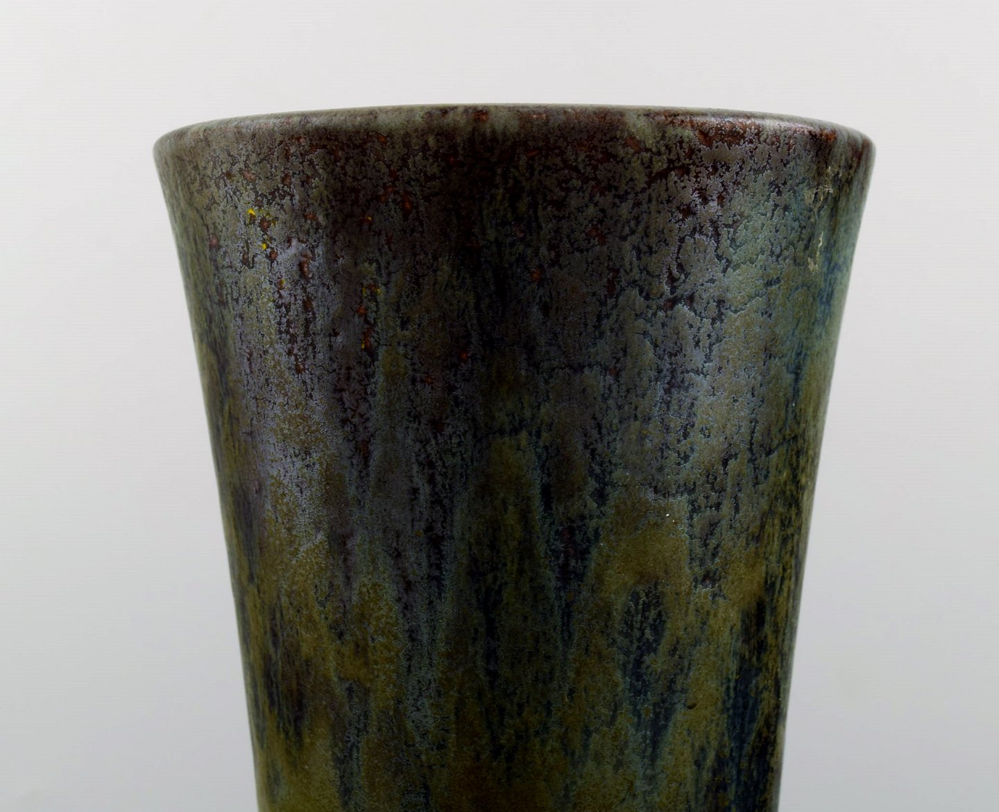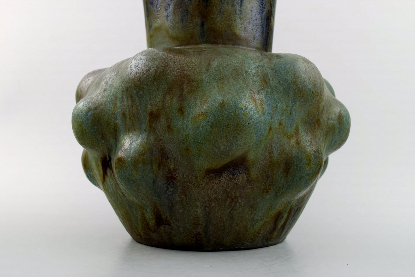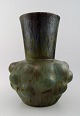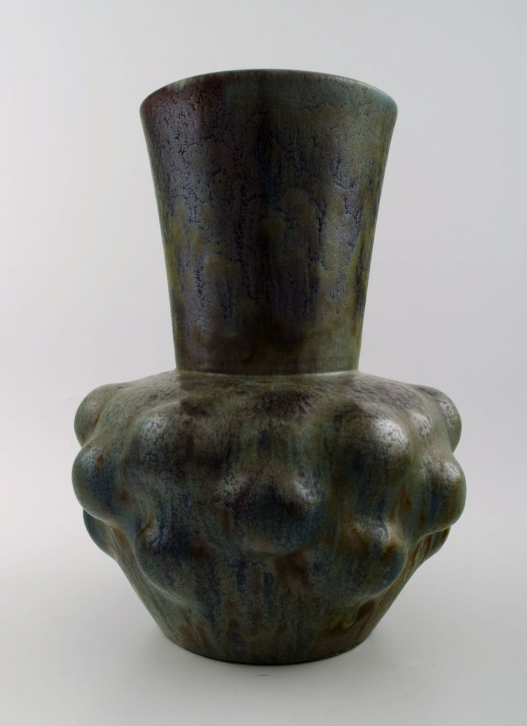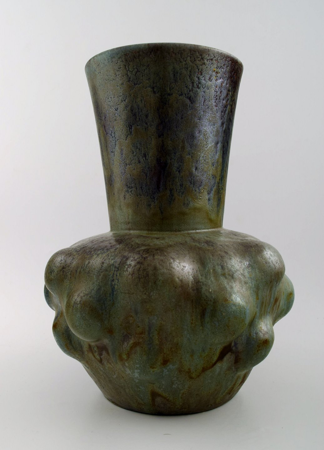 Marcel Giraud for Vallauris, fransk vase i keramik, håndmalet i blå, grønne og brune nuancer. Stor flot vase i organisk form. 1960/60´erne. I perfekt stand. Måler 31 cm. x 22 cm. Stemplet.