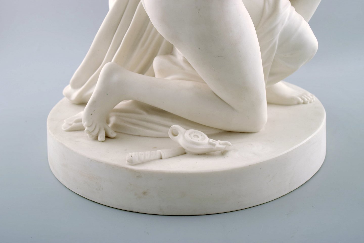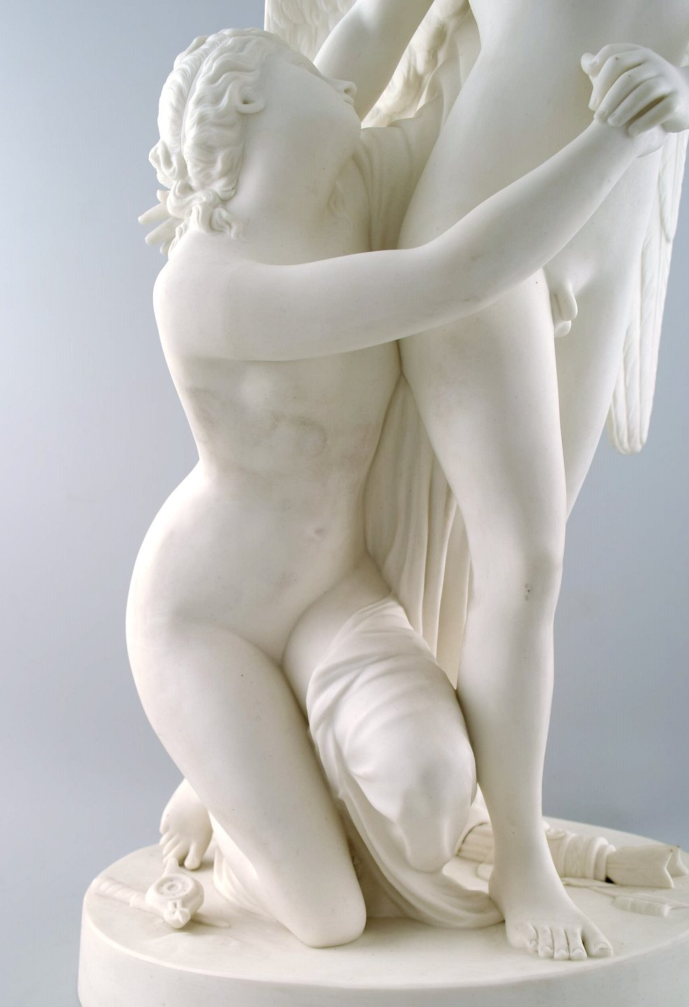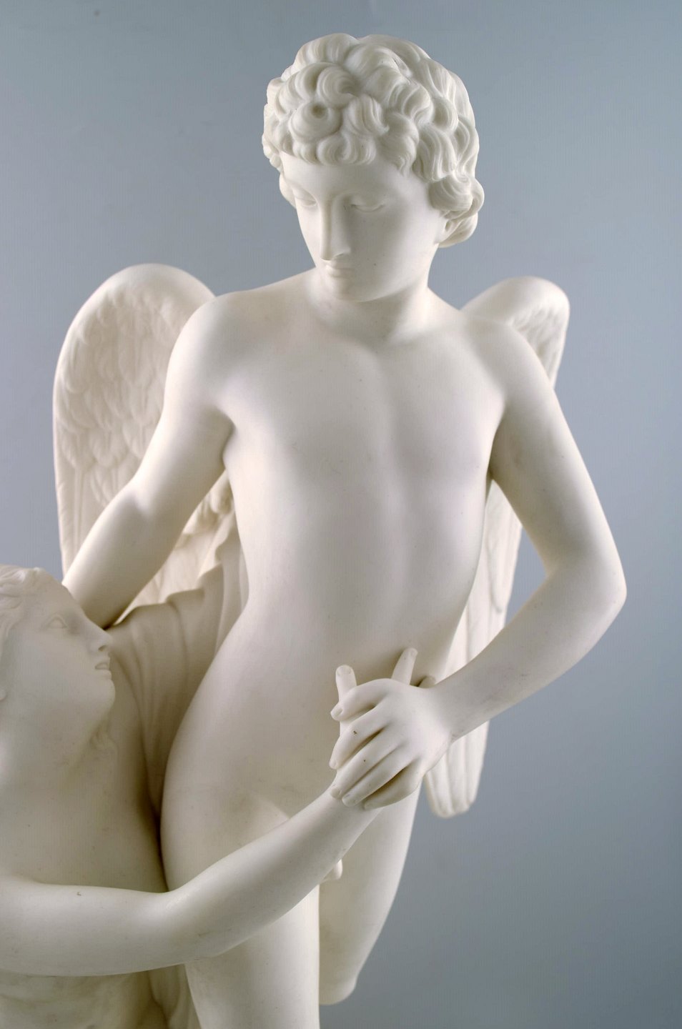 Klassisk skulptur i biscuit på sokkel, Gustavsberg, sent 1800-tallet. Måler 48 cm. x 25 cm. I perfekt stand. Stemplet. Gustavsberg 91.