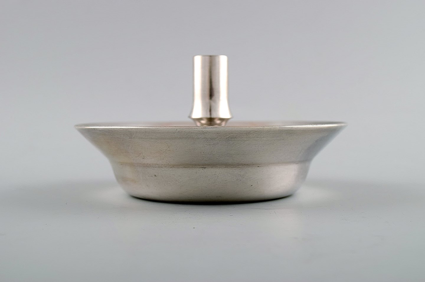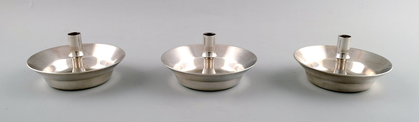 Jens H. Quistgaard. Dansk design, 1960´erne. Tre lysestager i forsølvet metal. Måler : 12,5 cm. x 6,5 cm. Perfekt stand. Stemplet.