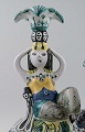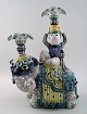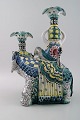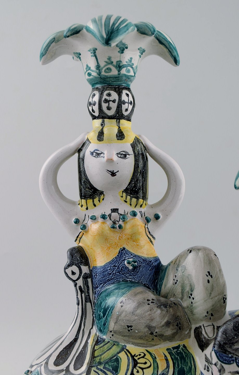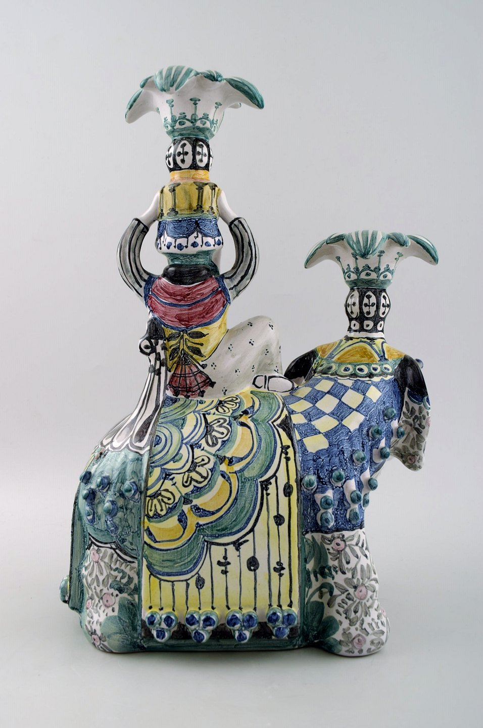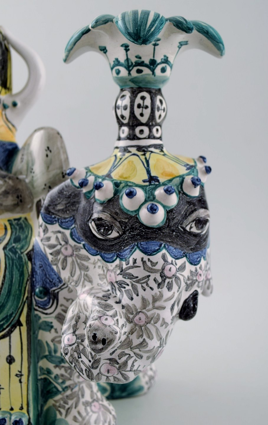Bjørn Wiinblad, 1918-2006 : Unika Figurstager i form af Kong Salomon og Dronningen af Saba ridende på elefanter, af glaseret keramik.