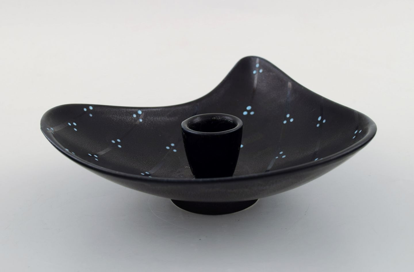 Lillemor Mannerheim for Upsala-Ekeby/Gefle "Pärlor" lysestage, blåglaseret. Stemplet. I perfekt stand. Måler 16,5 x 16,5 x 4 cm.