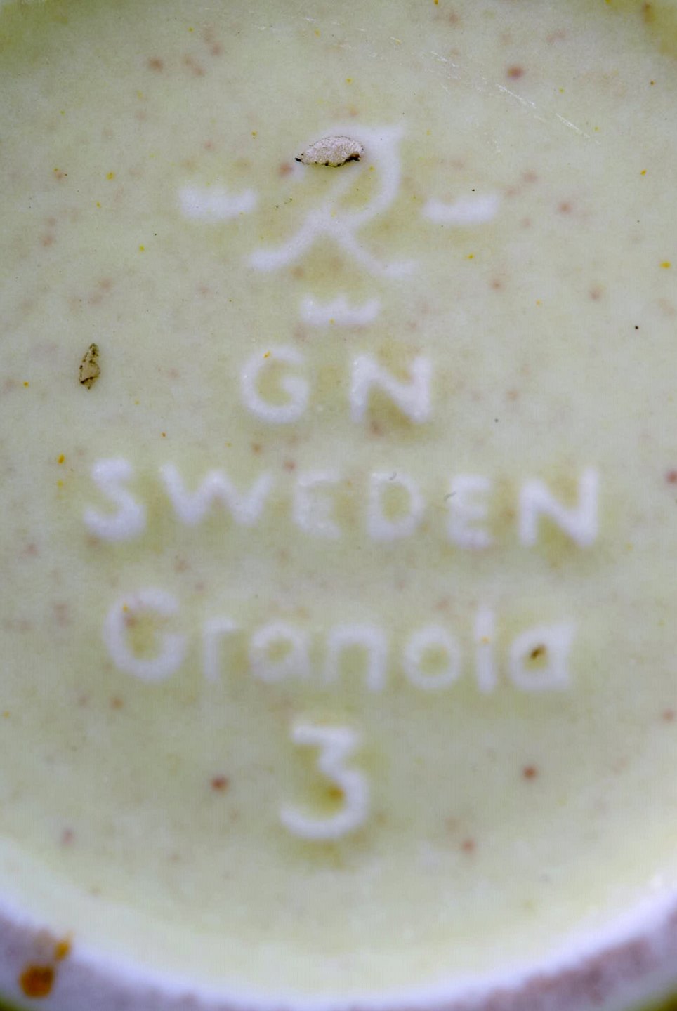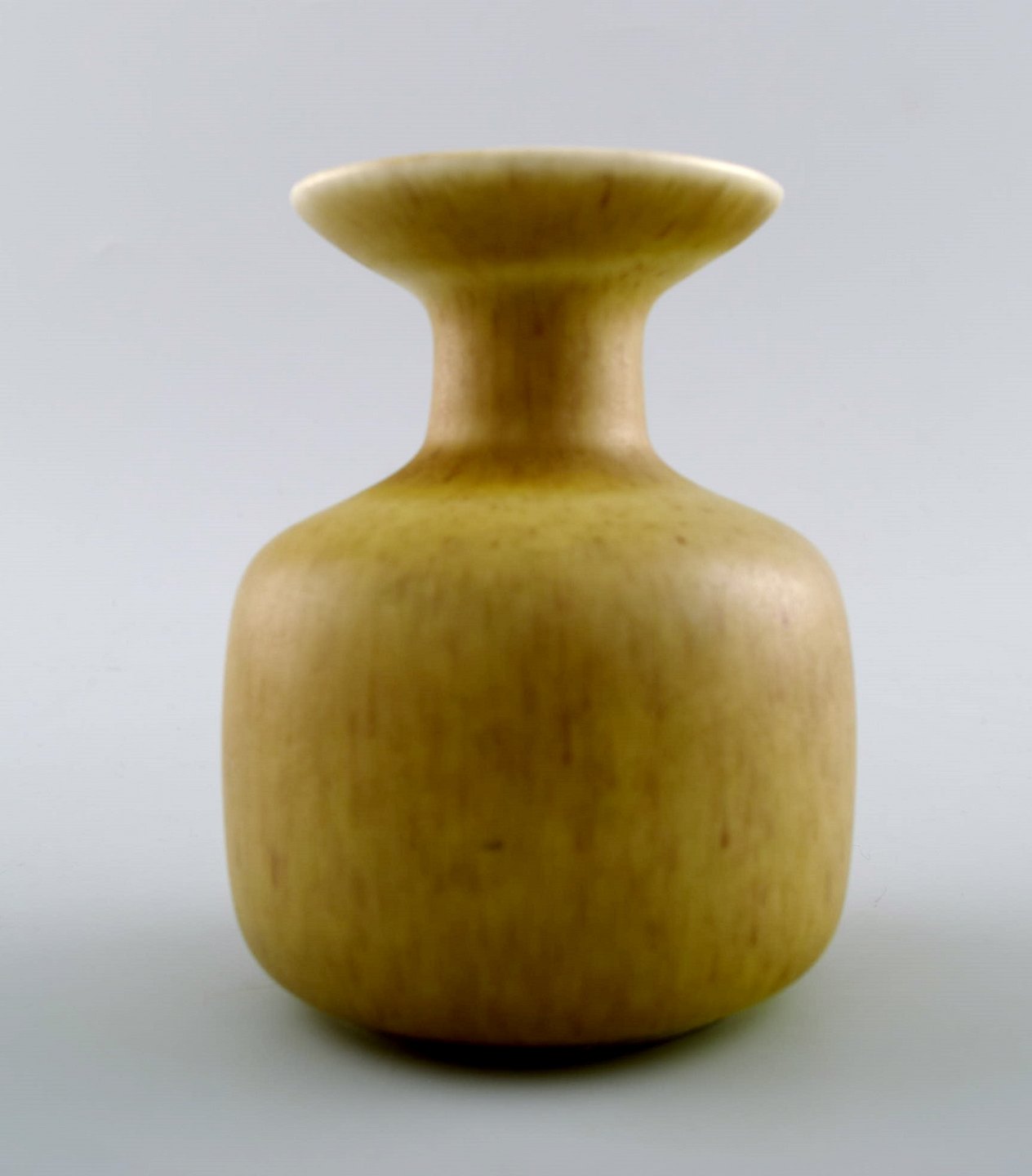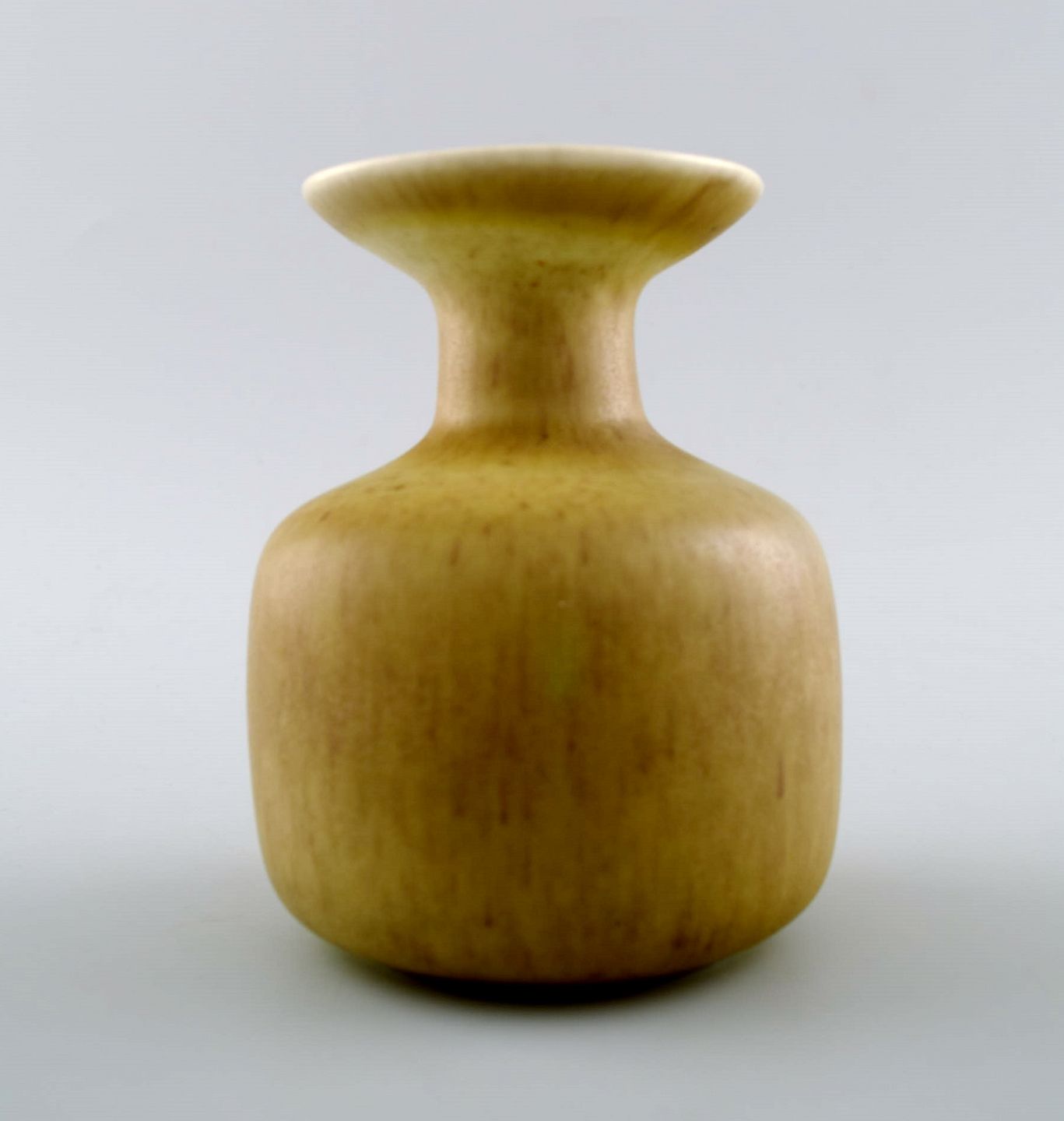 Rörstrand, Gunnar Nylund "Granola" keramikvase. Flot gul glasur !! Måler: 10 x 8 cm. I perfekt stand, 1. sortering.