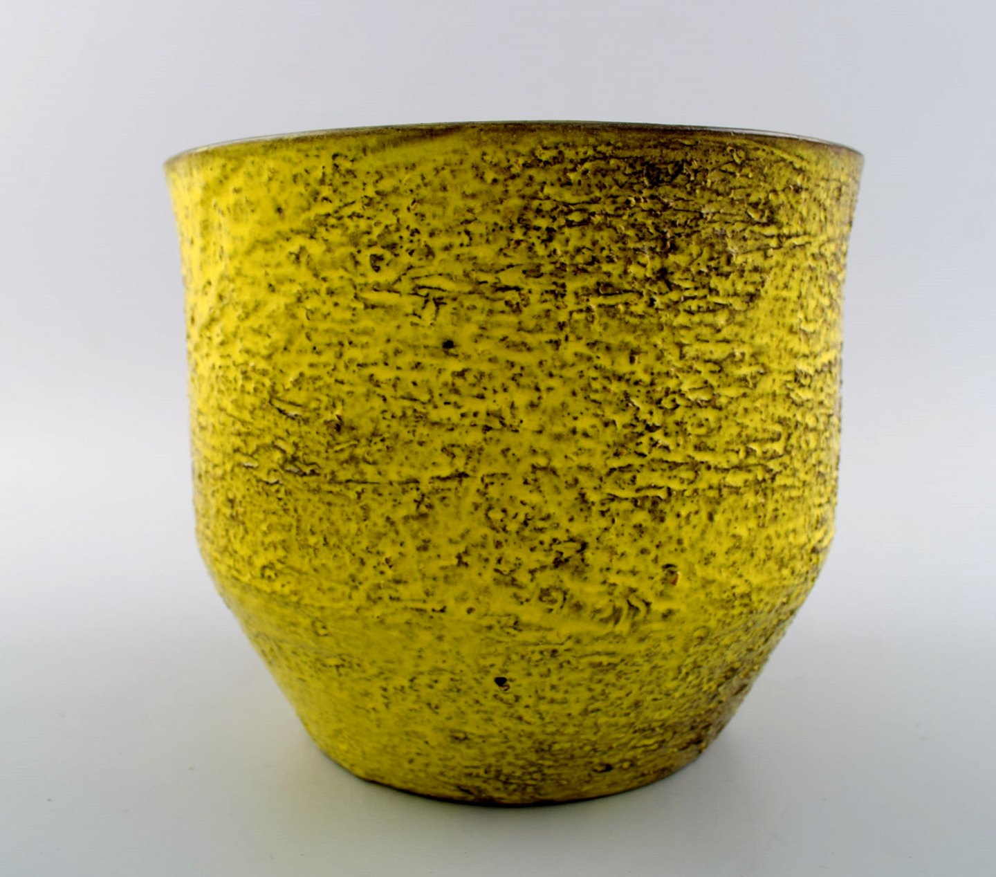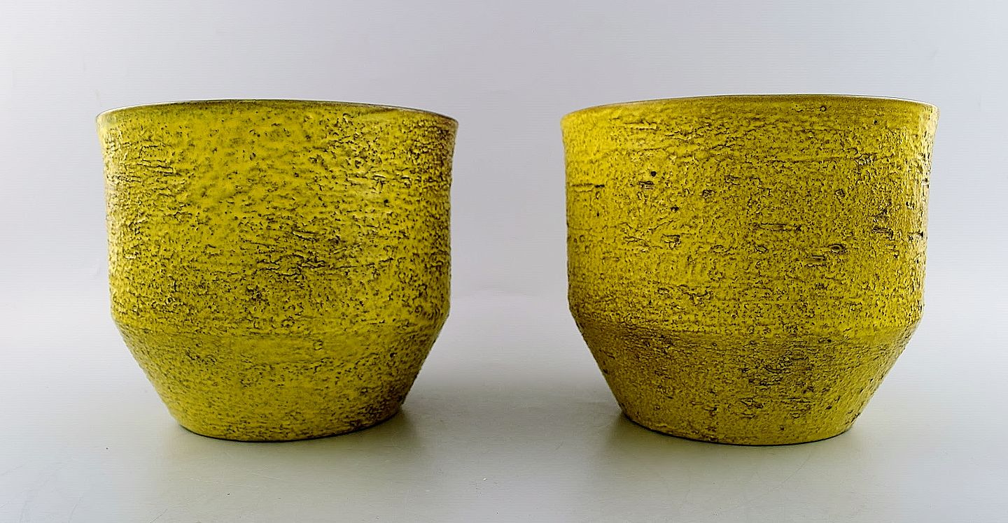Ingrid Atterberg for Upsala-Ekeby a pair of flower pots in strong yellow glaze. In perfect condition. Model Number 2600. 1950 / 60s Measures : 19 x 16 cm. Stamped.