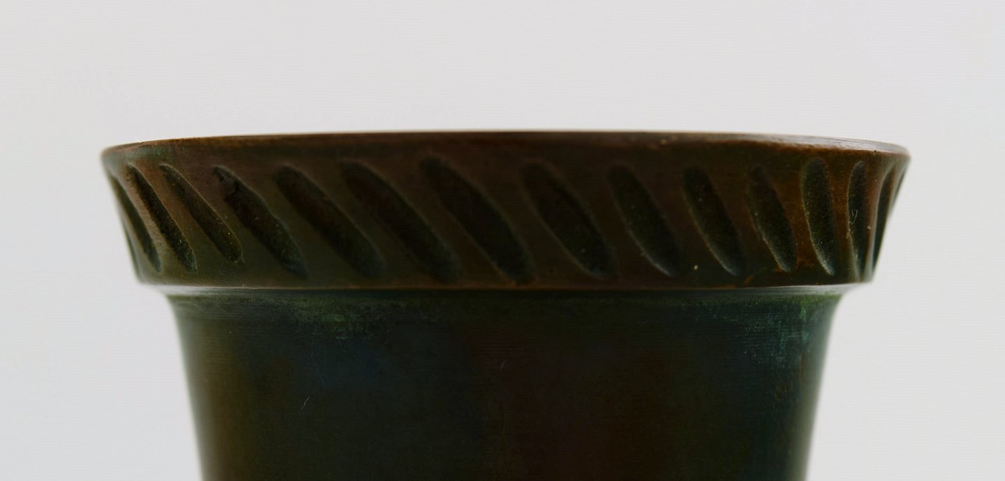 GAB, Sweden Art deco vase, bronze. 1930 / 40s. Measures 17 cm. X 10 cm. Model number 120. In very good condition, beautiful patina.