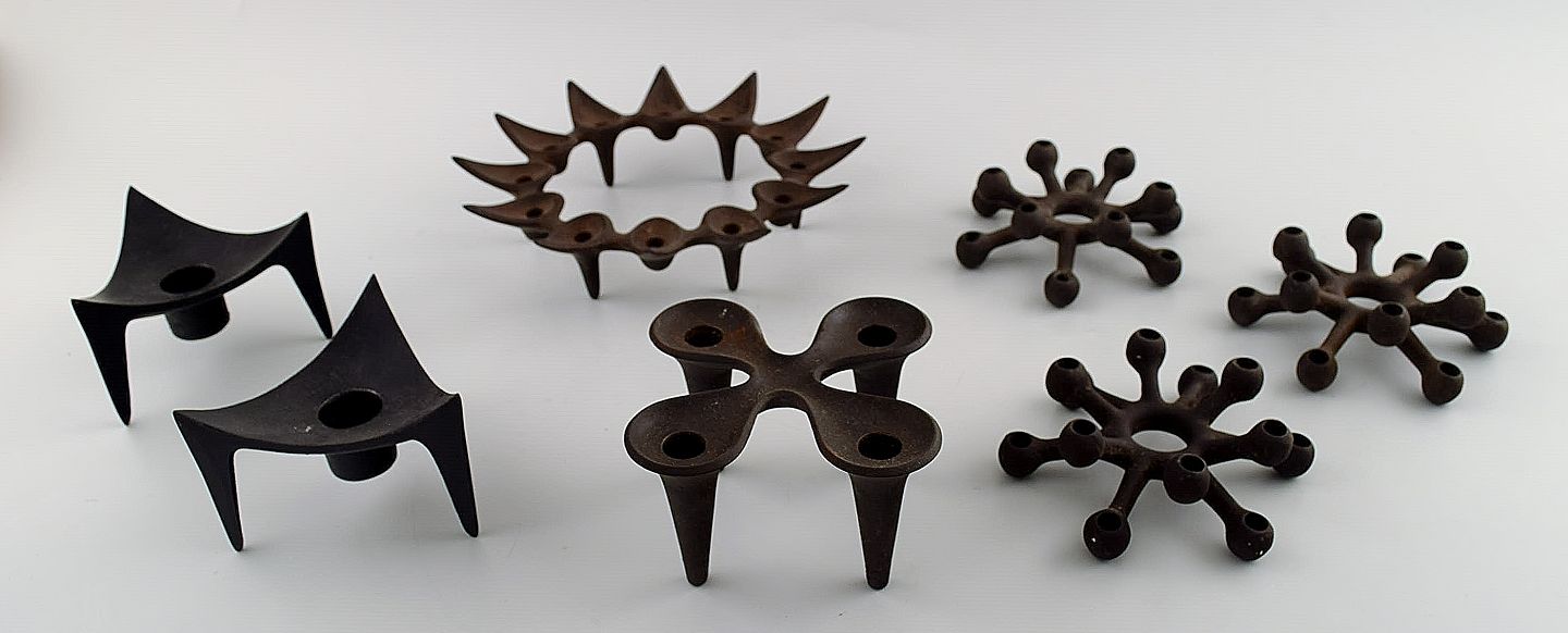 Jens H. Quistgaard, collection of candlesticks in cast iron.