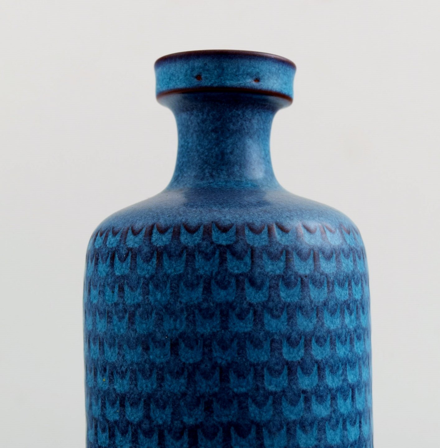 Stor Stig Lindberg (1916-1982), Gustavsberg Studio keramikvase. Glasur i turkise nuancer, ca. 1960. Stemplet med Studiohand. Måler 19 cm. x 8,5 cm. I perfekt stand.