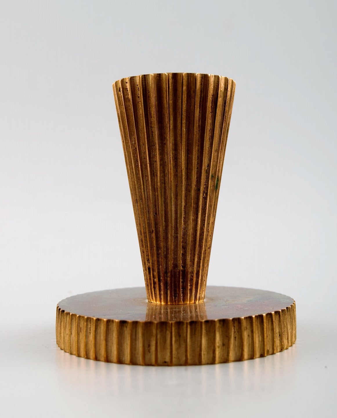 Tinos art deco, et par lysestager i bronze. Danmark, 1940´erne. Ustemplet. I flot stand. Måler : 8,5 cm. x 7,5 cm.