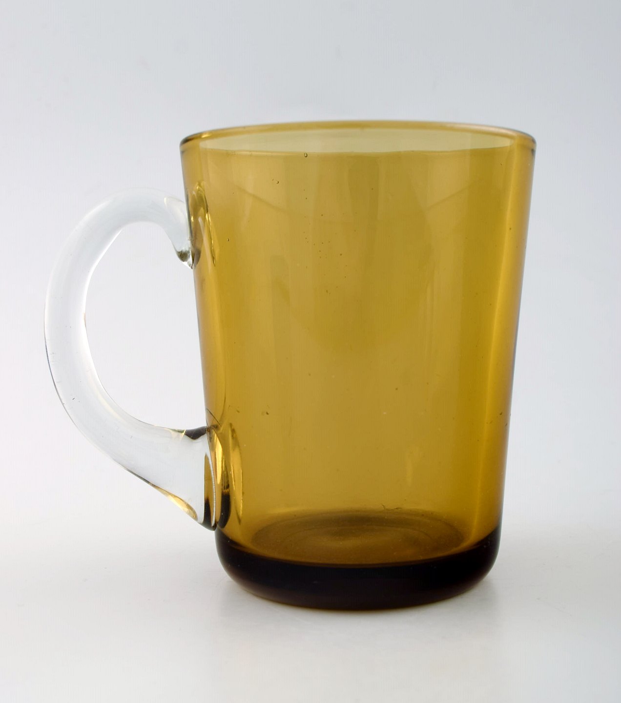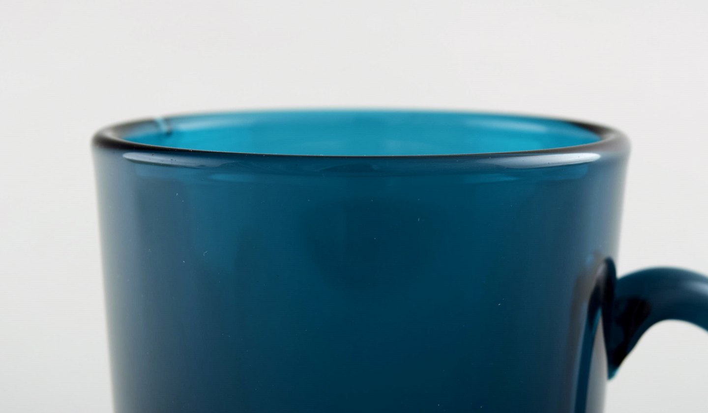 Kaj Franck (Finsk, 1911–1989) Nuutajärvi Glass Works, Finland, kunstglas. 2 krus med hank i forskellige farver. Finland 1960/70´erne. I perfekt stand. Måler : 10 cm. x 8 cm. Ustemplet.
